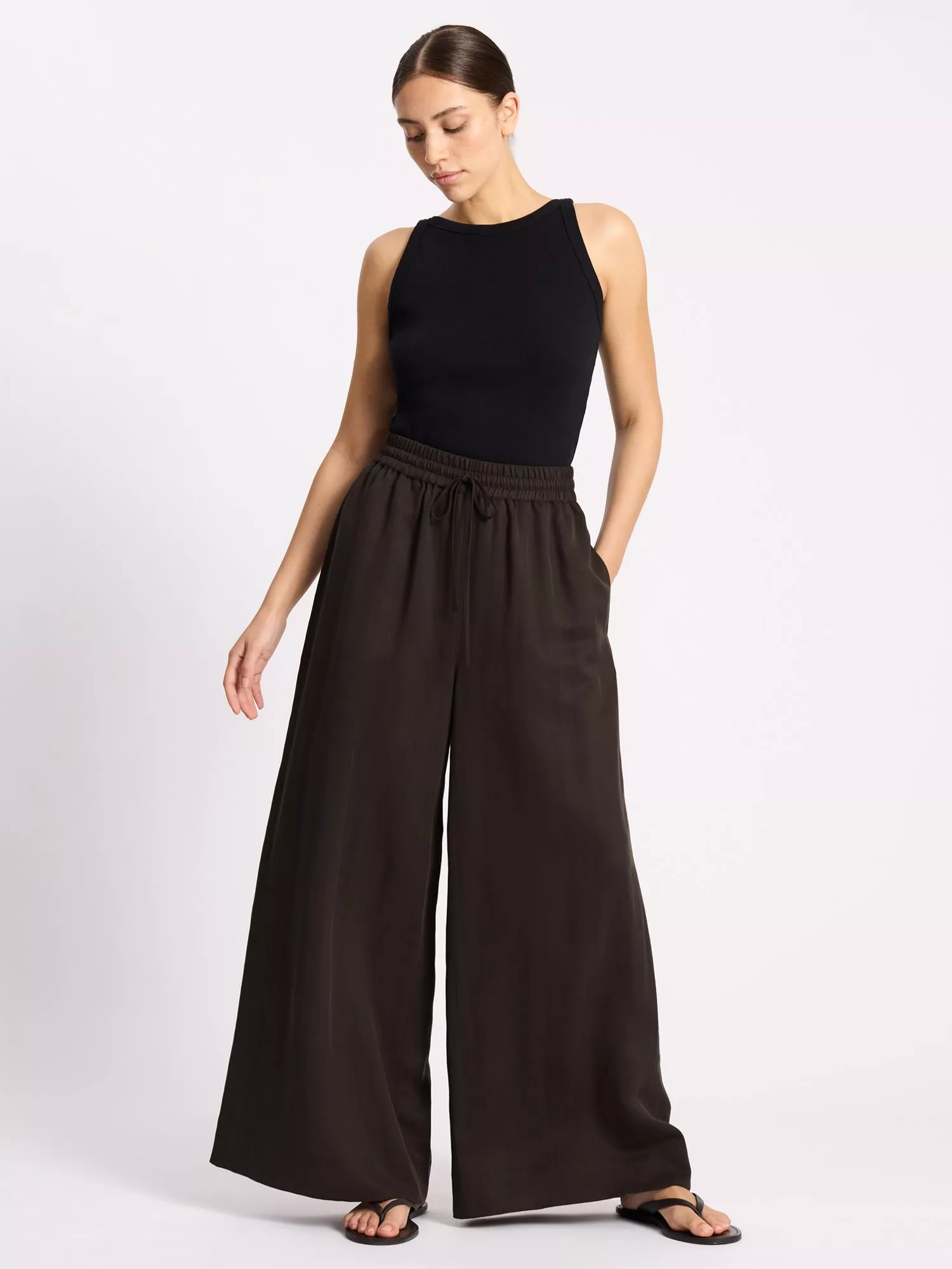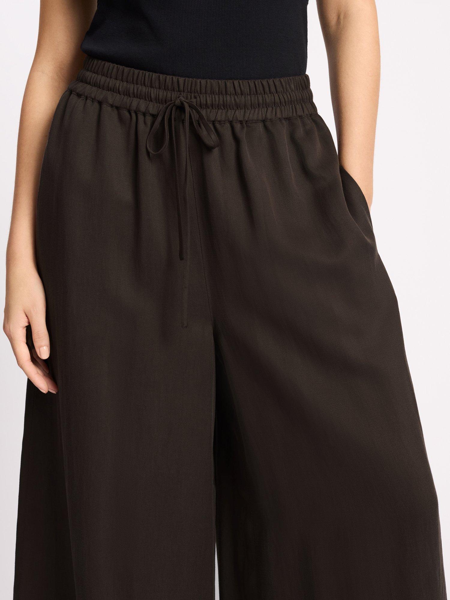 Pull-on, wide leg trousers featuring side pockets with an elasticated waist for maximum comfort.