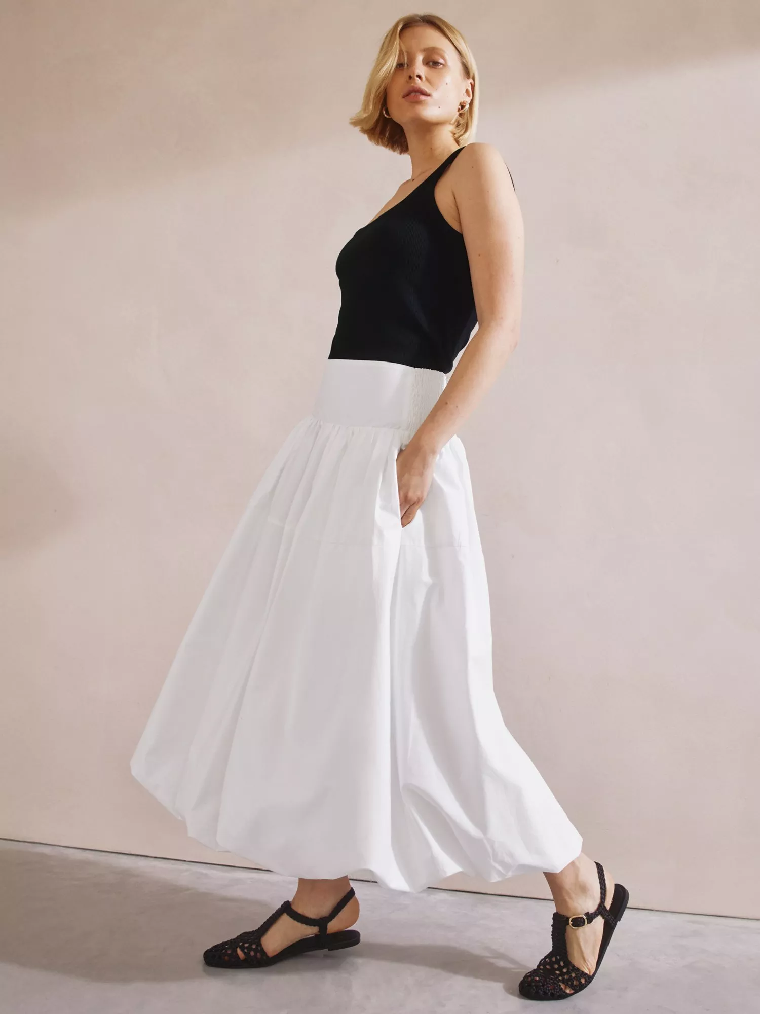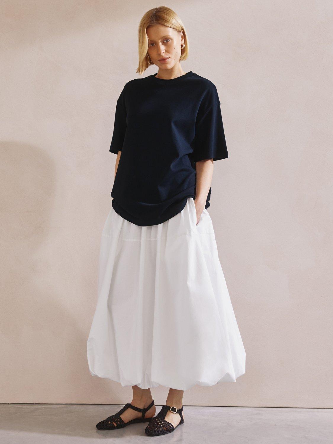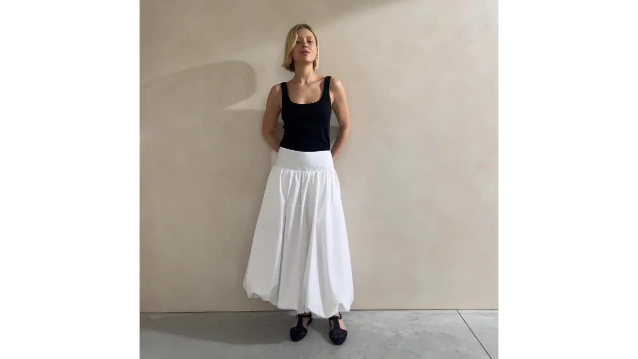 A full cotton midi skirt with a wide waistband and puffball hem detail. This skirt has must-have pockets crafted in 100% organic cotton. Crafted with attention-to-detail, this long-lasting and versatile piece is sure to be an everyday favourite.