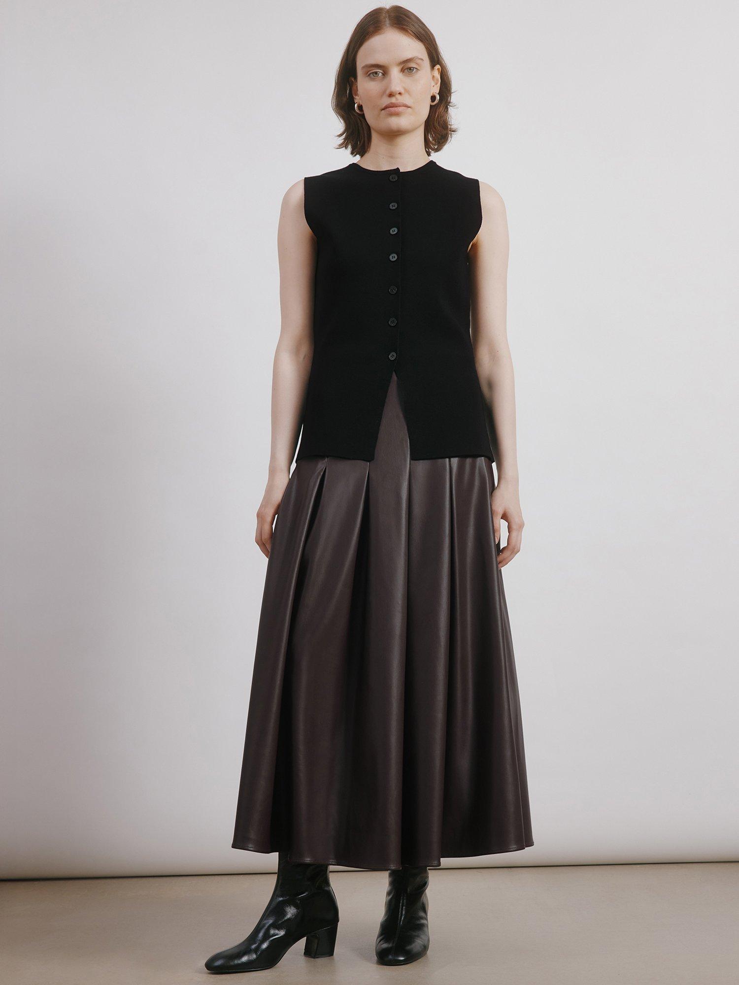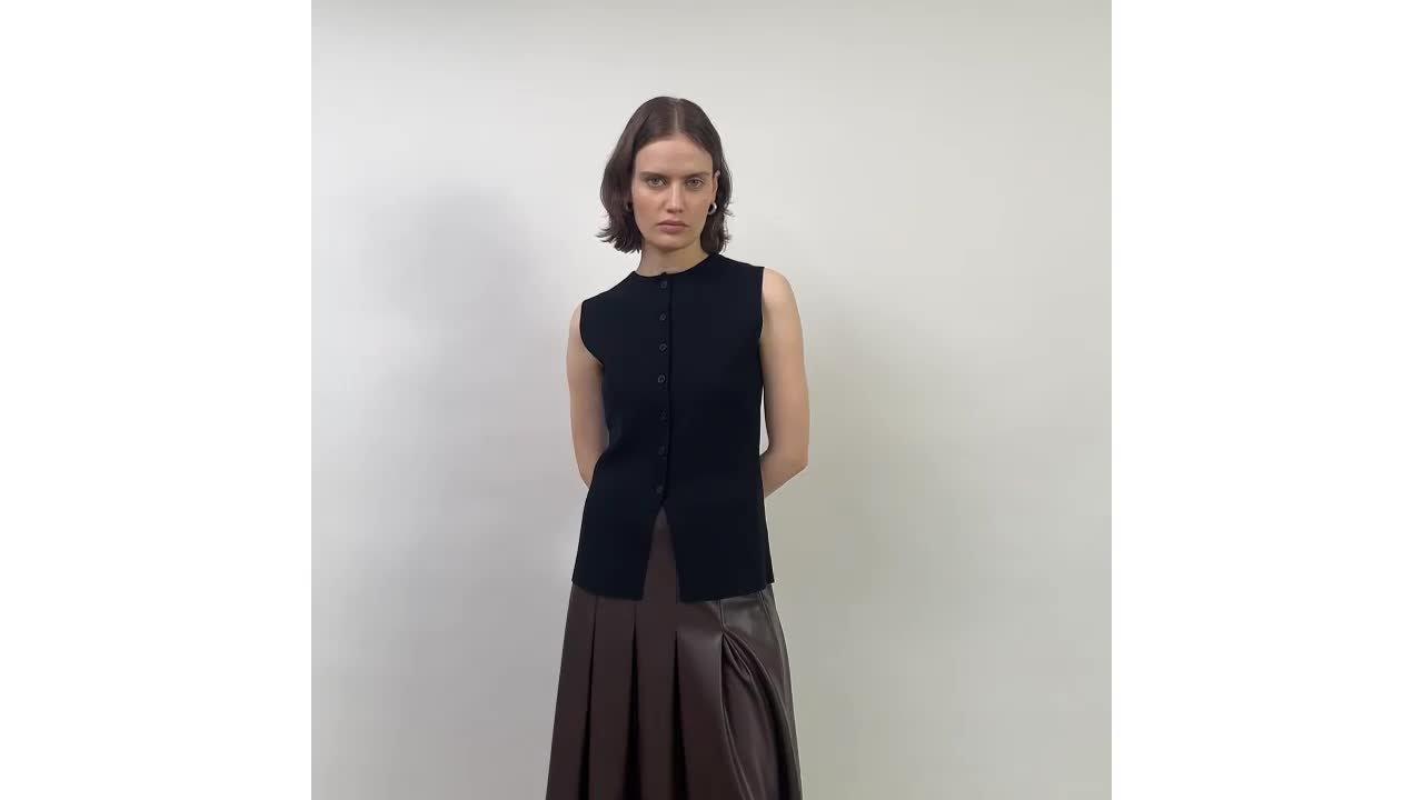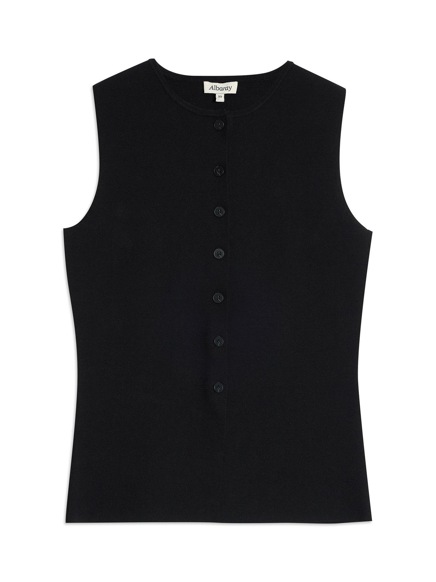 A ribbed waistcoat featuring a flattering crew neckline and button front. Perfect for wearing on its own or layered on colder days.