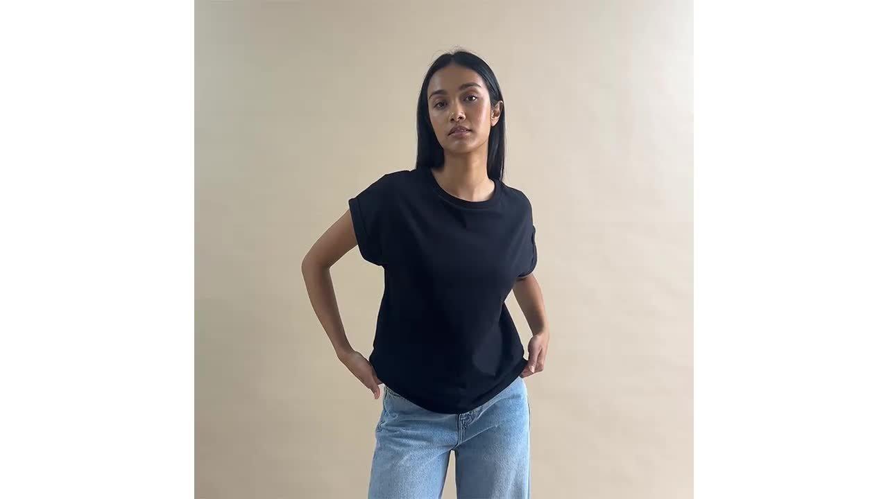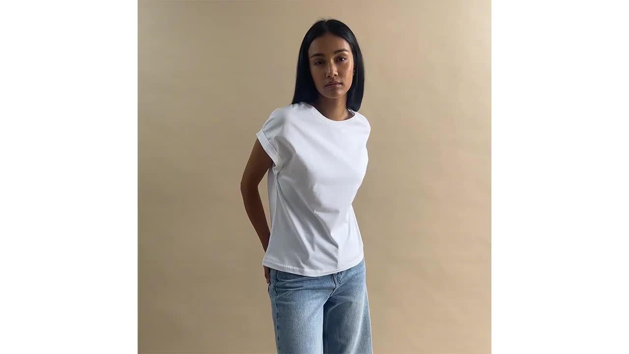Designed with a classic crew neckline and short sleeves, it is light and breathable in cotton and is an easy daytime option.