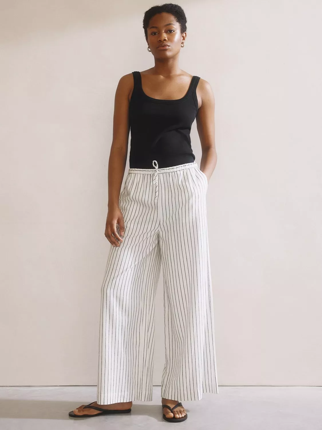 Relaxed linen-blend trousers with a soft elastic waistband and tie detail and featuring side pockets. Crafted in a soft linen mix, these trousers are super comfortable on a warm summer day.