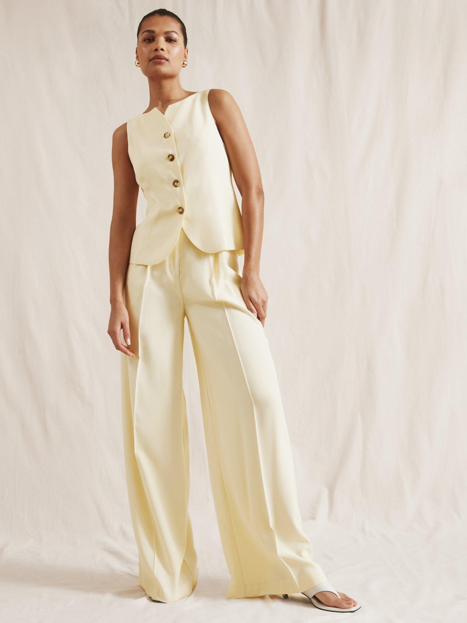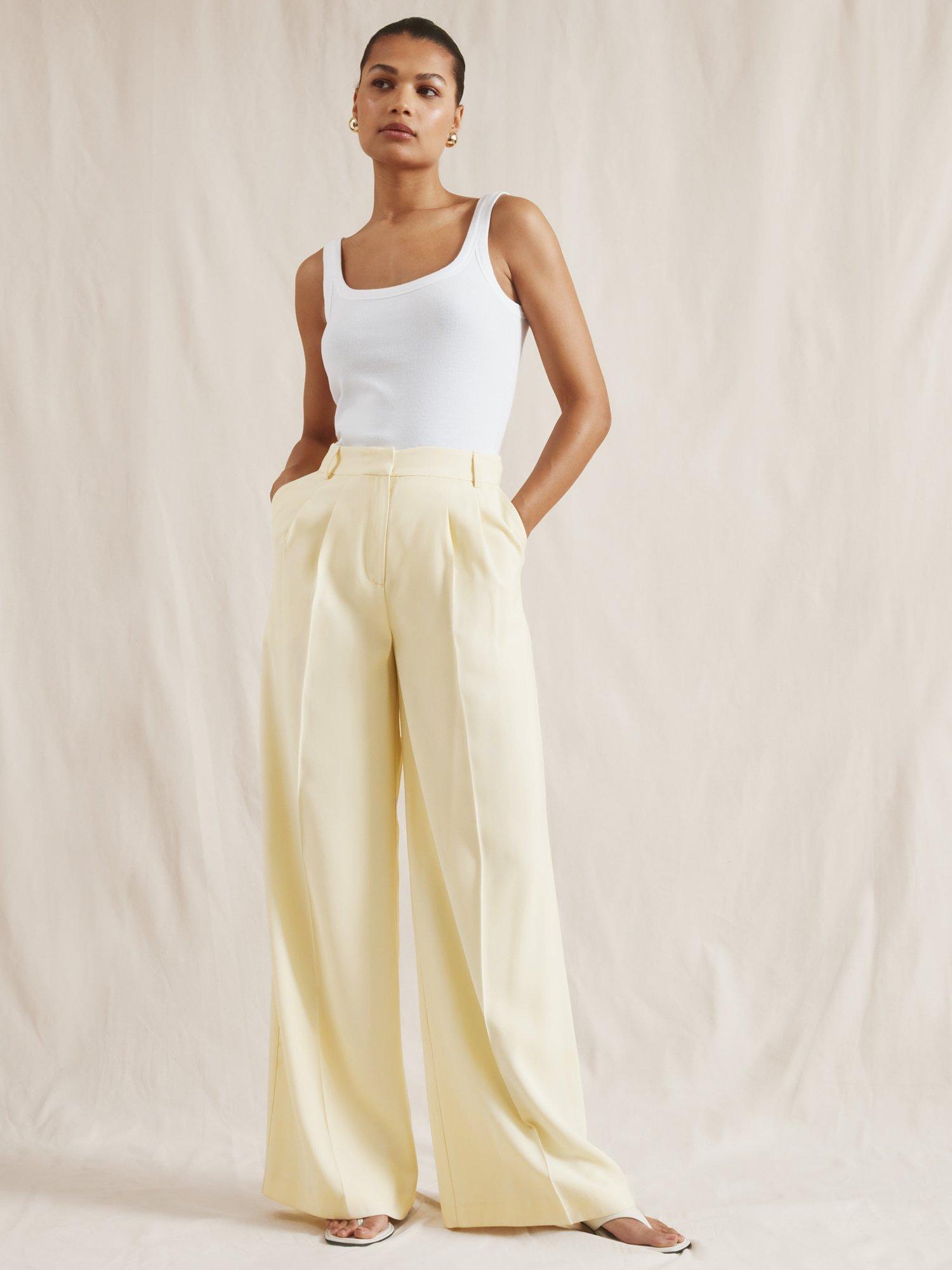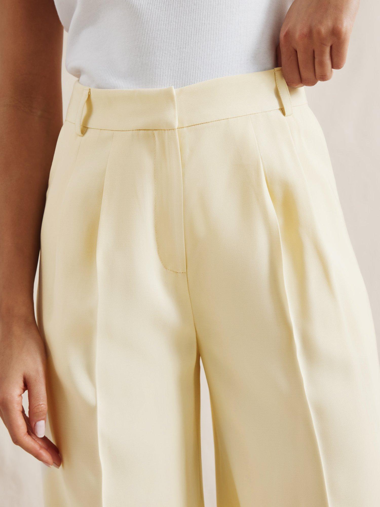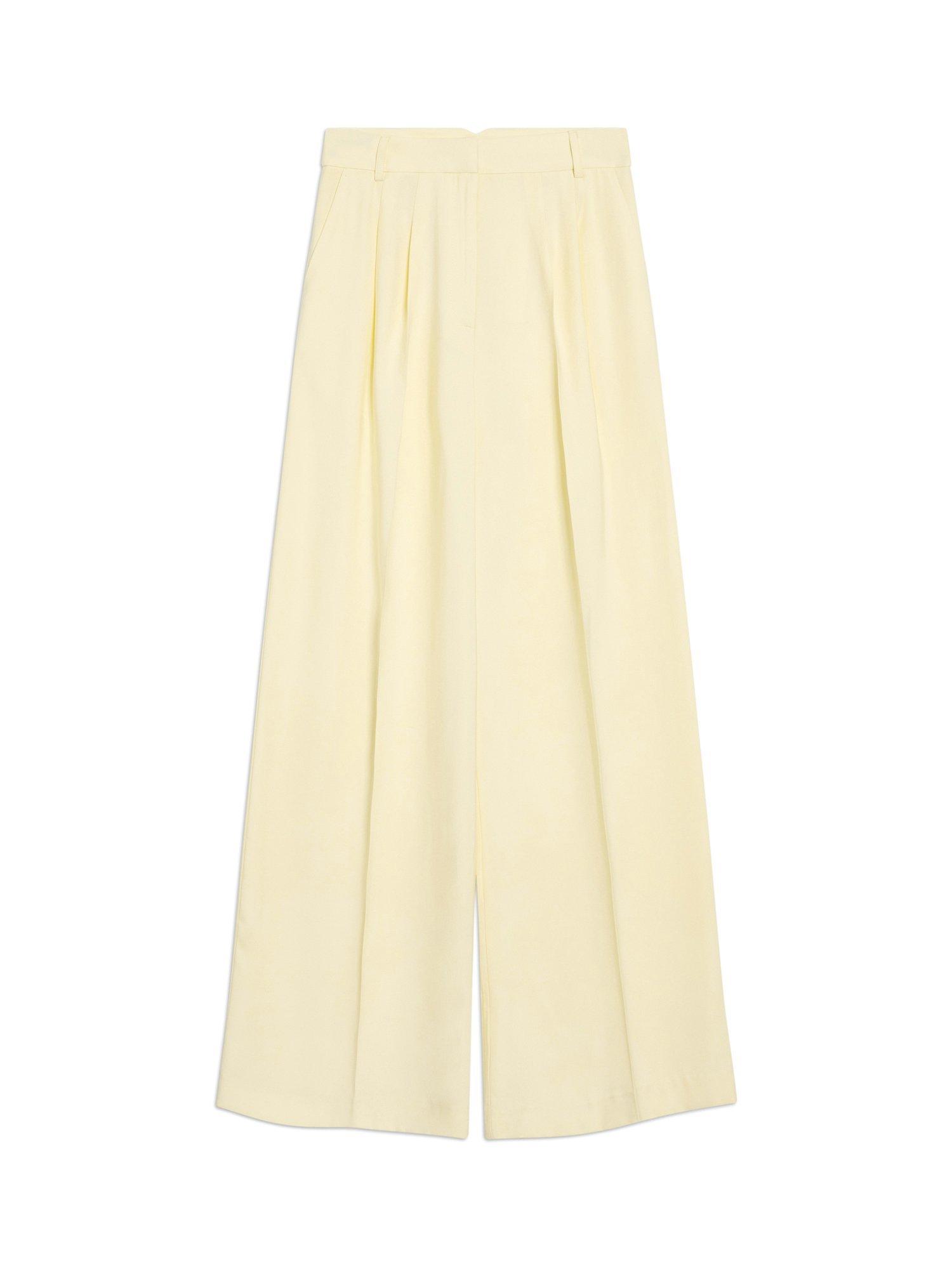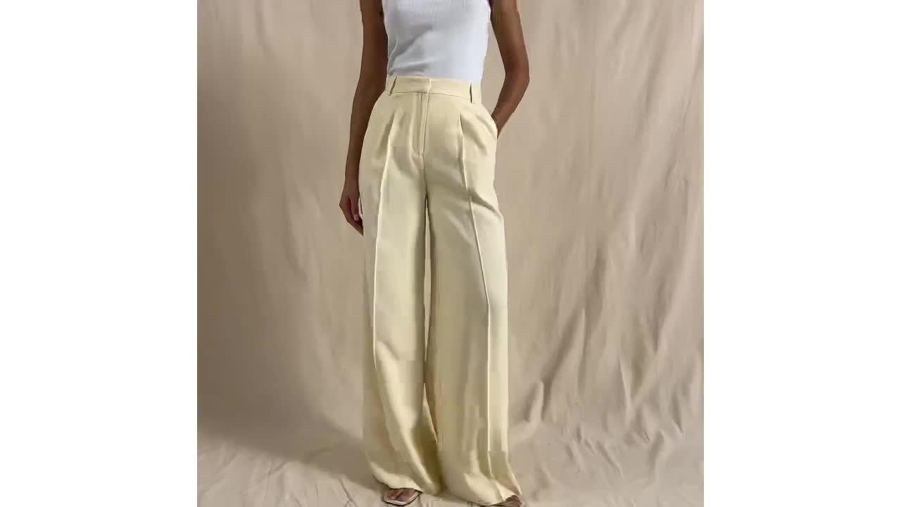 These soft trousers have pleats through the front to elongate the wide legs. The full-length hems pool elegantly at the floor. This trouser has a zip fly with hook and bar fastening and front side pockets.