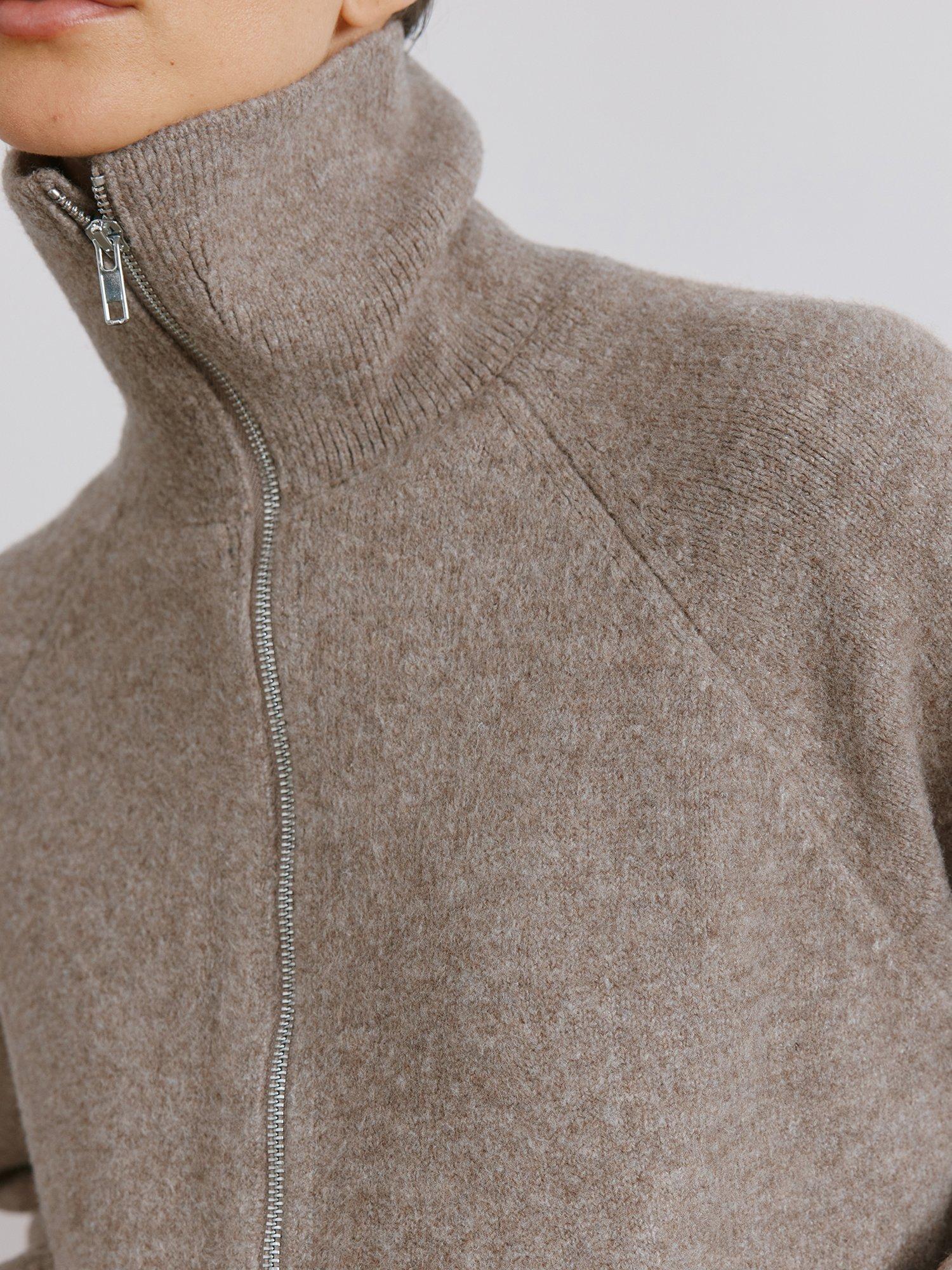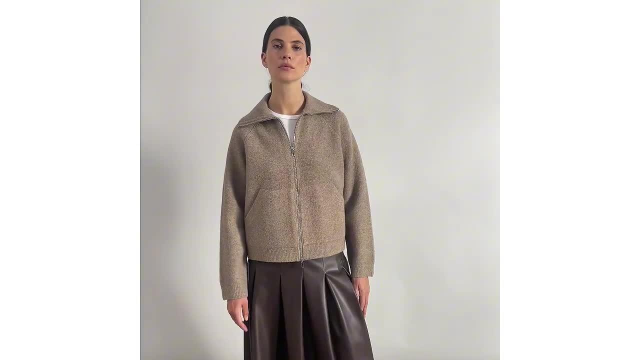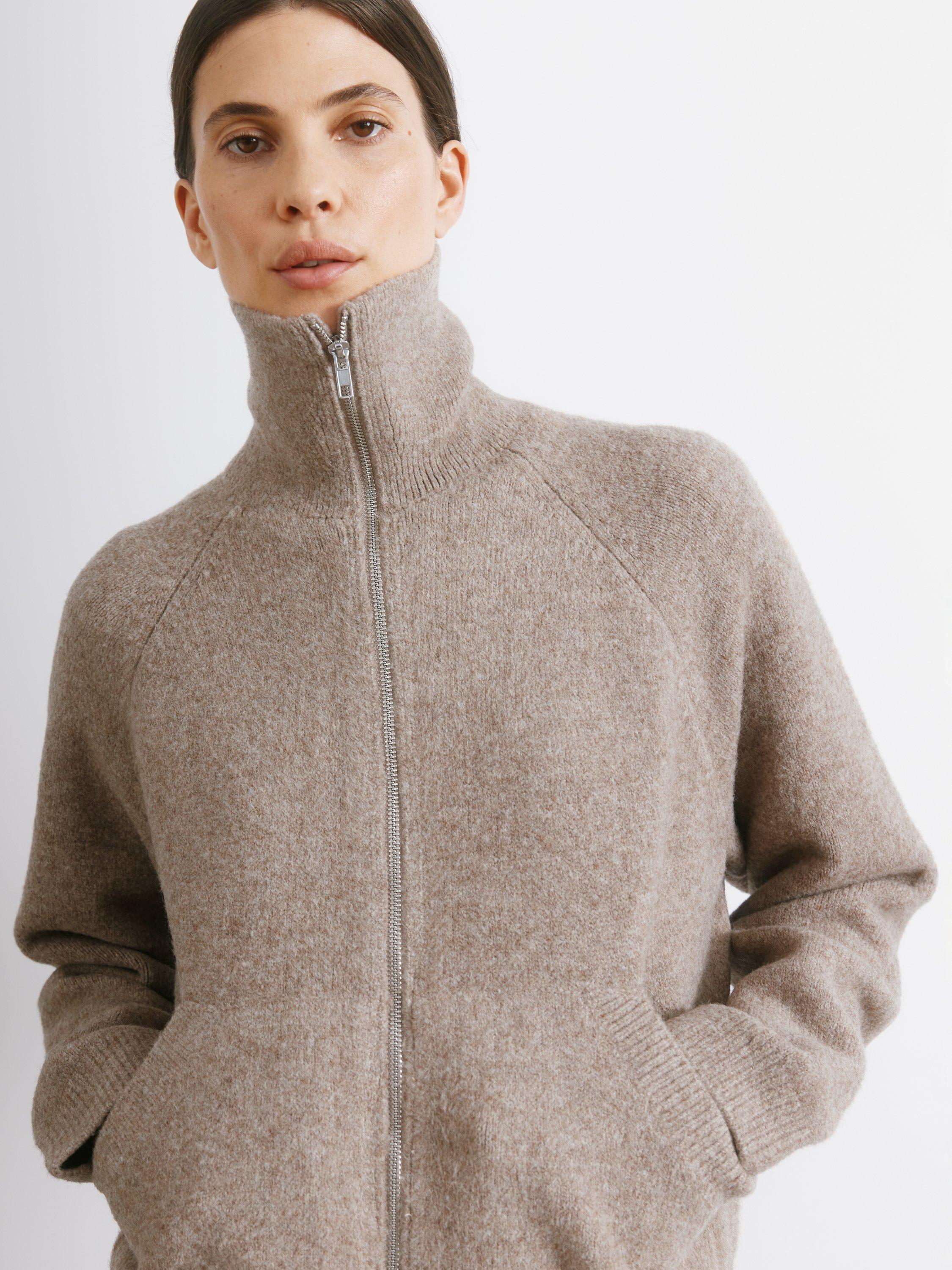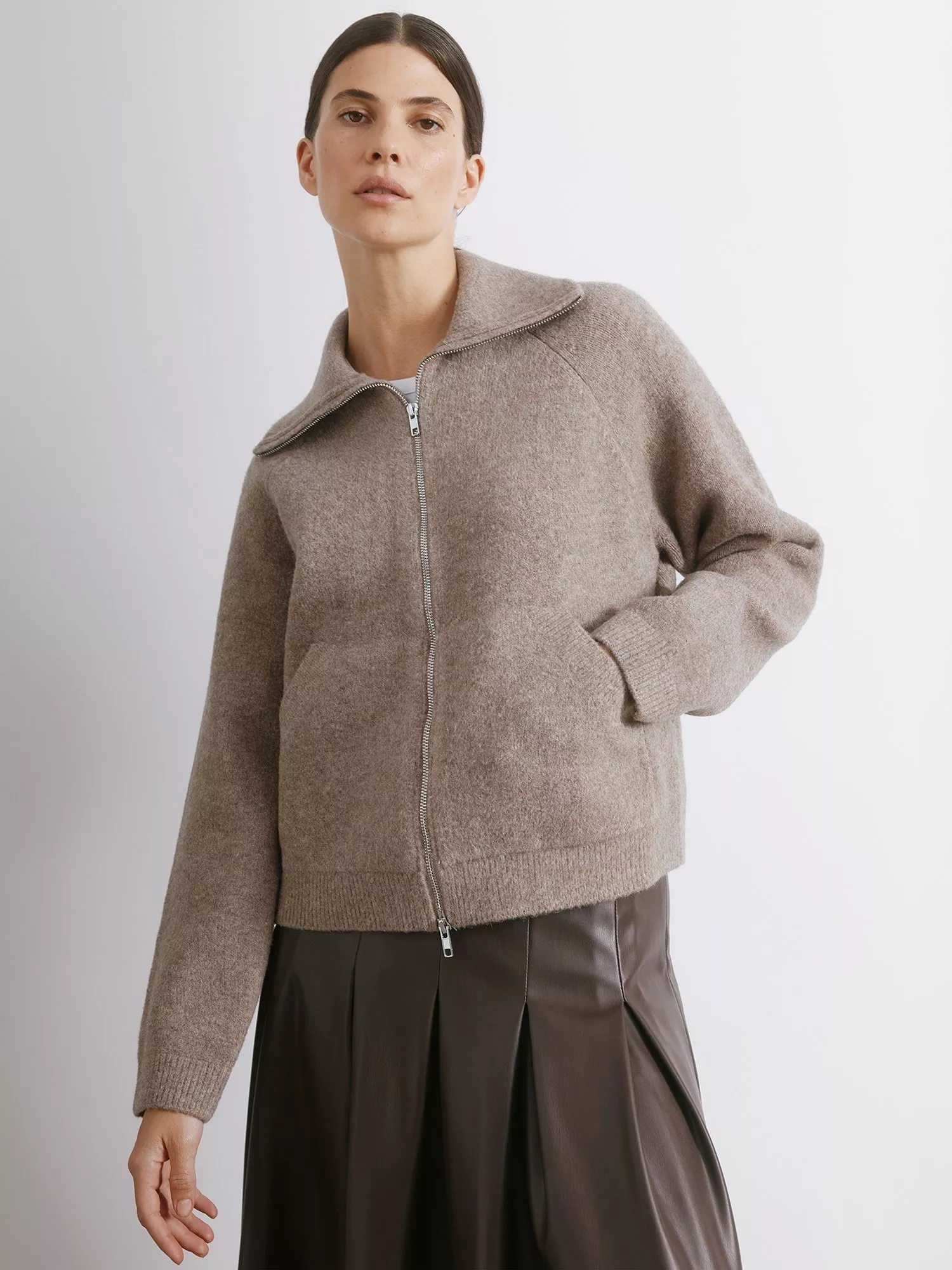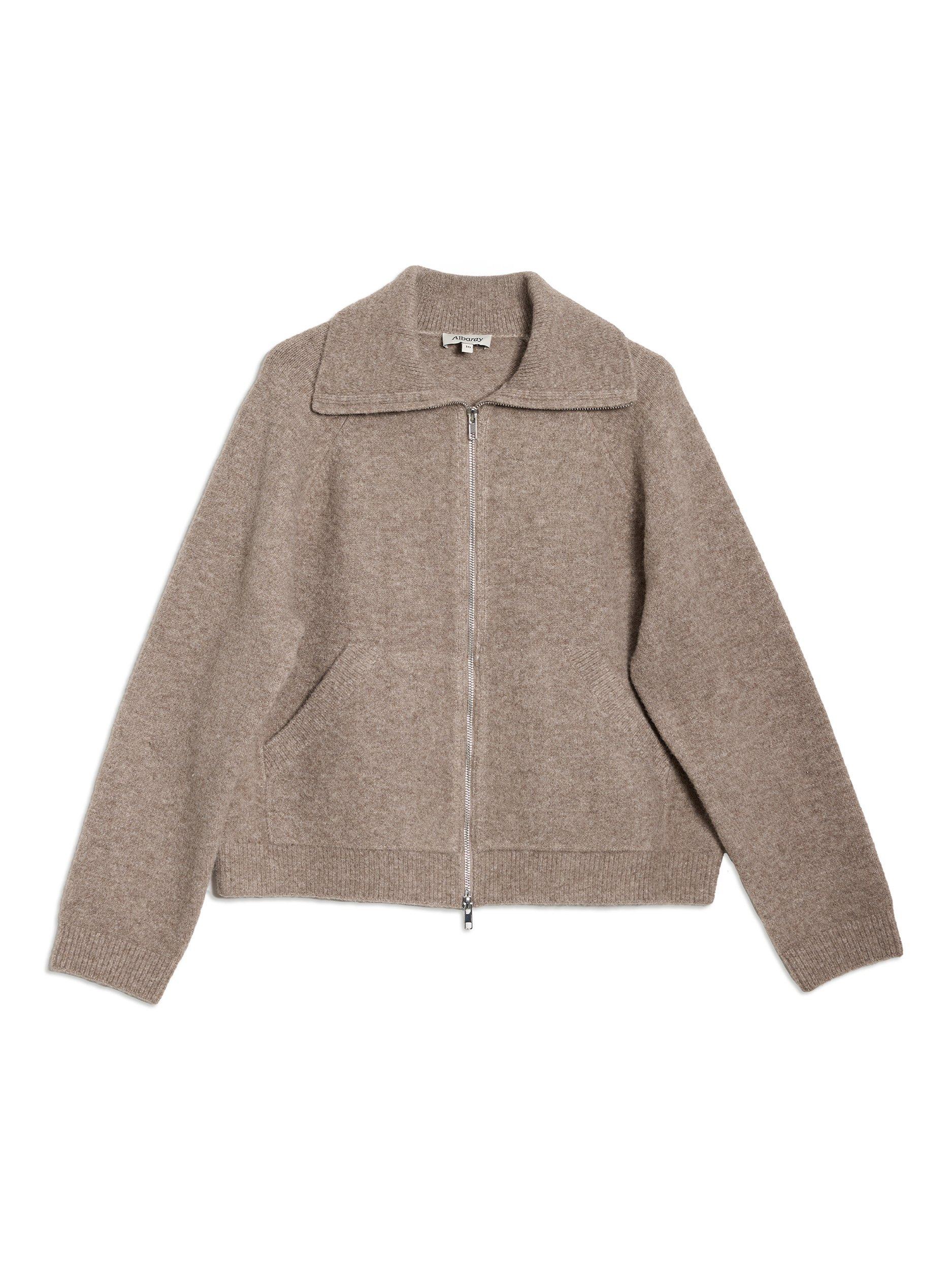 Introducing the Wing Collar Knit Bomber, a luxurious and modern update on a classic style. Crafted from soft neutral yarn and featuring pockets and a two-way zip fastening, this jacket is versatile and great for layering.