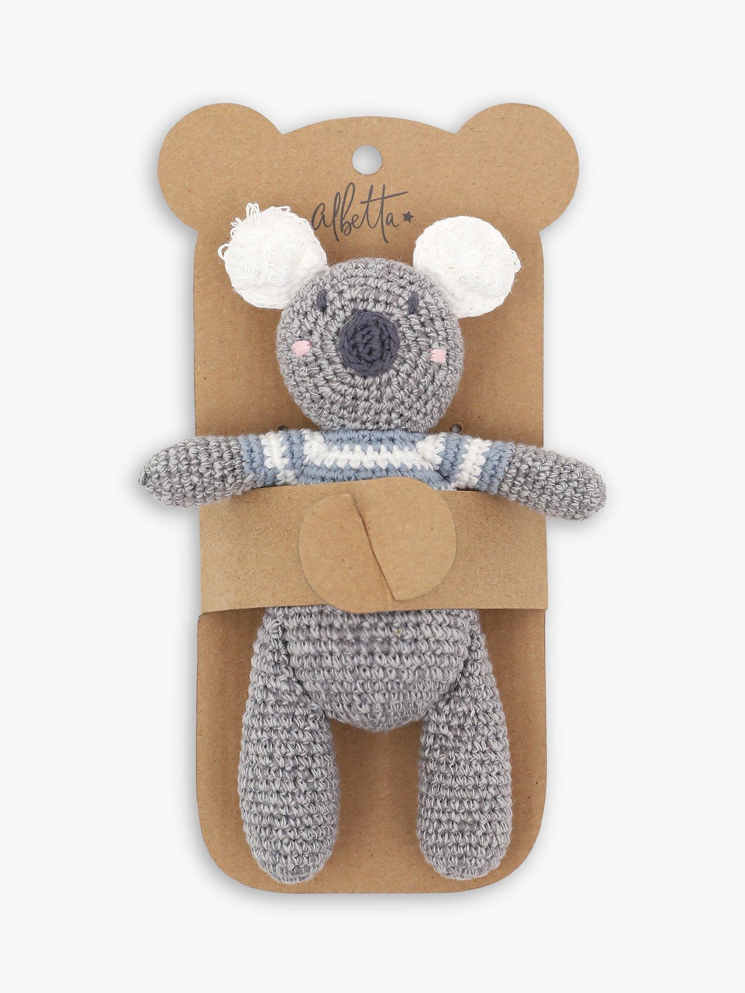 Crafted from pure cotton, this hand-crochet koala rattle from Albetta makes for a sweet gift for a new arrival.