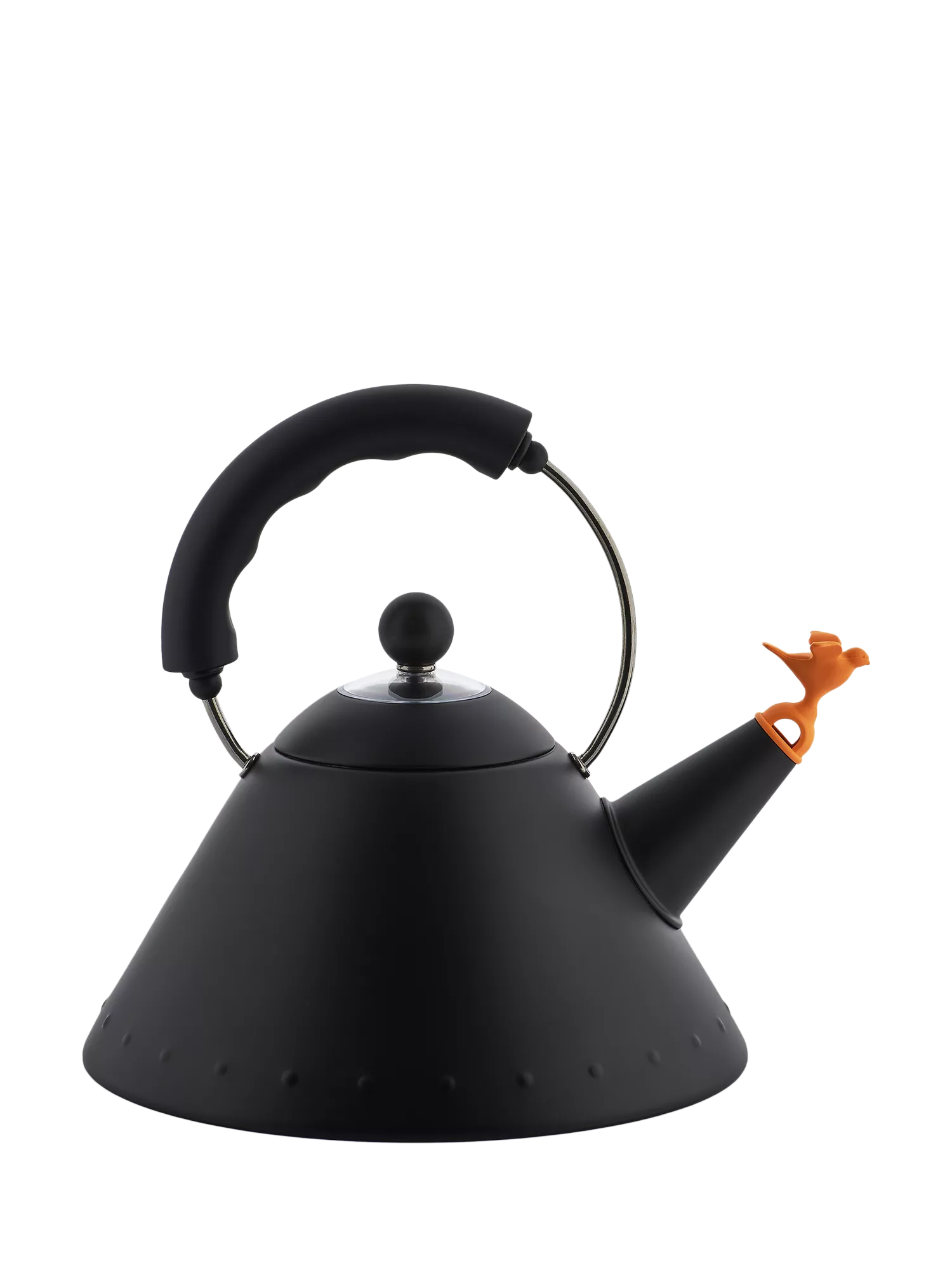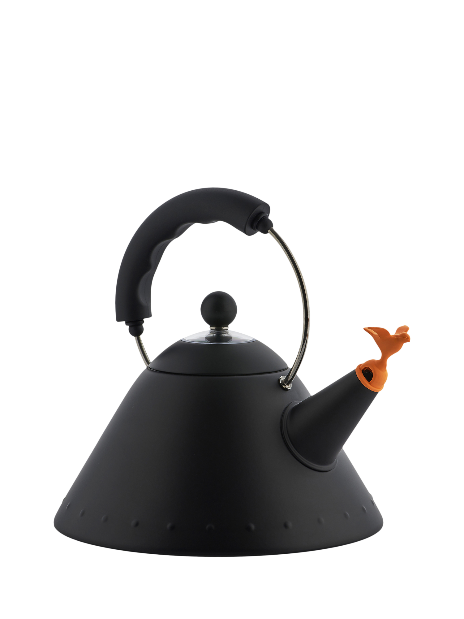 The 9093 kettle is one of the best-selling Alessi objects in the world. The design of this kettle, created by Michael Graves in 1985, combines influences from European Art, American Pop, and quotes from pre-Columbian cultures. It's a smart object, elegant, yet playful and fun: when the water starts boiling, the bird sings, evoking an inevitable smile.