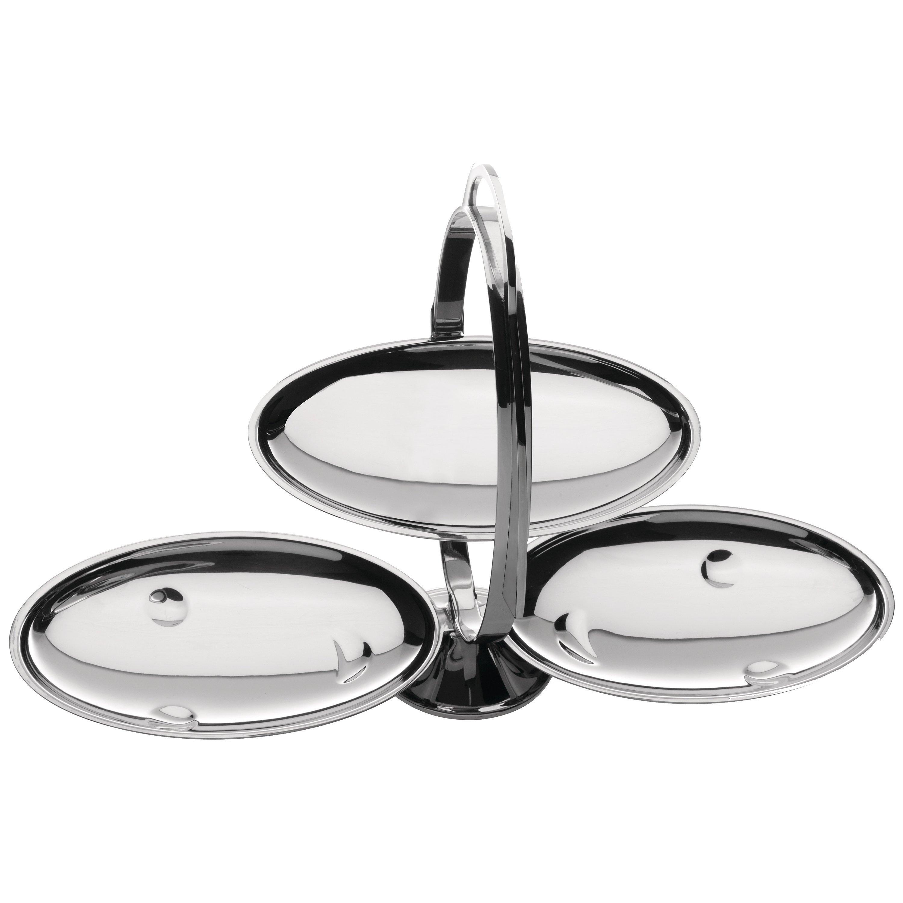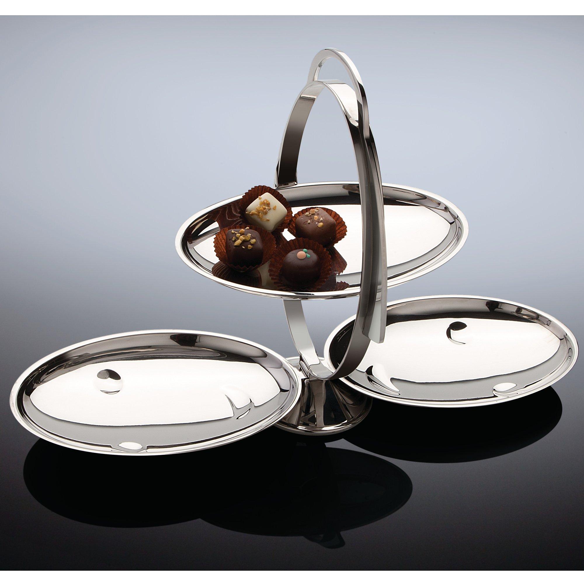 Produced from durable stainless steel and highly polished for a mirror finish the Anna Gong becomes a three-tier cake stand when opened, giving you plenty of space to present your cakes or afternoon tea bites. When folded the stand is small enough to be tucked away, or alternatively keep out and display as a tabletop sculpture.