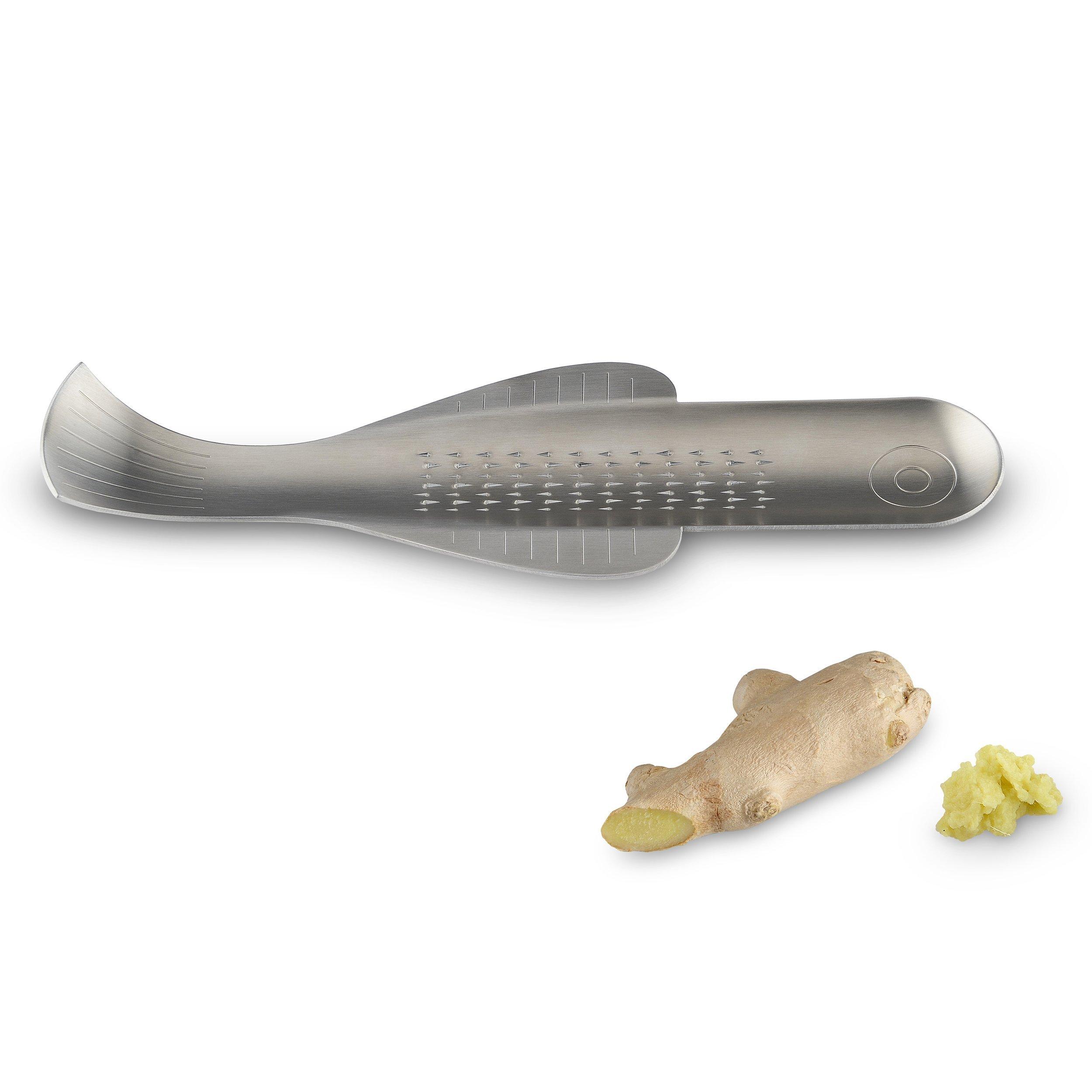 Fitted with hard-wearing, sharp stainless steel grater teeth, ideal for grating ginger roots, even the stringy kind, it is practical and simple to use, thanks to its evocative shape.