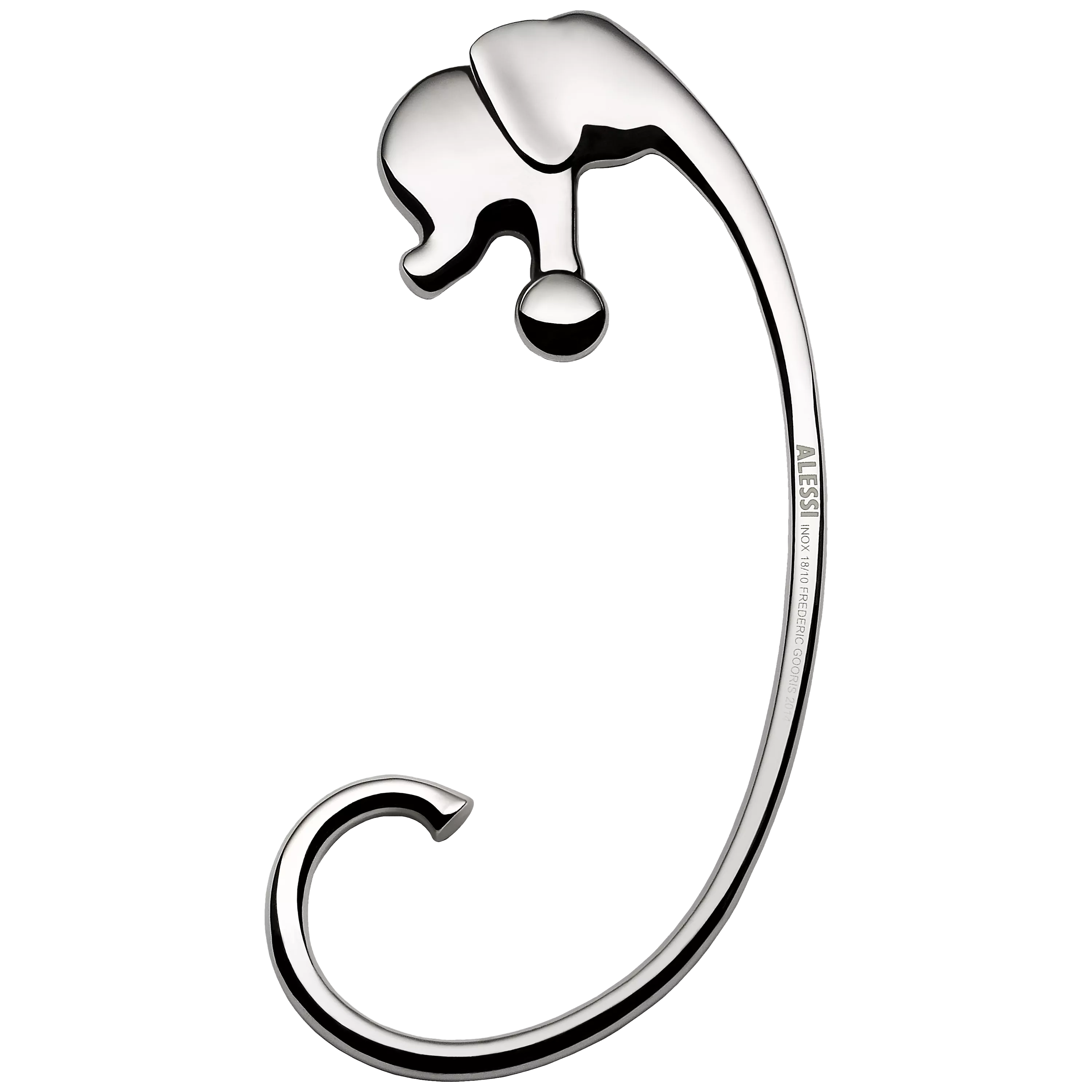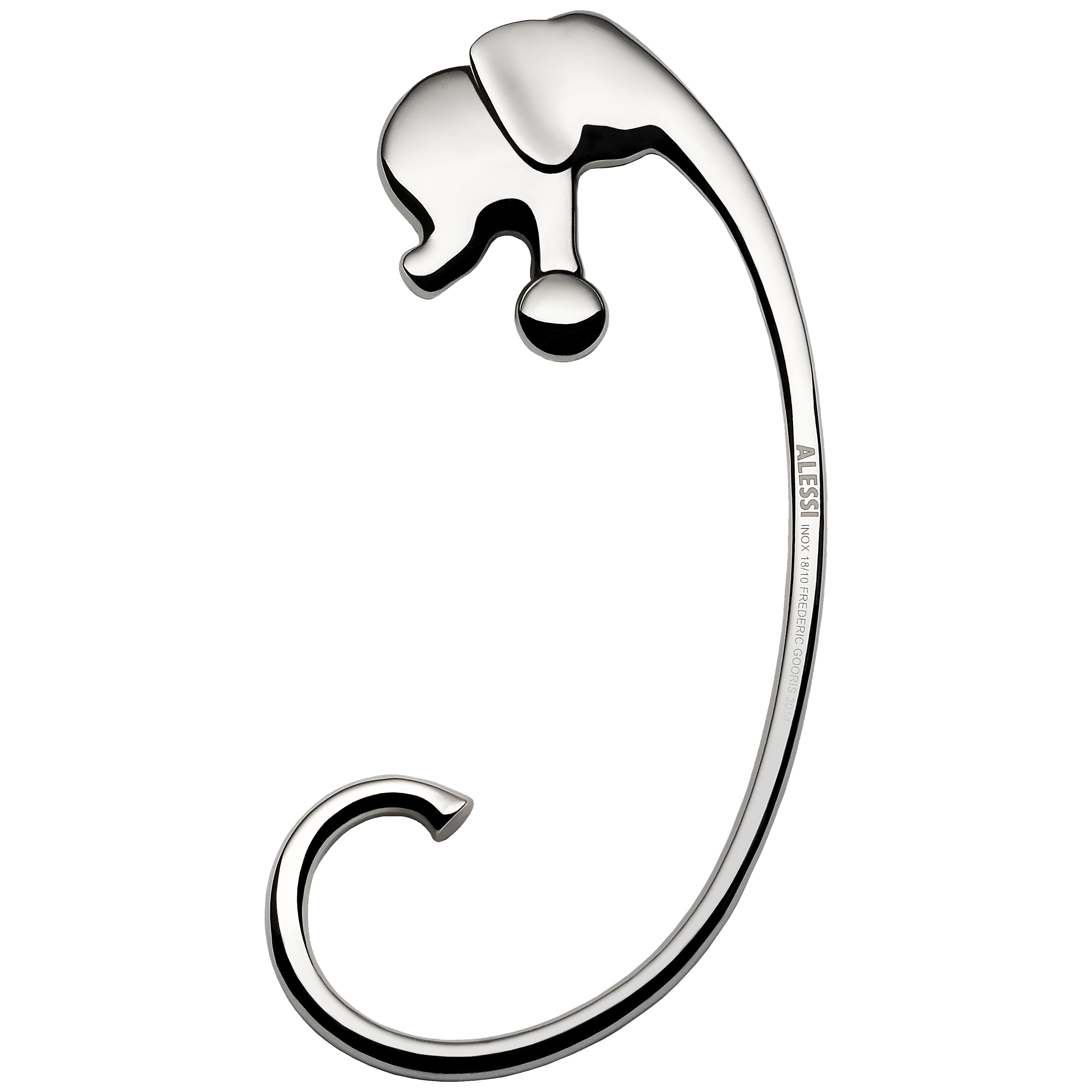 This quirky and original table hook was designed by Frederic Gooris to sit on top of your dining table and features a performing elephant balancing on a ball, . Meanwhile his trunk lengthens & curls to form a hook underneath, ready to hold bags of all shapes & sizes. The silhouette of the elephant stays on the top of the table, perfectly balanced whilst in use.