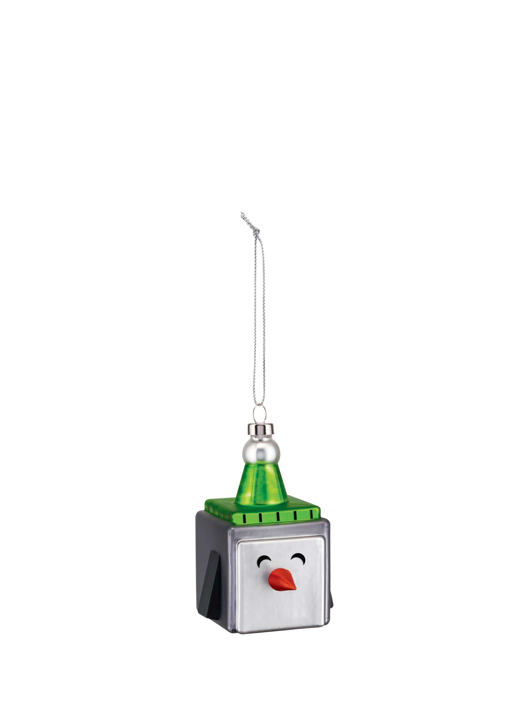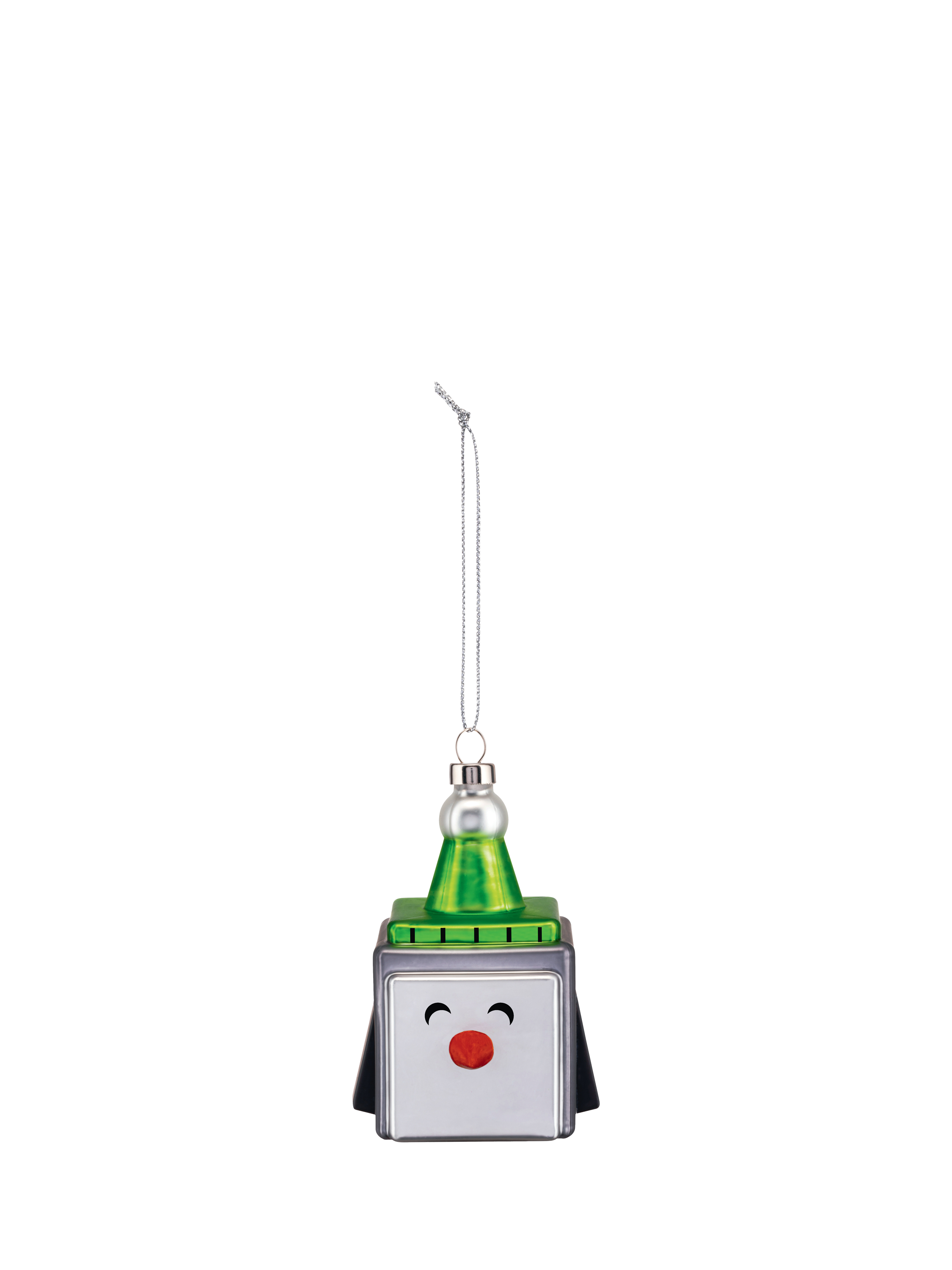 Penguin-inspired Christmas ornament from Alessi. Made in blown glass with hand-decorated details.