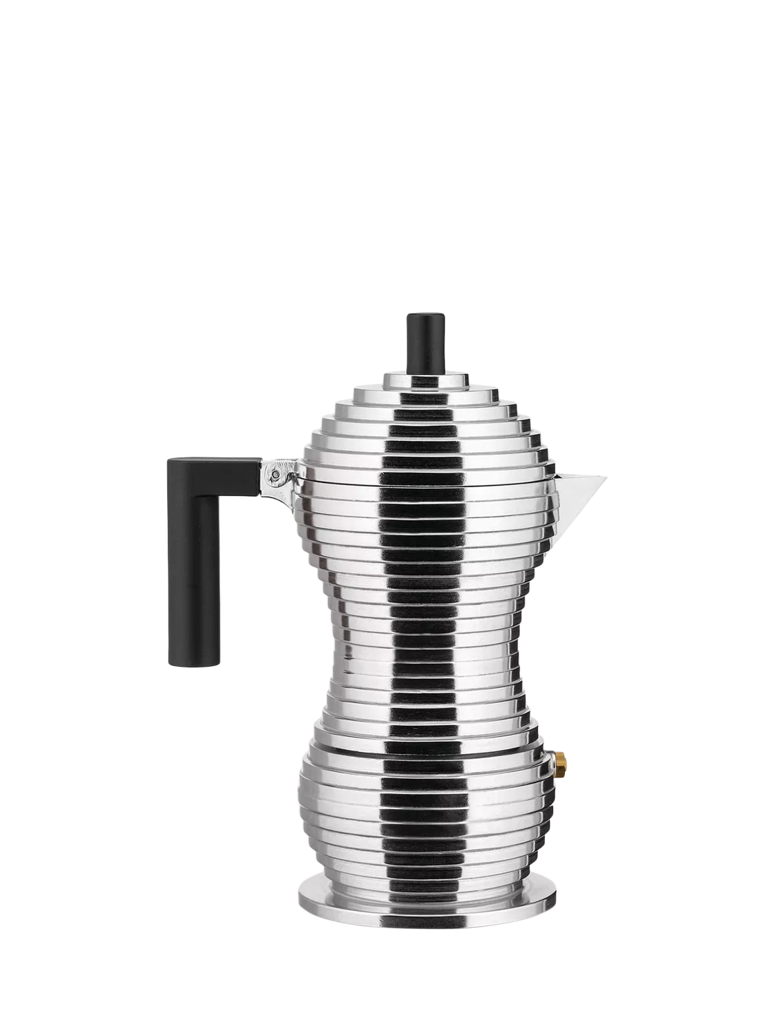 Alessi's Pulcina espresso maker is the result of a collaboration between designer Michele De Lucchi and Illycaffè. The goal was to optimise the coffee maker's shape to improve the properties of the coffee it produces and the experts at Illy's R&D Laboratory managed to identify some important areas for improvement. The changes they made have reduced and nearly eliminated the so-called 'Stromboli-volcano effect' that's common to many espresso makers and causes the burnt or bitter aftertaste. With Pulcina, only the finest qualities of the coffee are maintained through the brewing process.