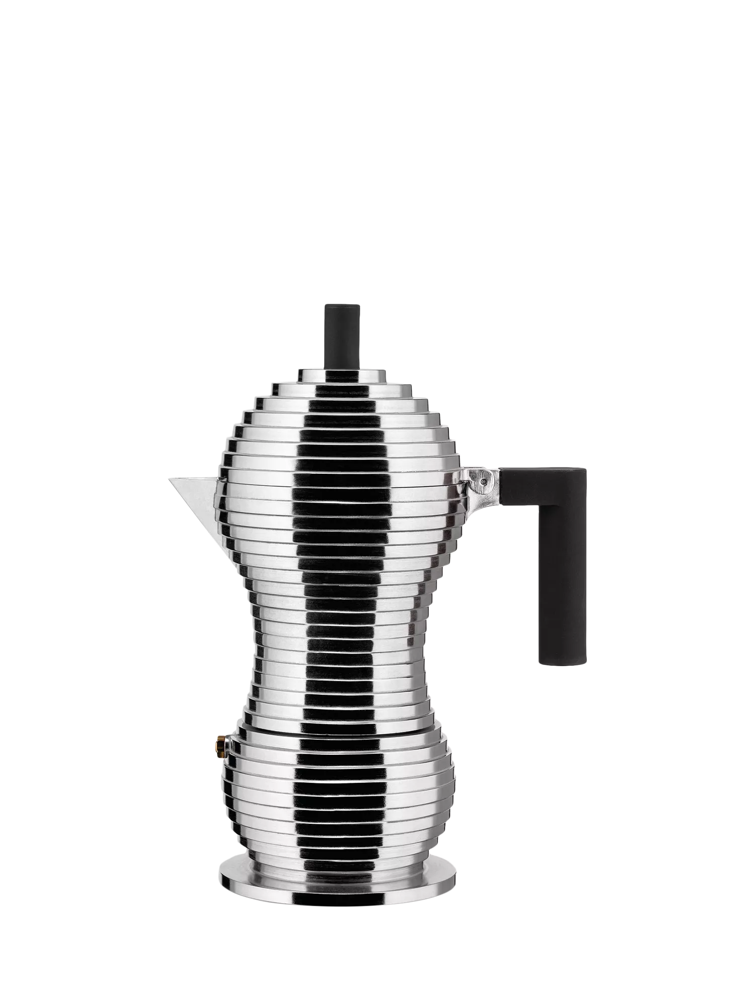 Alessi's Pulcina espresso maker is the result of a collaboration between designer Michele De Lucchi and Illycaffè. The goal was to optimise the coffee maker's shape to improve the properties of the coffee it produces and the experts at Illy's R&D Laboratory managed to identify some important areas for improvement. The changes they made have reduced and nearly eliminated the so-called 'Stromboli-volcano effect' that's common to many espresso makers and causes the burnt or bitter aftertaste. With Pulcina, only the finest qualities of the coffee are maintained through the brewing process.