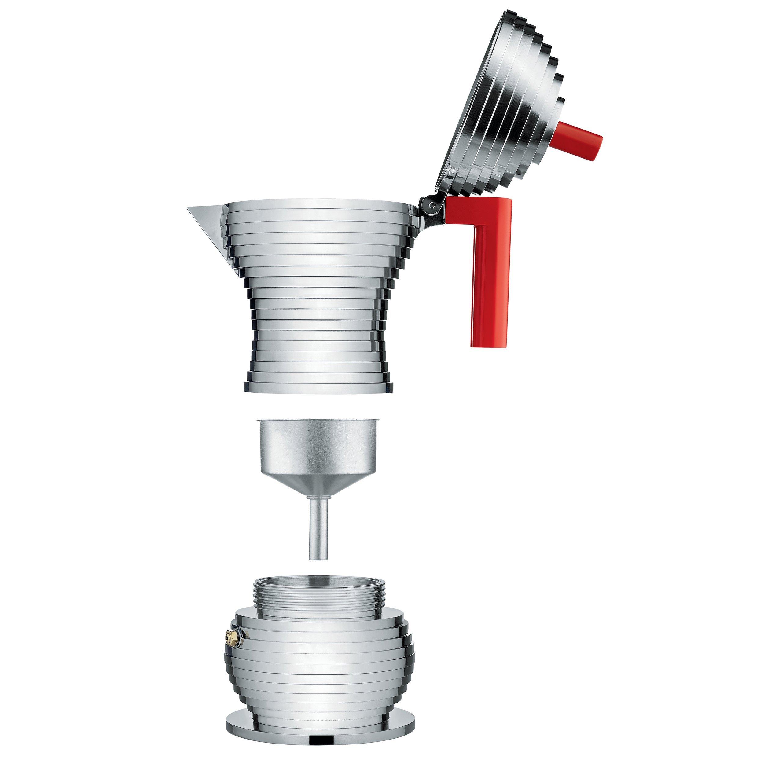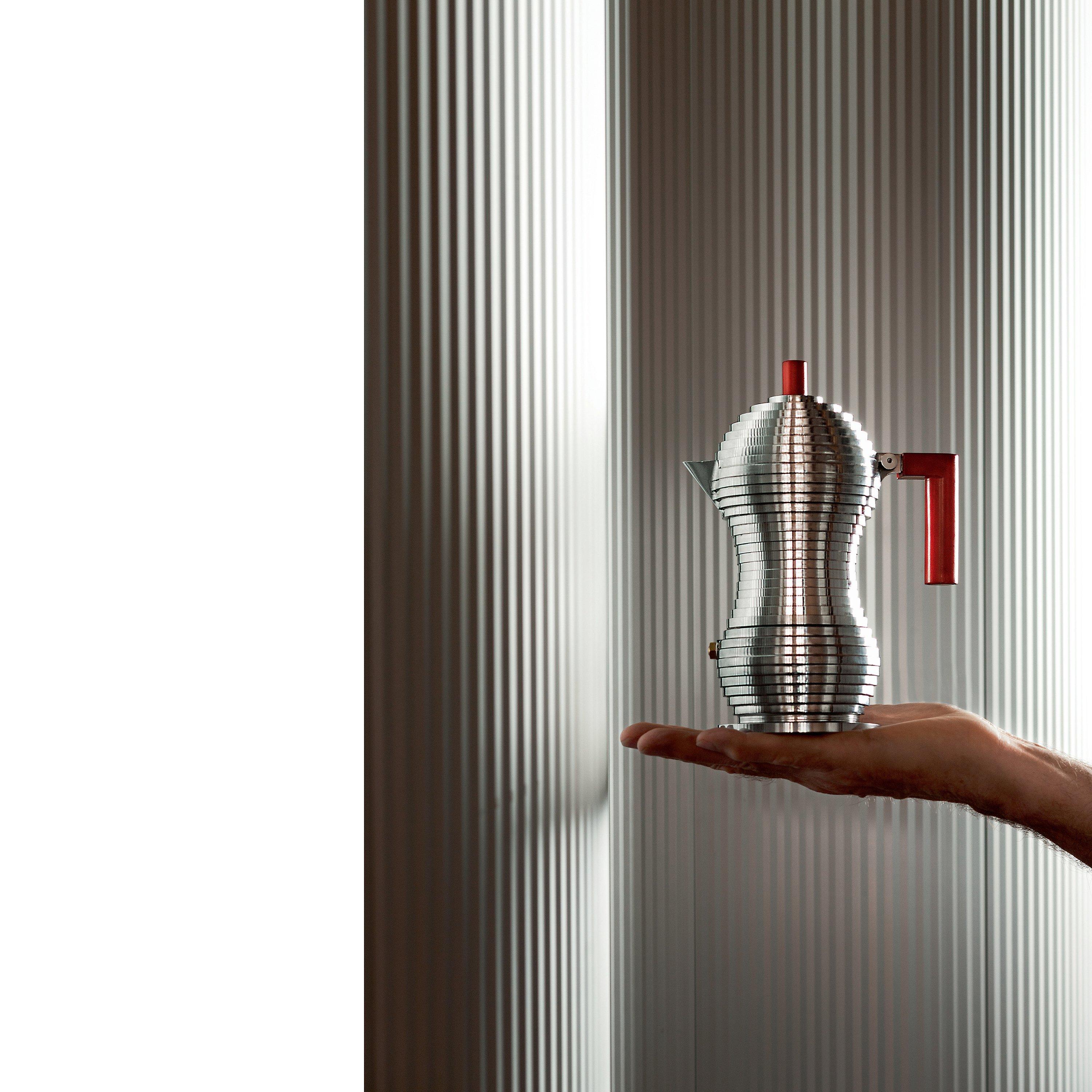 Alessi's Pulcina espresso maker is the result of a collaboration between designer Michele De Lucchi and Illycaffè. The goal was to optimise the coffee maker's shape to improve the properties of the coffee it produces and the experts at Illy's R&D Laboratory managed to identify some important areas for improvement. The changes they made have reduced and nearly eliminated the so-called 'Stromboli-volcano effect' that's common to many espresso makers and causes the burnt or bitter aftertaste. With Pulcina, only the finest qualities of the coffee are maintained through the brewing process.