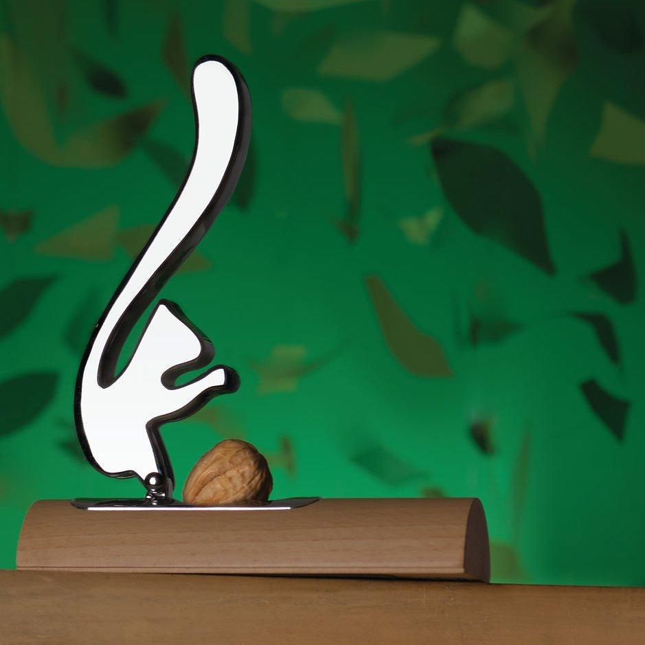 A squirrel bending over to crack open a nut is an image that can be seen frequently throughout the historical production of nutcrackers; lending inspiration to this piece by Andrea Branzi.