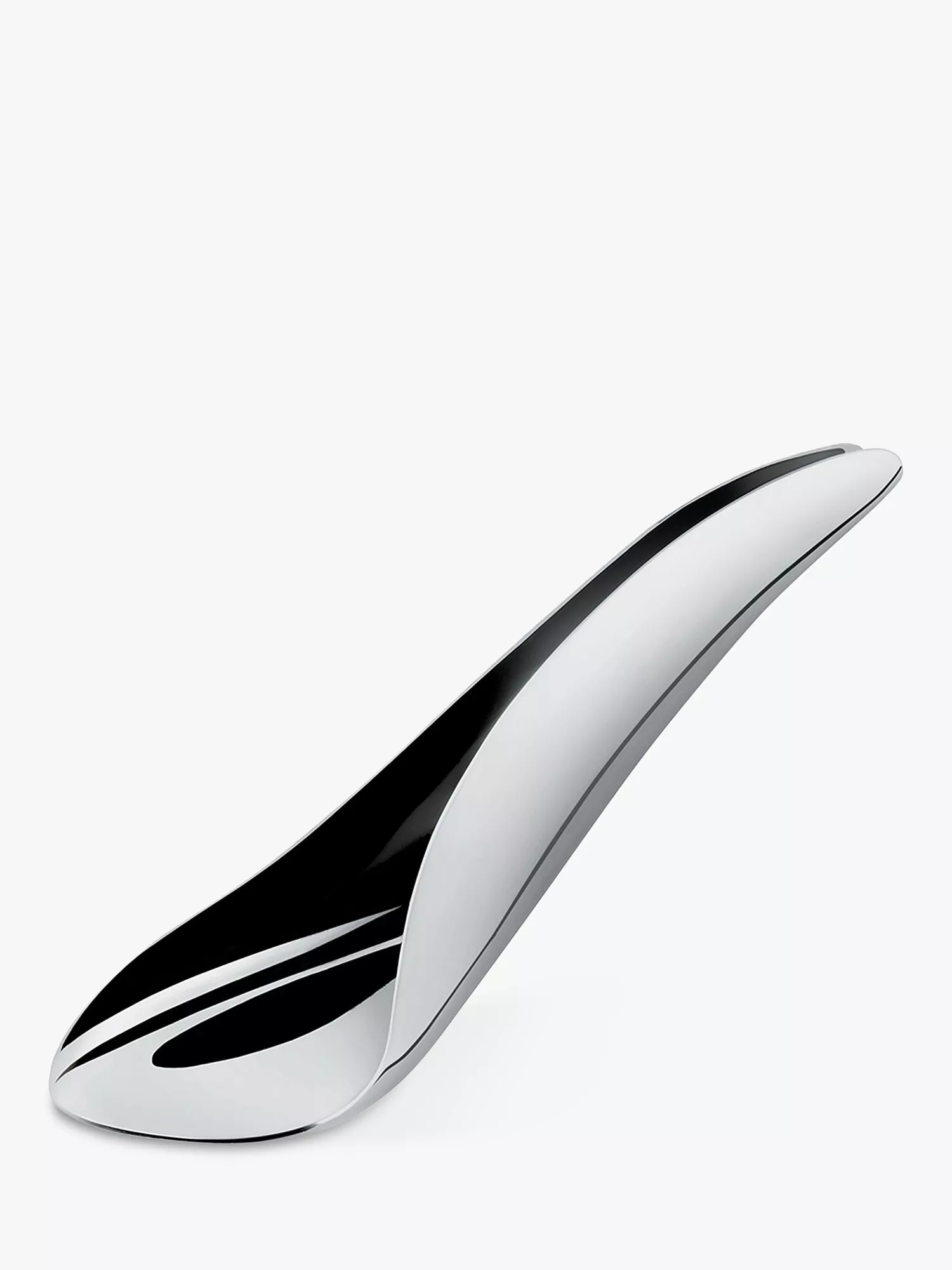 The Teo spoon from Alessi is designed specifically for removing tea bags from mugs, cups and teapots. The hollow handle tapers to its edge; by pulling the teabag through the handle it squeezes the bag releasing excess water and preventing it from dripping everywhere when you throw it away.