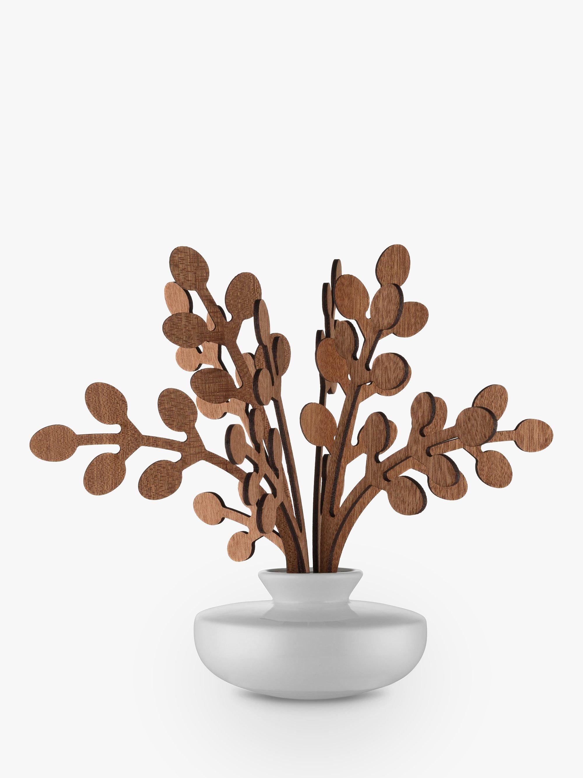 A room diffuser doesn't have to just be a bottle with sticks. Alessi brings something more decorative with the Brrr diffuser, replacing traditional reeds with stylised leaves made from mahogany wood which sit in a ceramic pot.