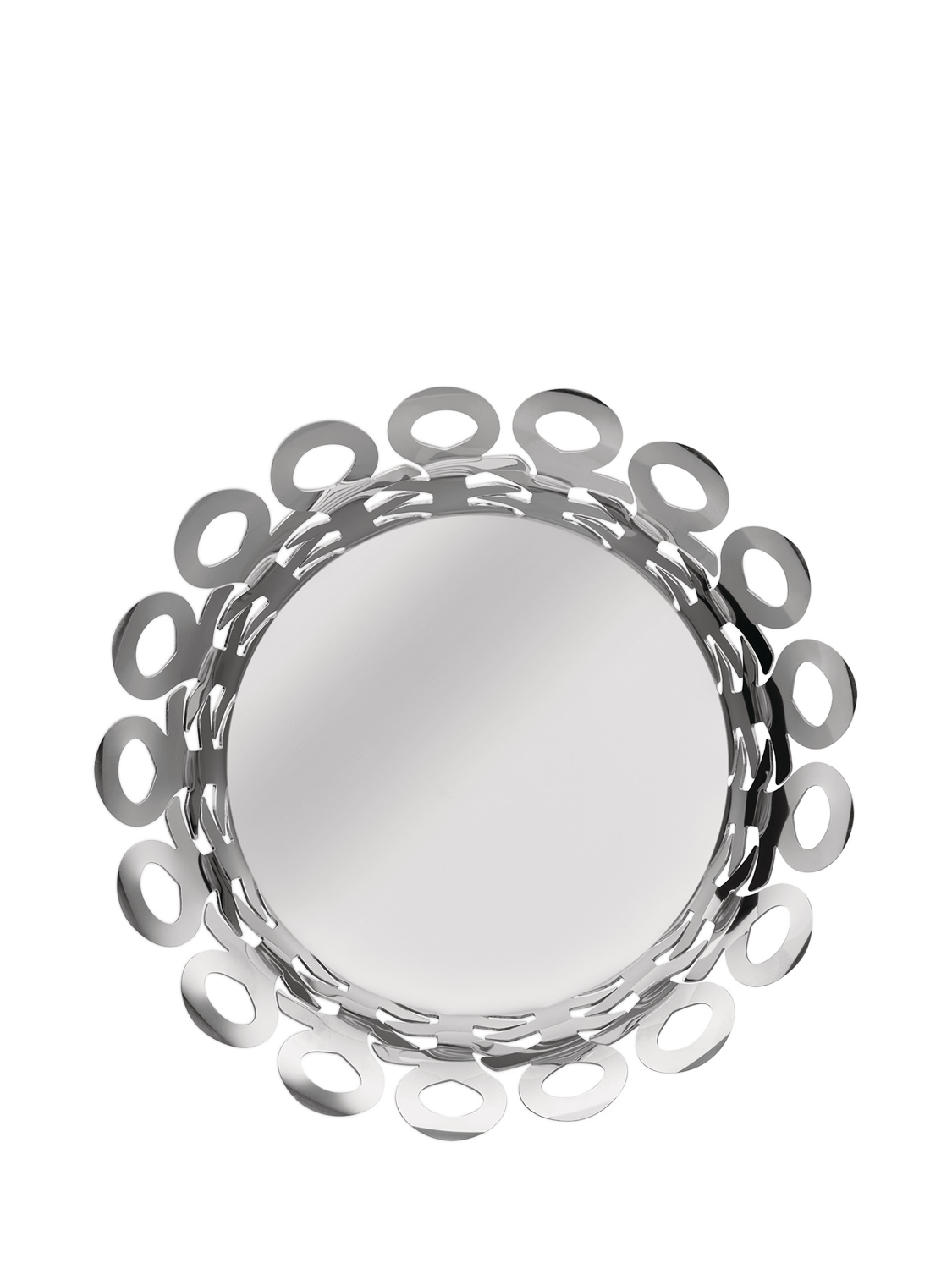 Inspired by traditional woven wicker baskets, Michel Bouquillon and Donia Maaoui have created a novel and original object that plays with the shapes of these artisanal pieces. After being laser cut, the sheet steel is moulded in a series of mechanical production steps that rely on Alessi workshop skills to process the metal.