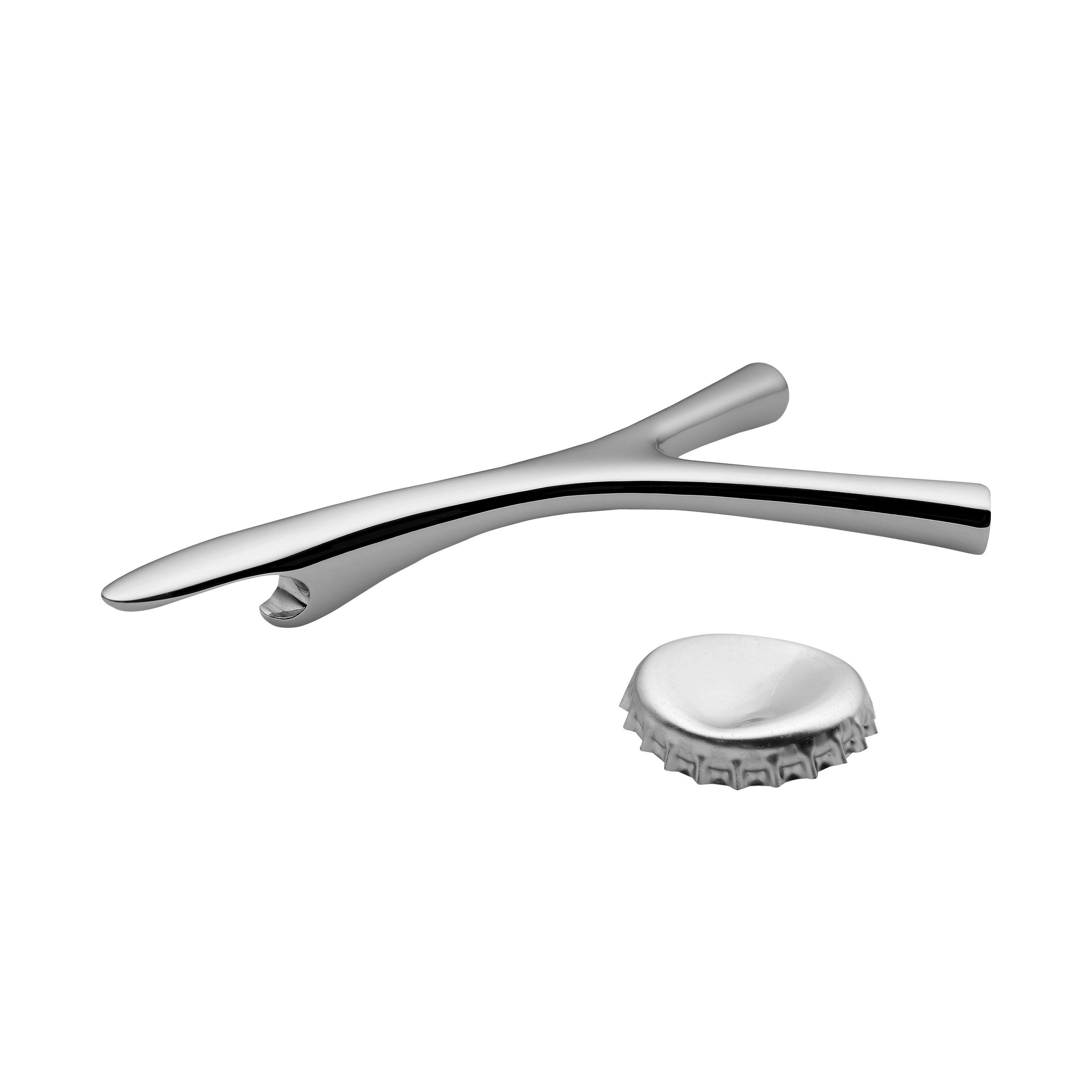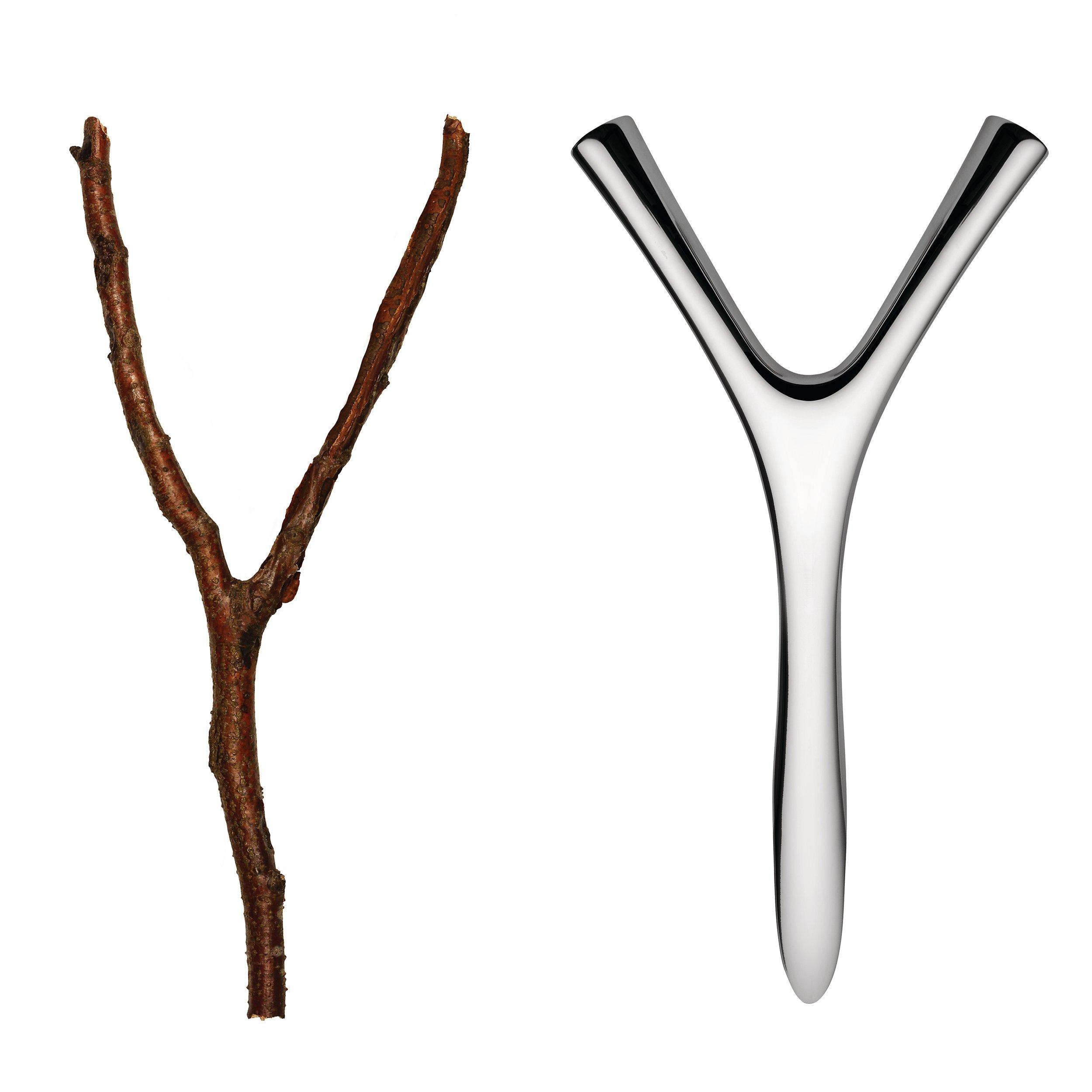 "Virgula Divina" is the Latin term used to identify the Y-shaped dowsing rod, an indispensable tool for the dowser in his search for water or other hidden treasures. The art of dowsing or divination is the inspiration for the bottle opener designed by Frédéric Gooris, to which he refers both in the name and in the enigmatic shape of his concept. Made of polished precision-cast steel, for a pleasant grip and fitted with a hook-shaped spout to catch the bottle top and remove it with ease.