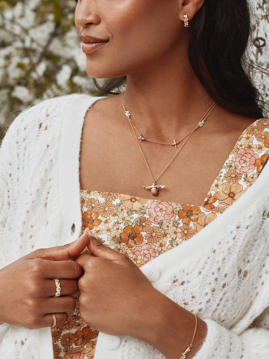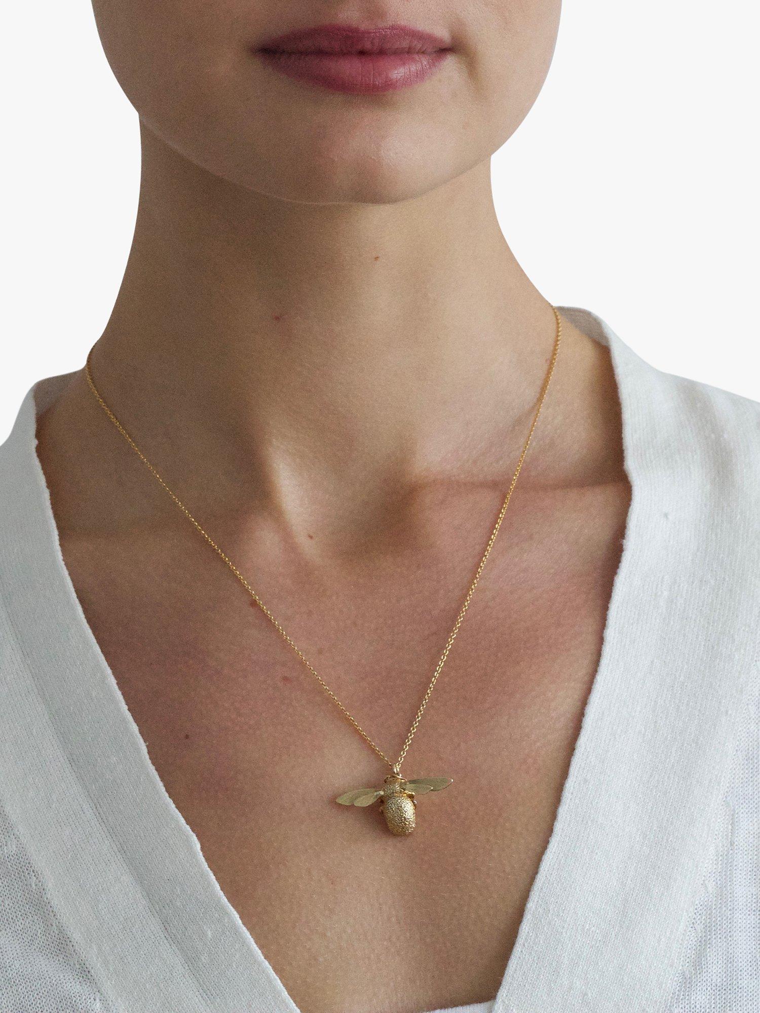 This heavily textured bumblebee necklace from Alex Monroe is particularly sweet hung on a plain link chain. It rests just below the collar bone, giving it all the attention it deserves. Made from lustrous 22ct gold plated sterling silver.