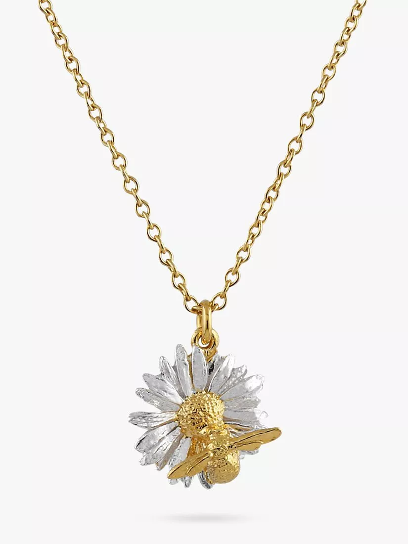 In perfect bloom, this Alex Monroe necklace features a classic daisy and baby bee pendant, made in silver and plated with 22 carat gold.