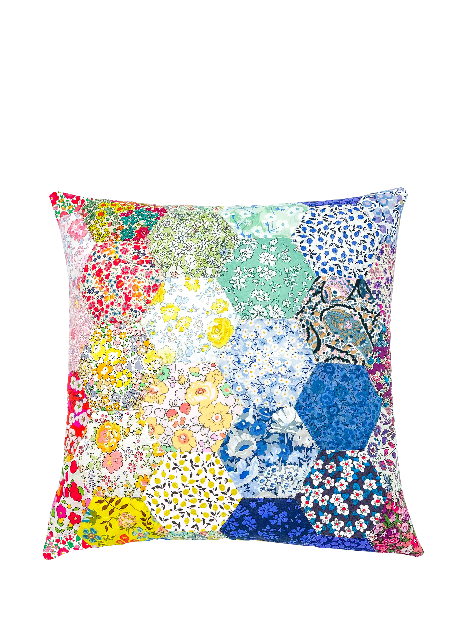 Craft your own beautiful hexagon cushion cover with this Liberty Tana Lawn® Fabric English Paper Piecing (EPP) sewing kit.