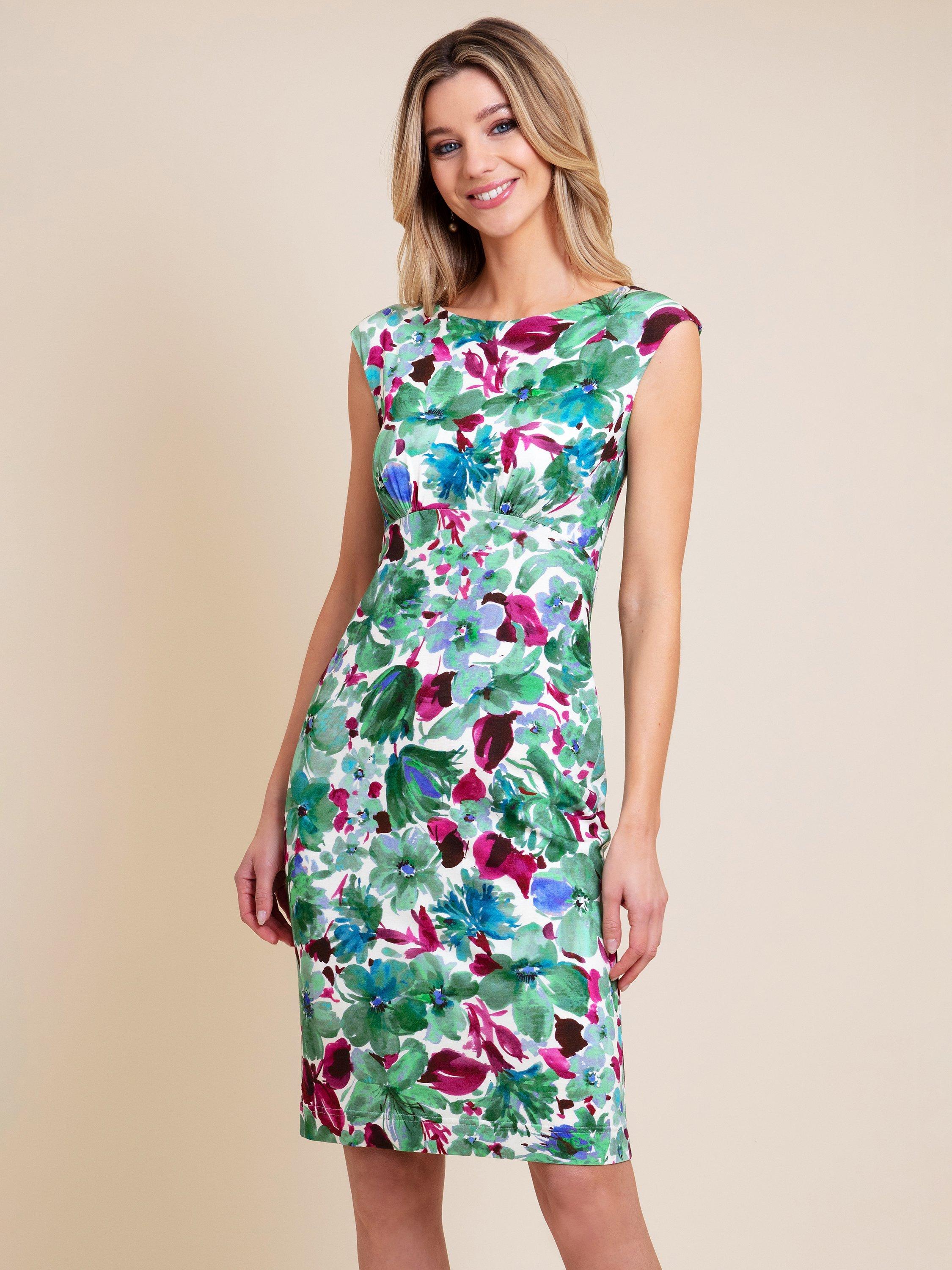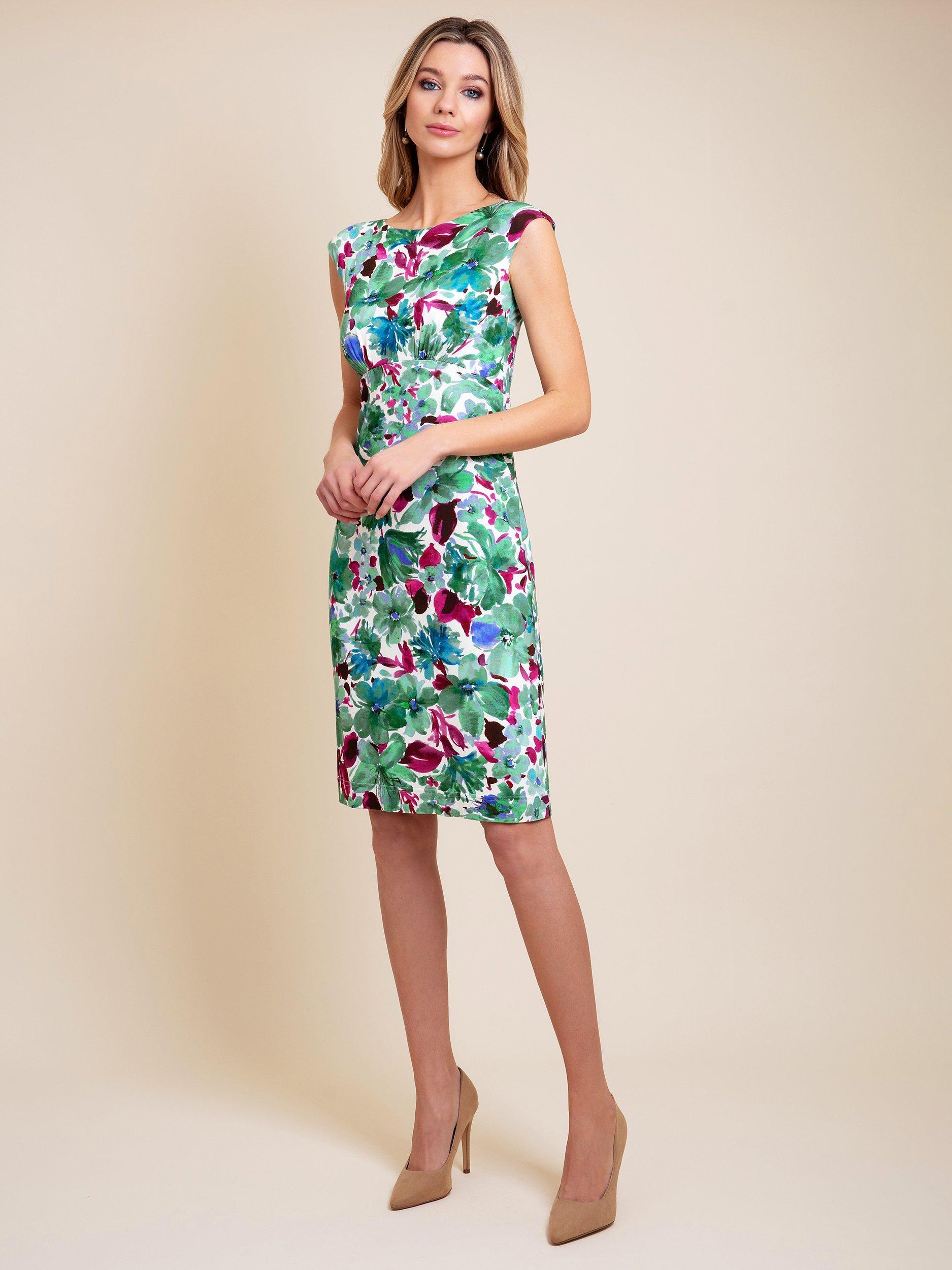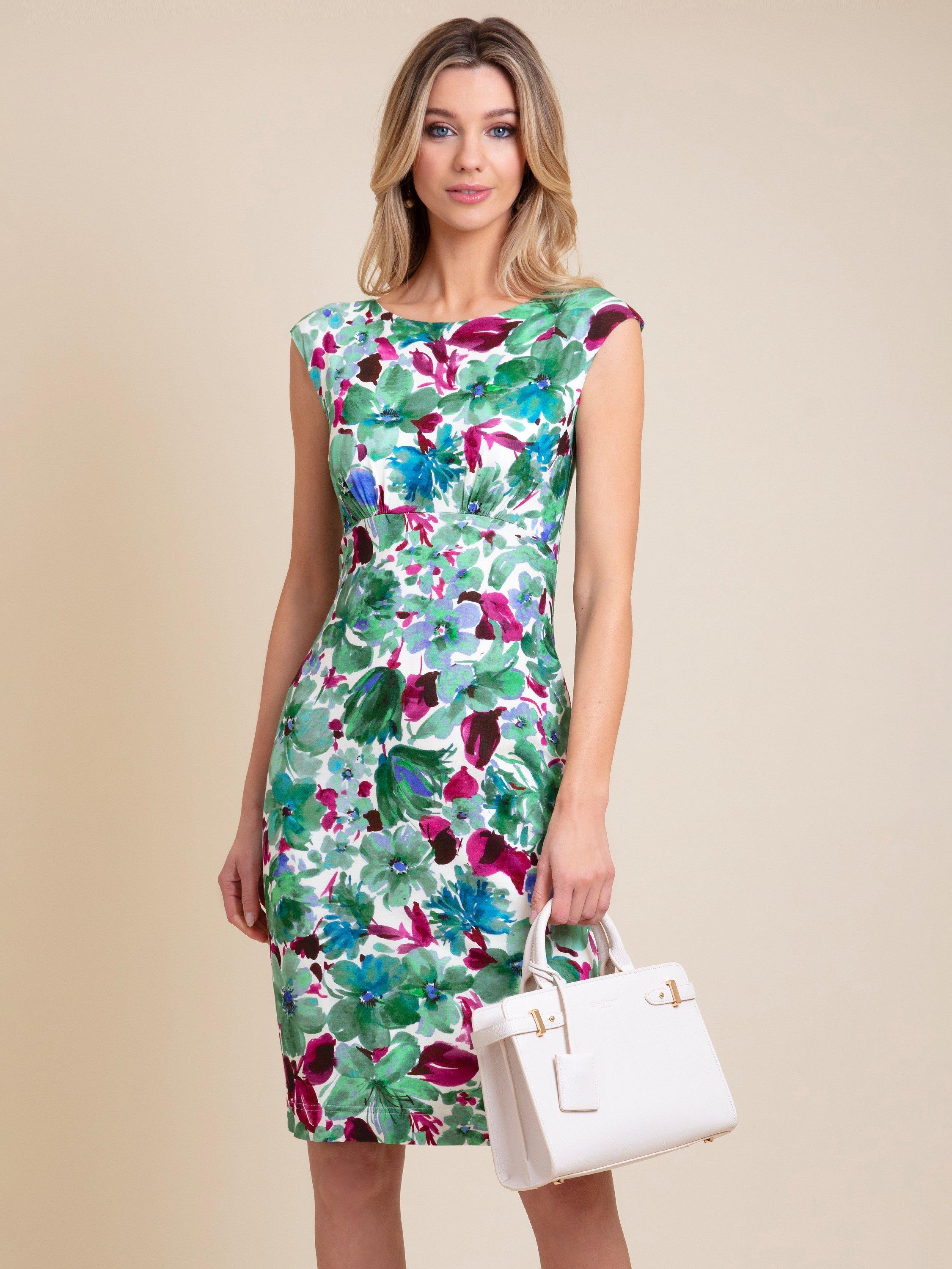 Designed in a form-fitting shift shape, this floral knee length dress from Alie Street is designed for a smooth and flattering silhouette. A boat neckline, raised waist and pencil skirt exudes effortless elegance - leaving you feeling confident and serene. A perfect wedding guest dress that will make you shine.