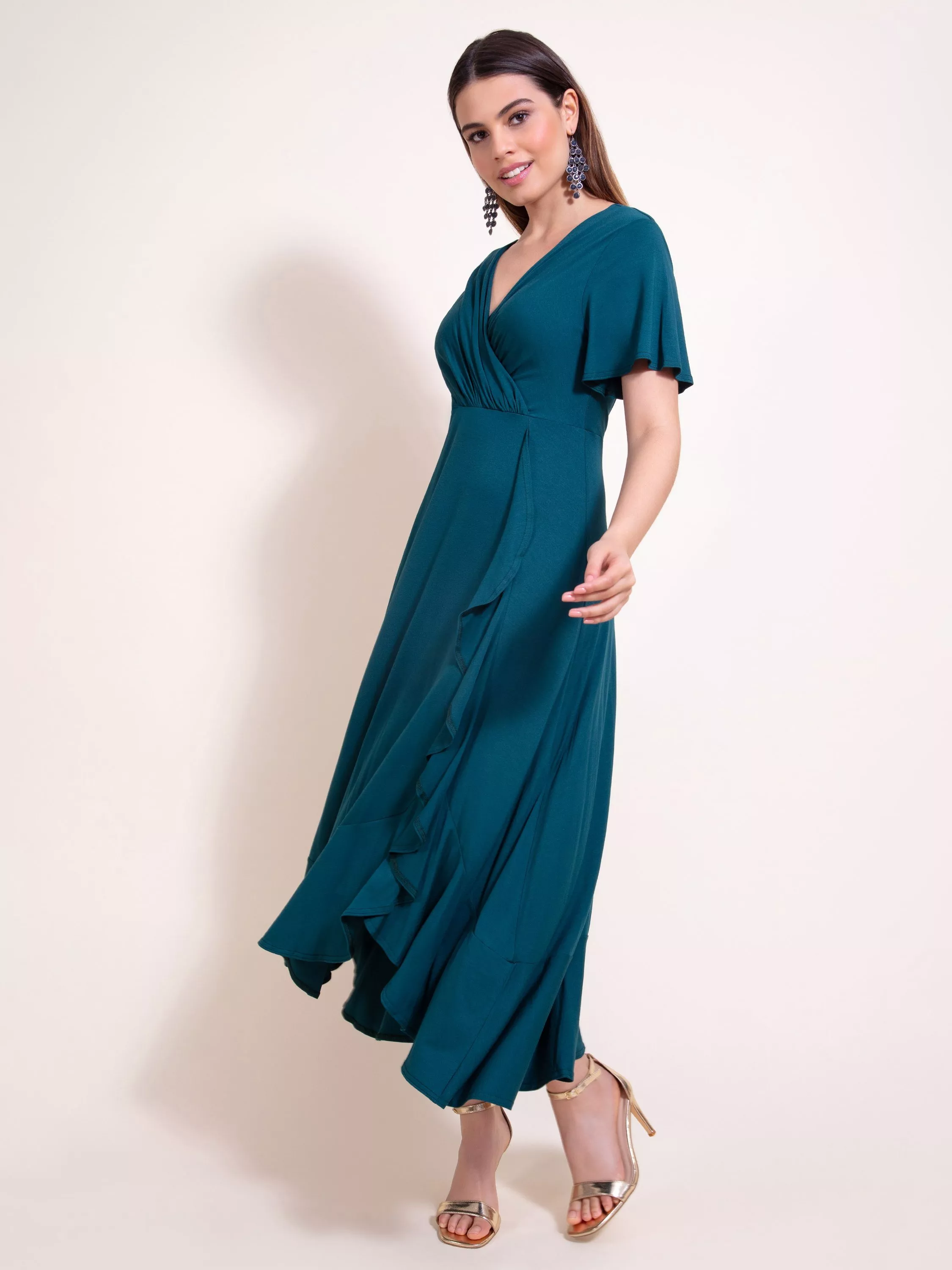 Feel inspired with this fabulous Waterfall Dress. This faux wrap midi dress delivers a flounce with frills in a chic silhouette that is flattering and understated. Whatever your occasion celebrate in confident style, knowing that you look your absolute best.