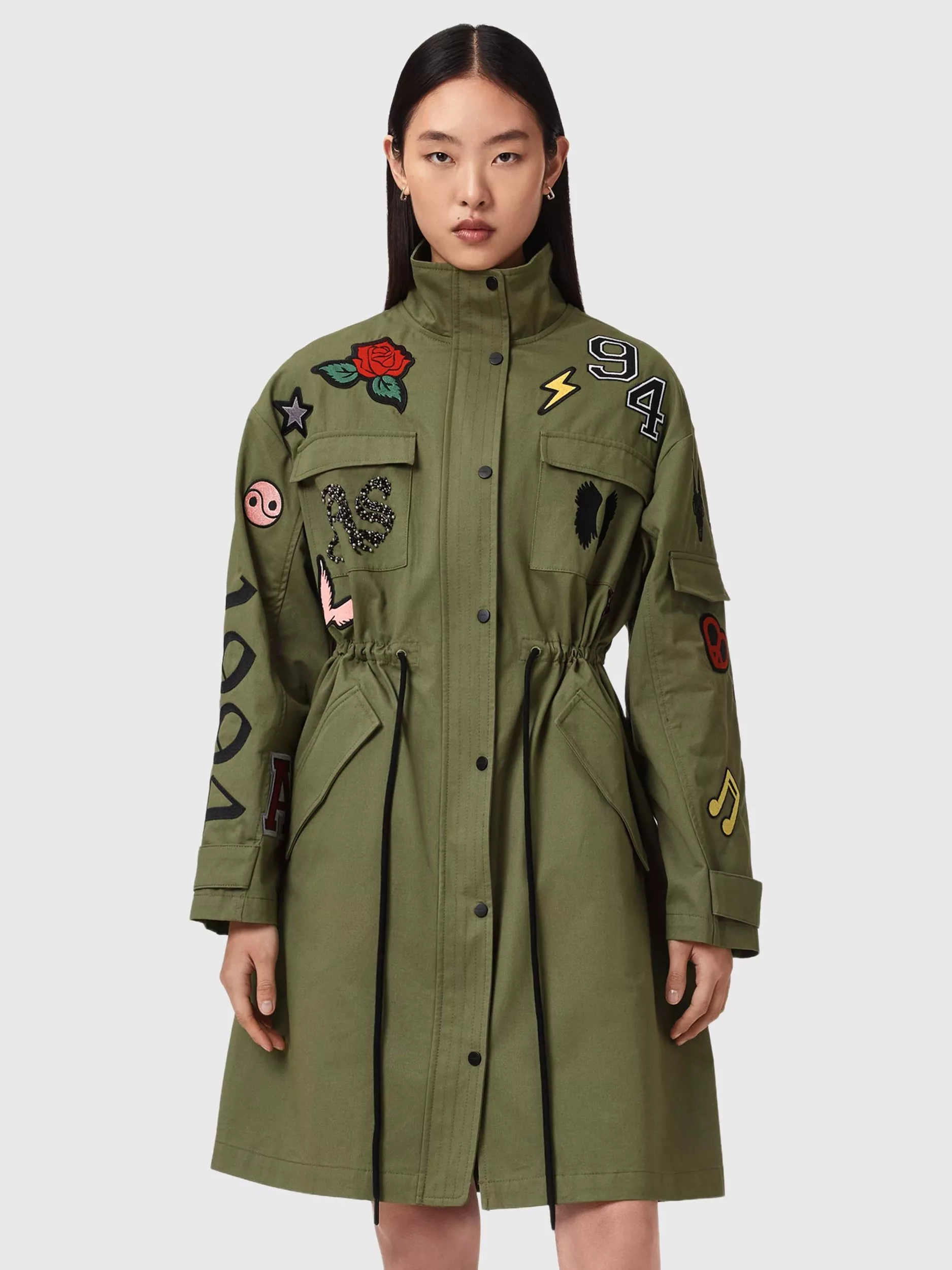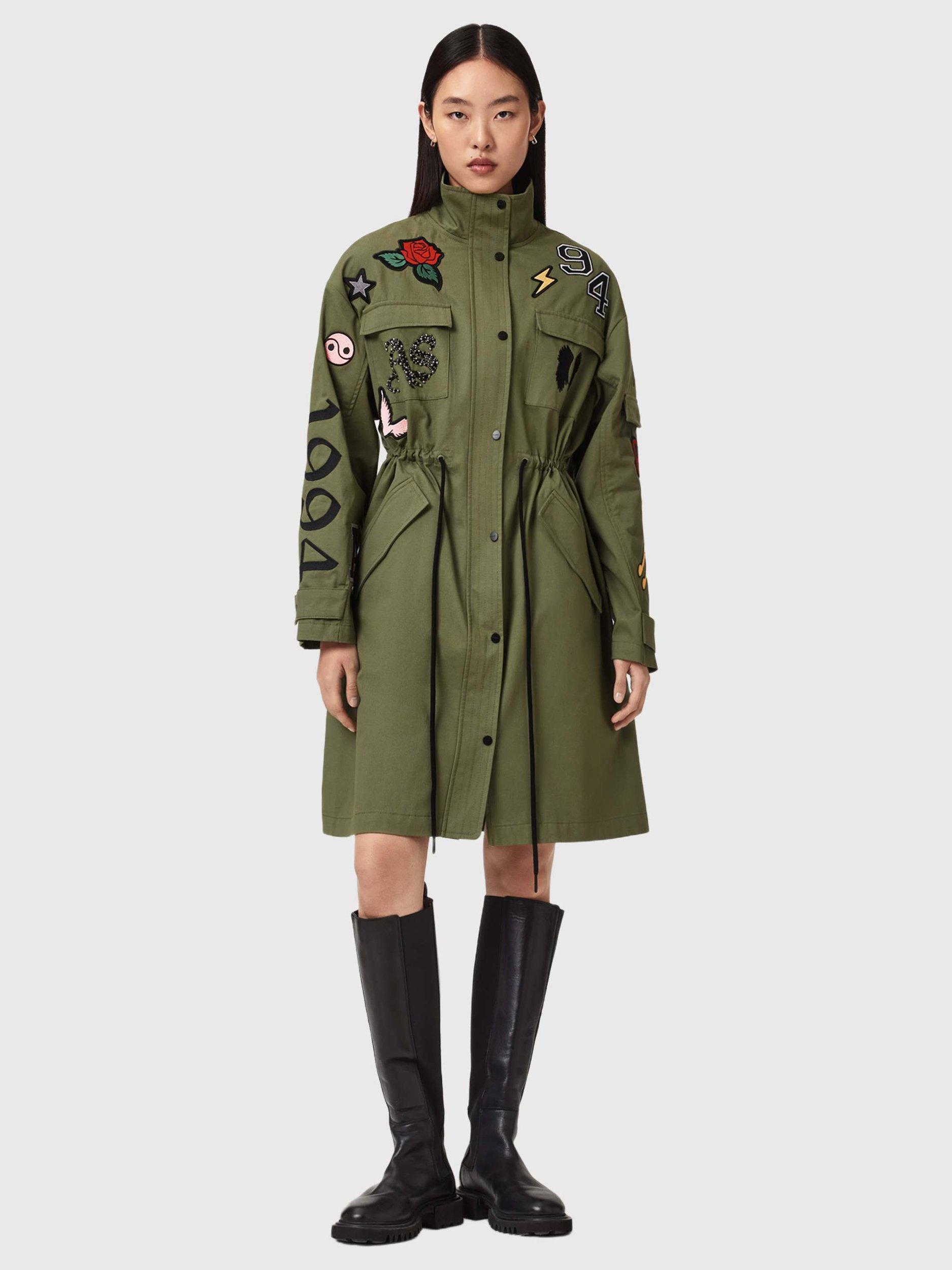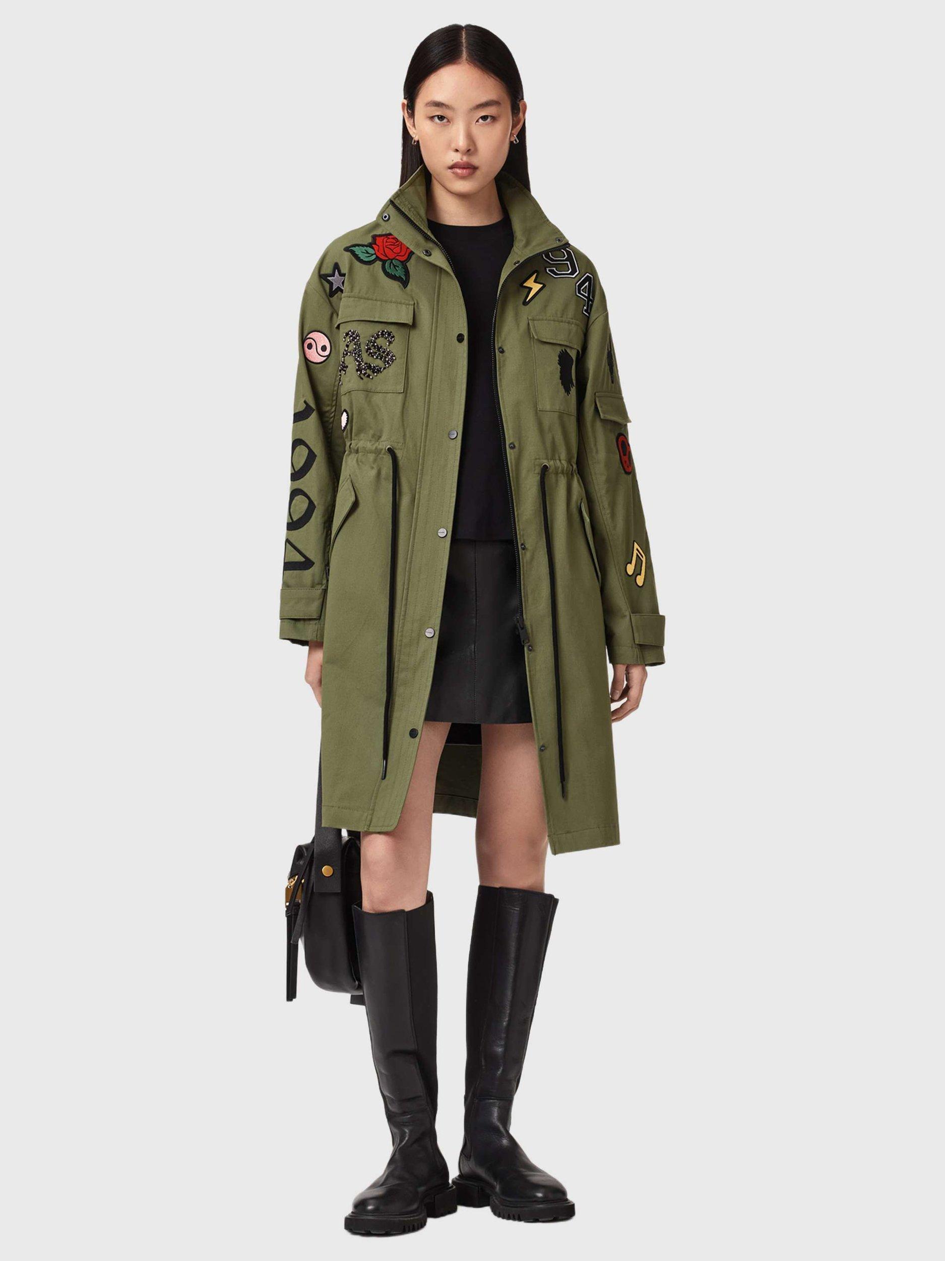 AllSaintsAriaa Emblems Parka, Green Khaki