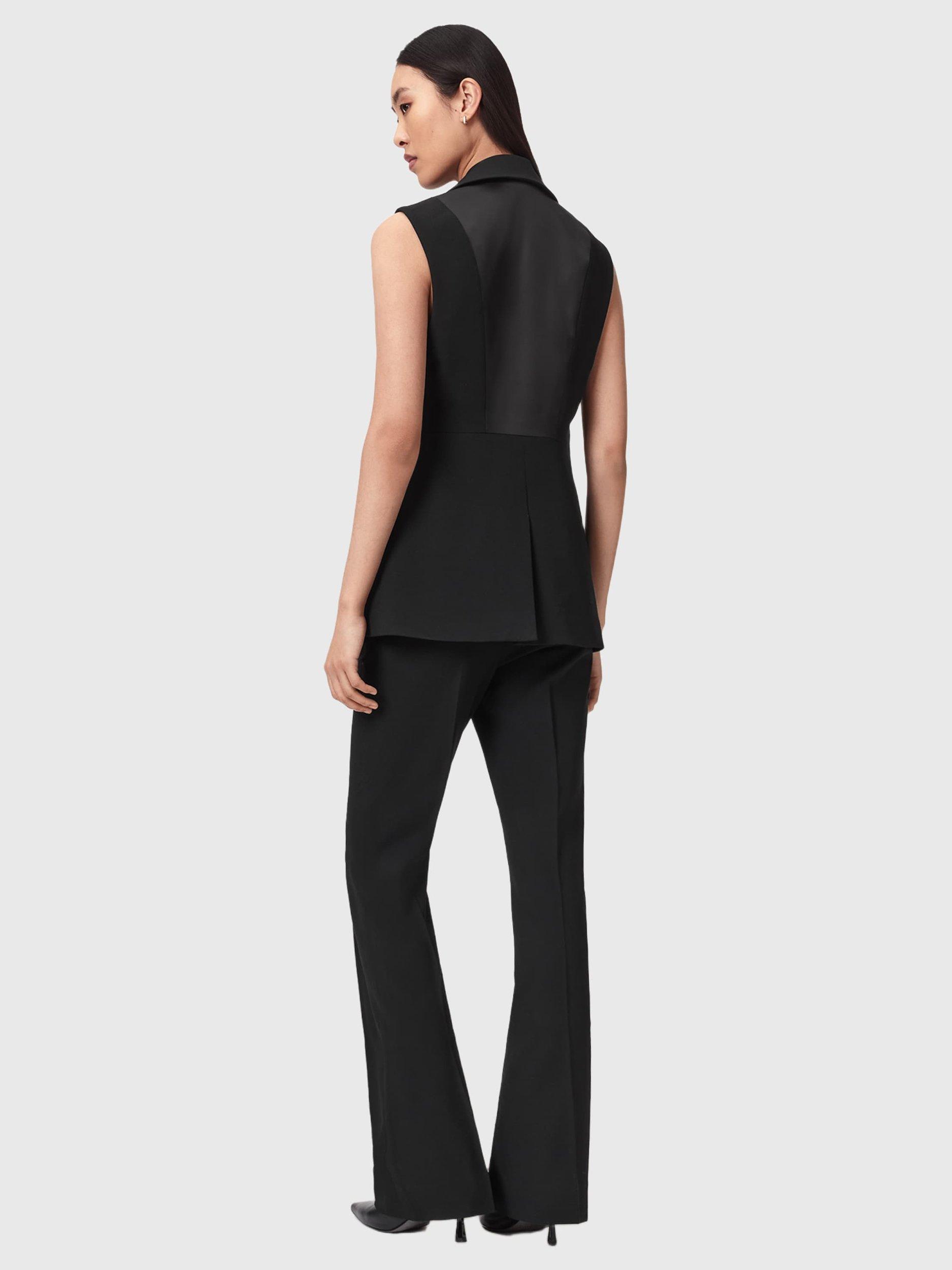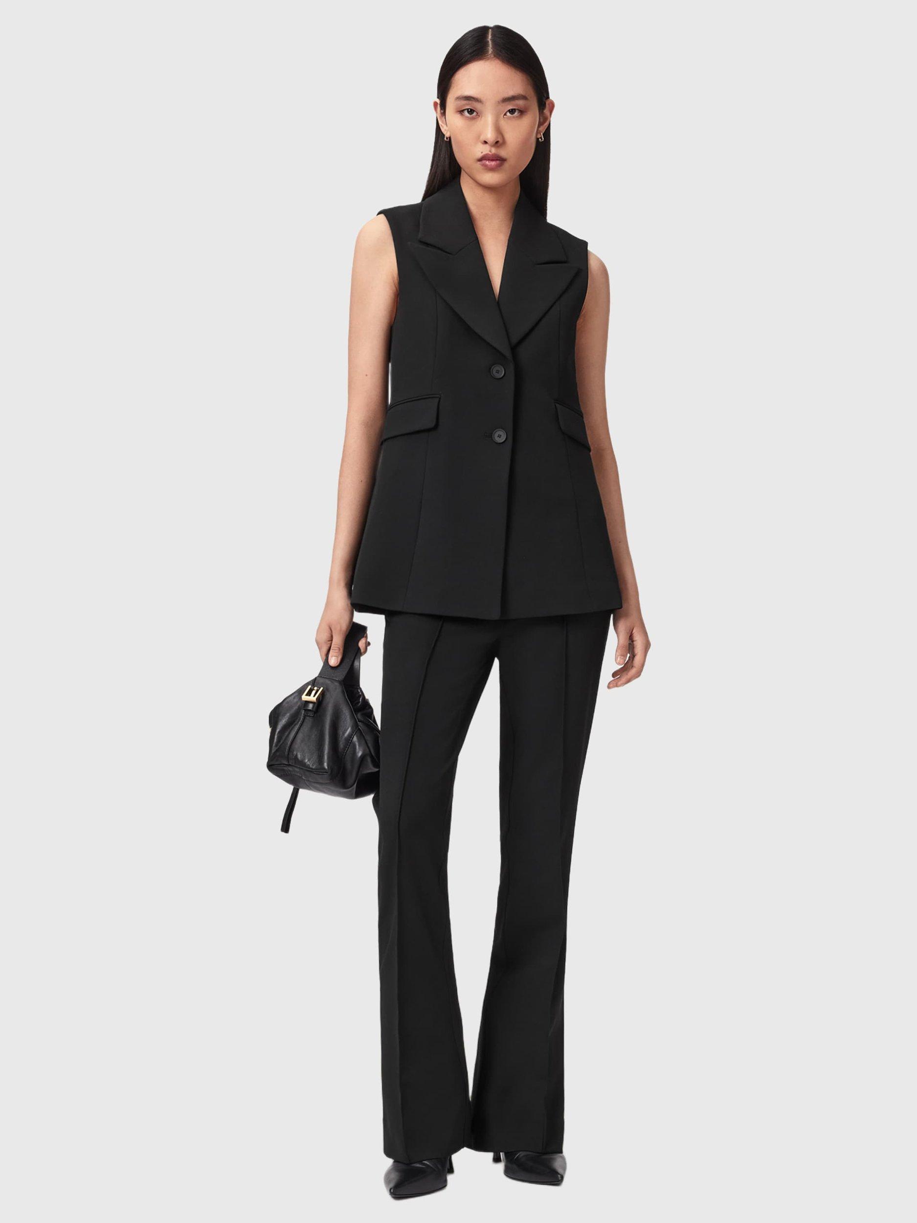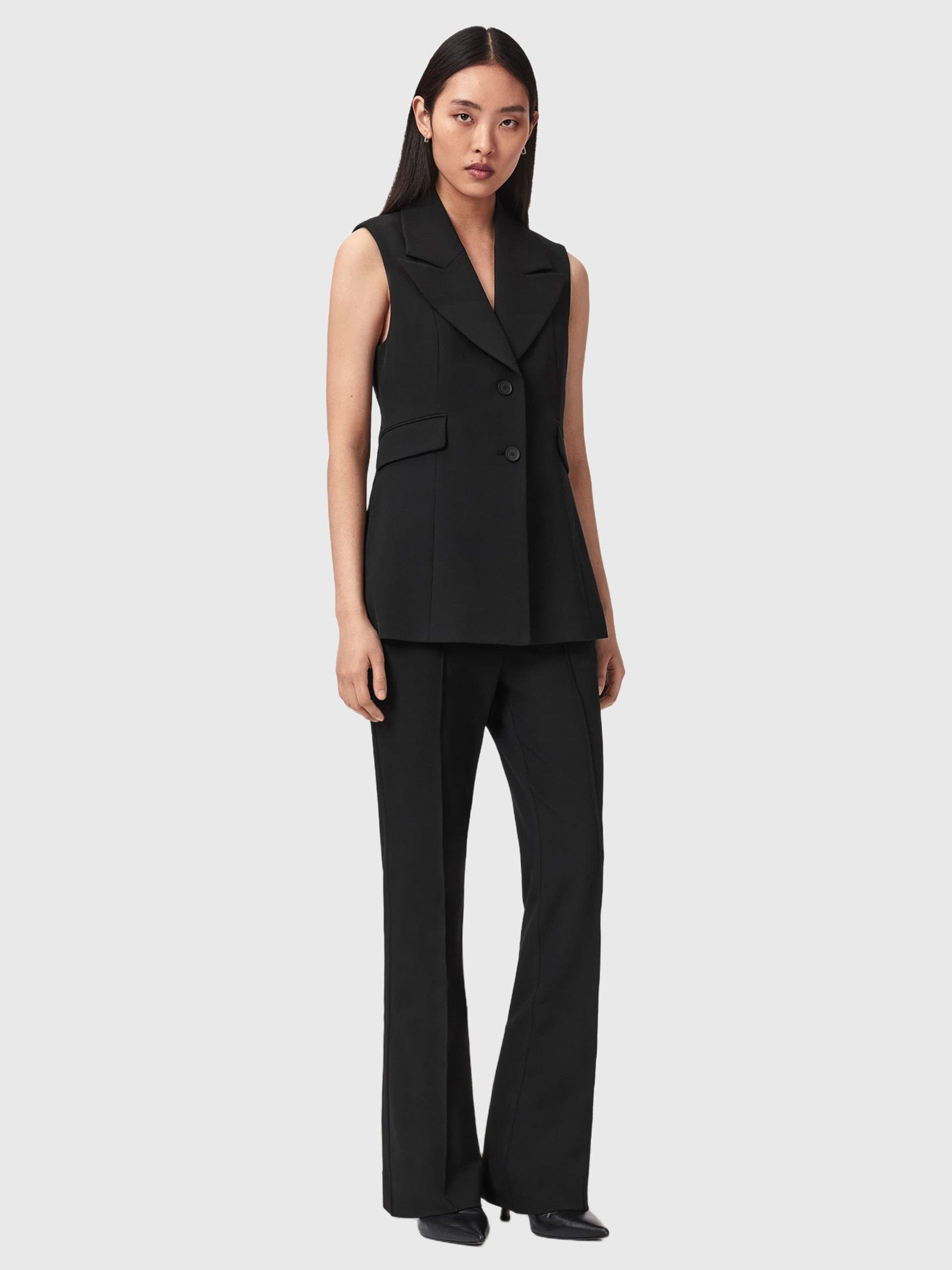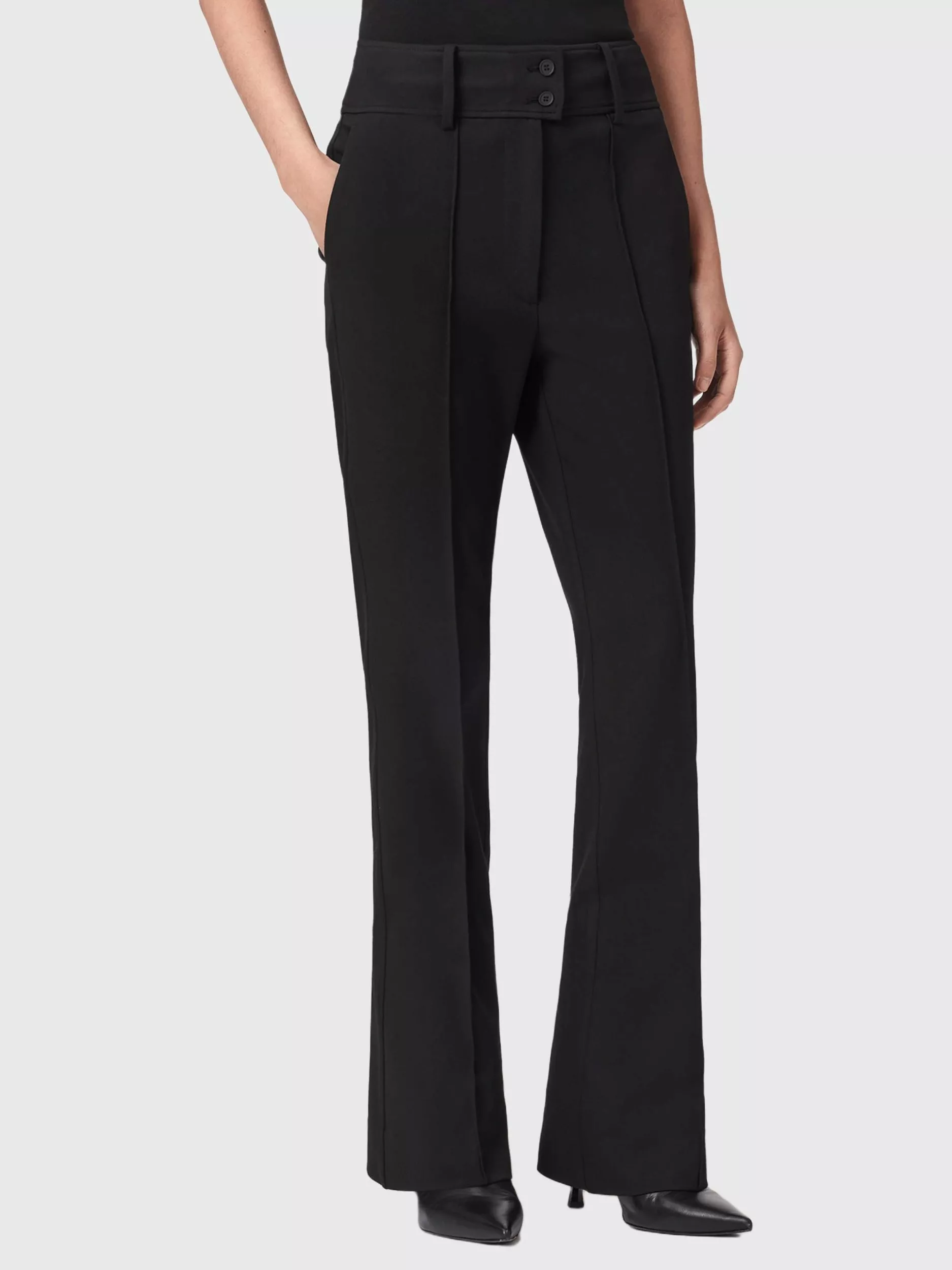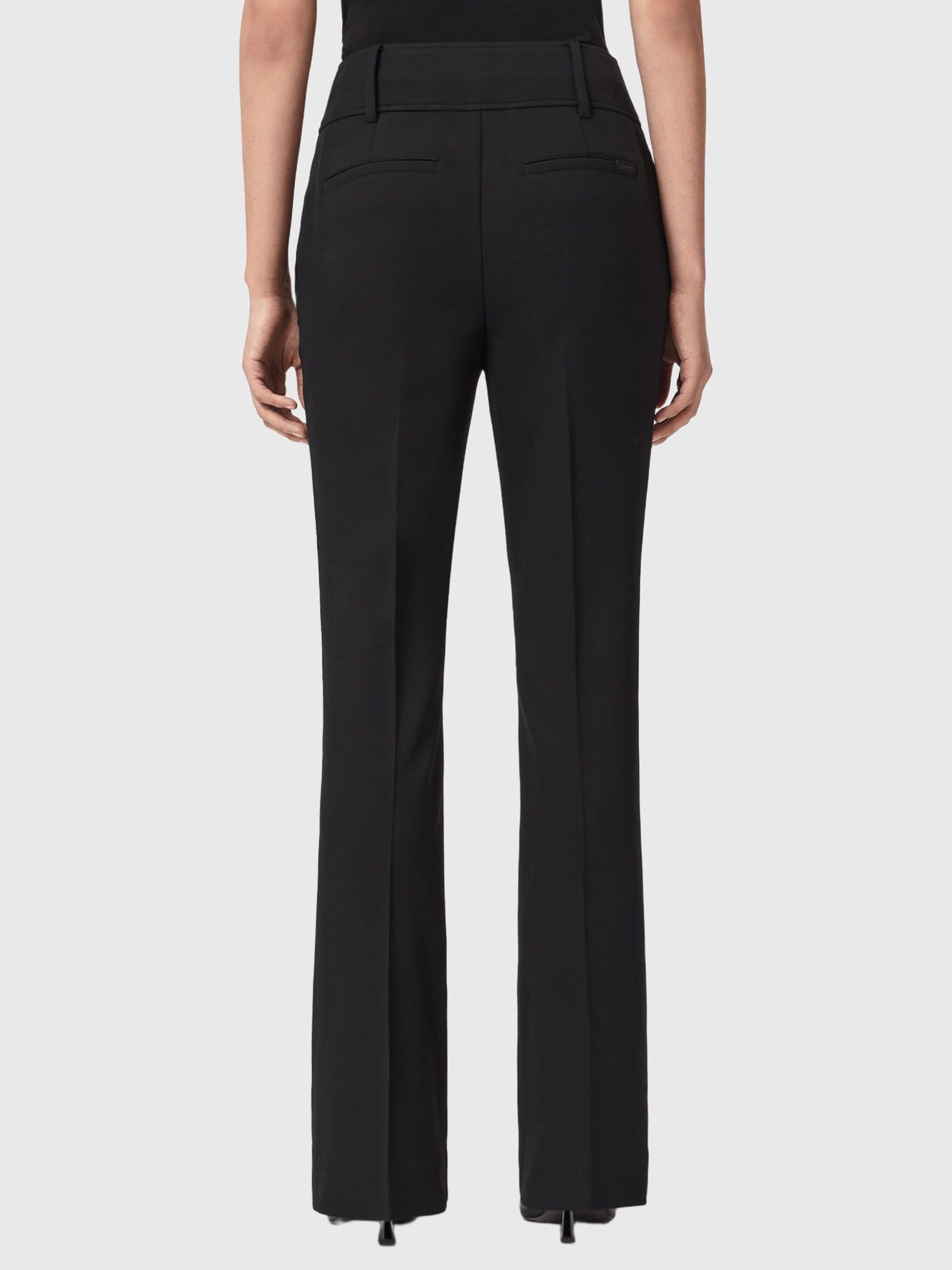Sleek flared trousers by AllSaints, tailored to sit mid rise with a zip fly and regular length hems.