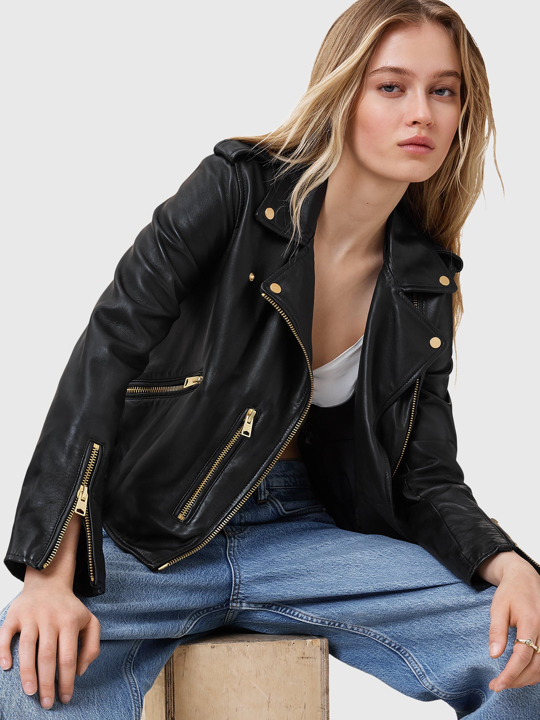 Back for the new season, the Balfern biker by AllSaints retains its cropped hem for contemporary appeal. Made from pure leather, it's bound to make a statement whatever the weather.
