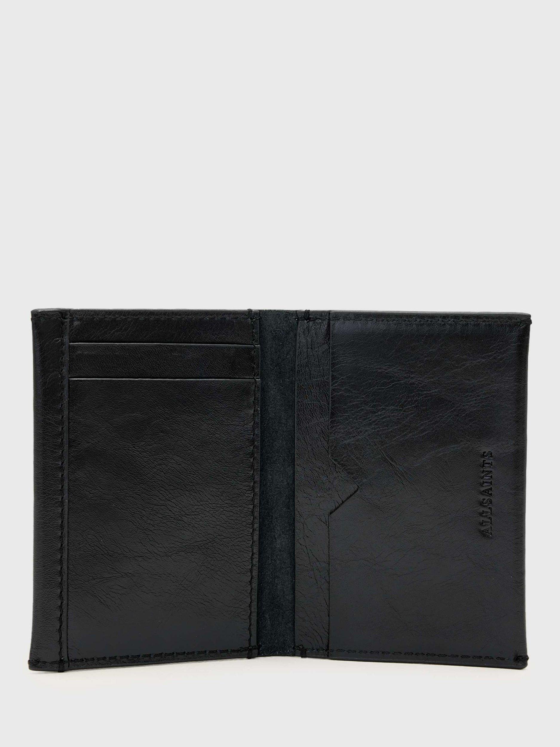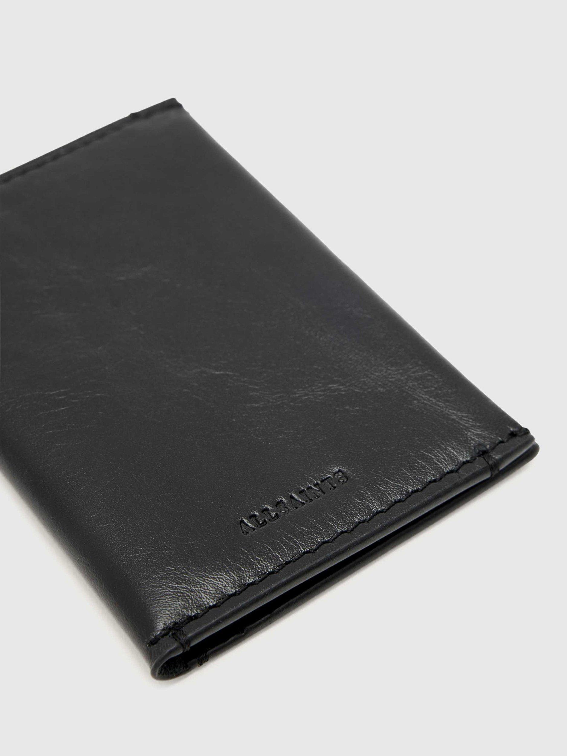 Simple bifold leather wallet with 4 card slots. Features Allsaints emboss branding on the front and the inside.