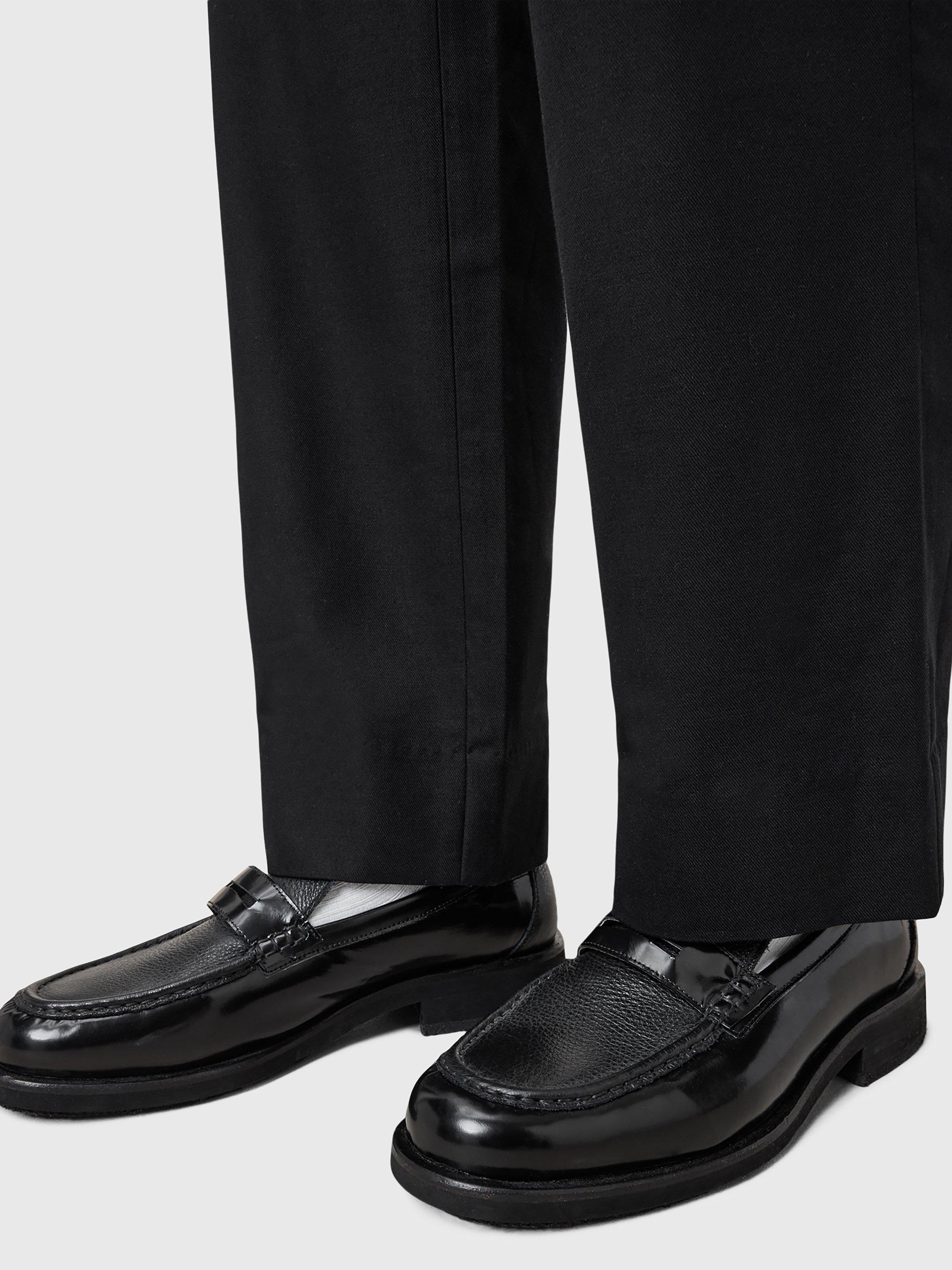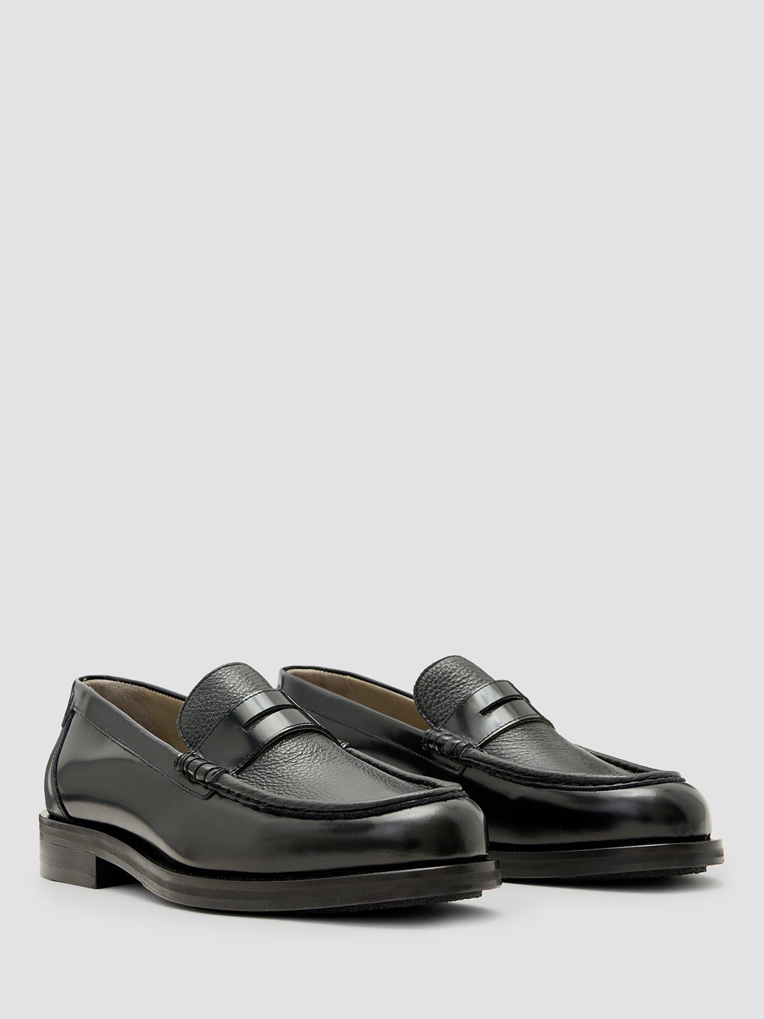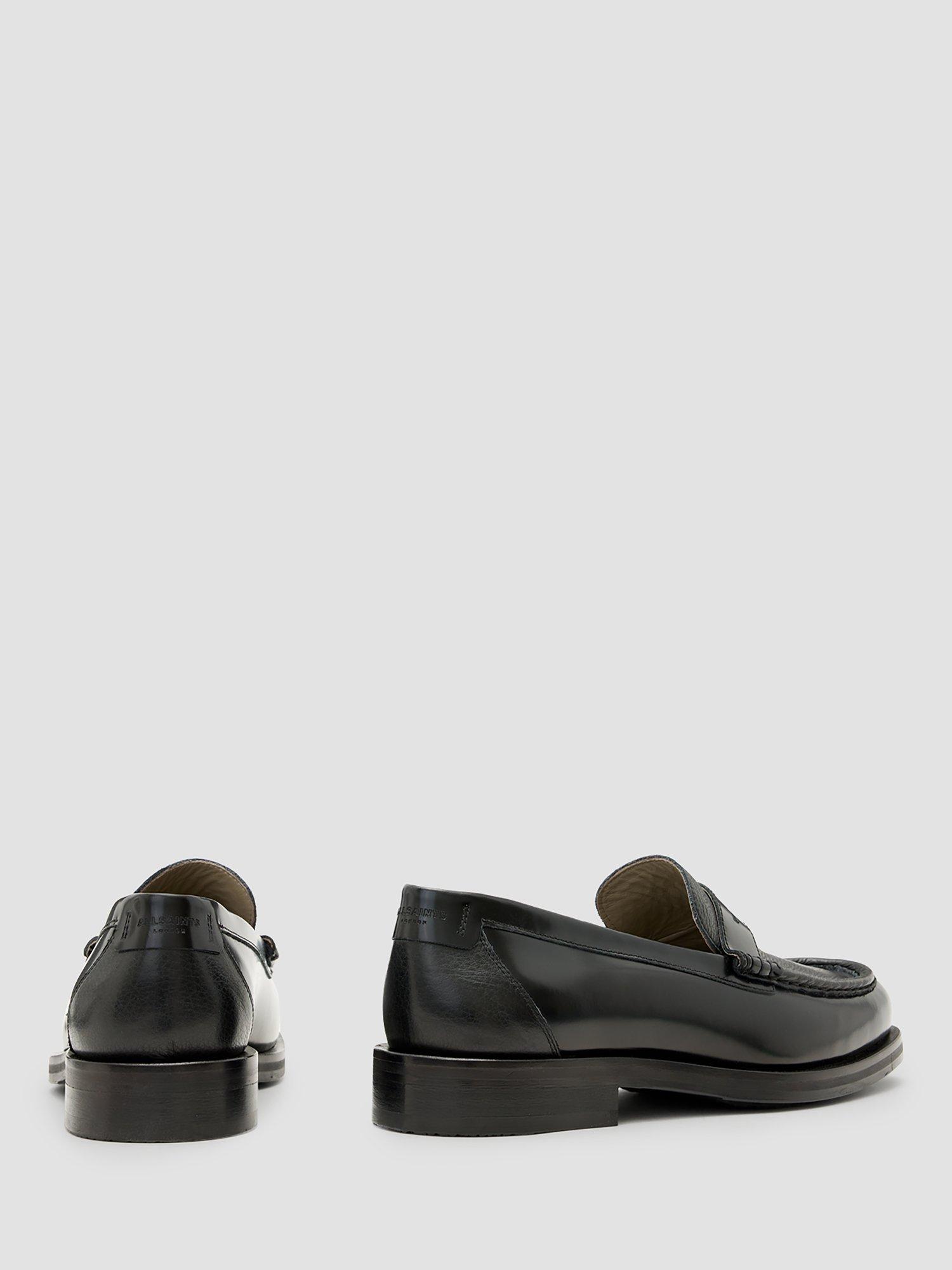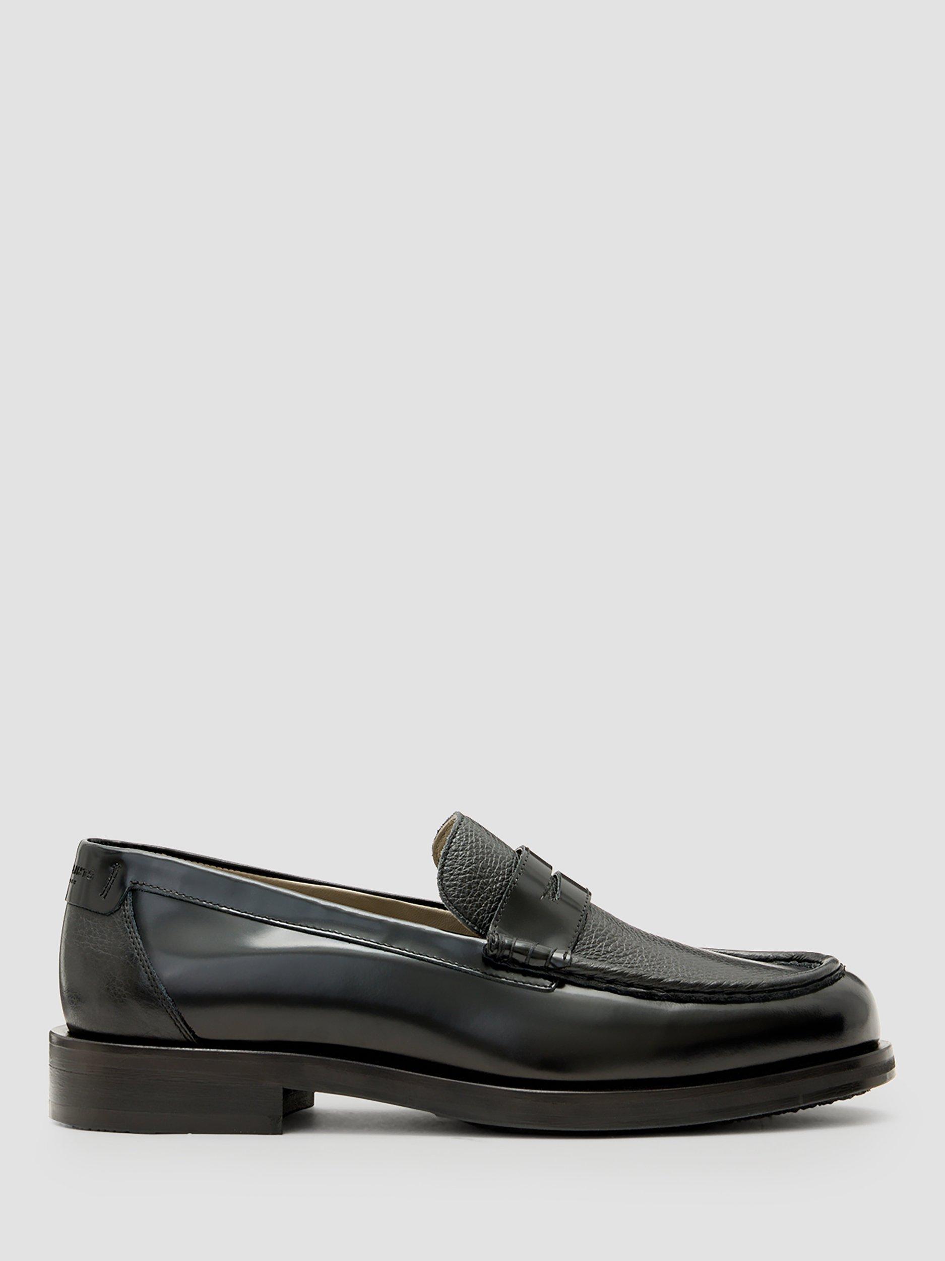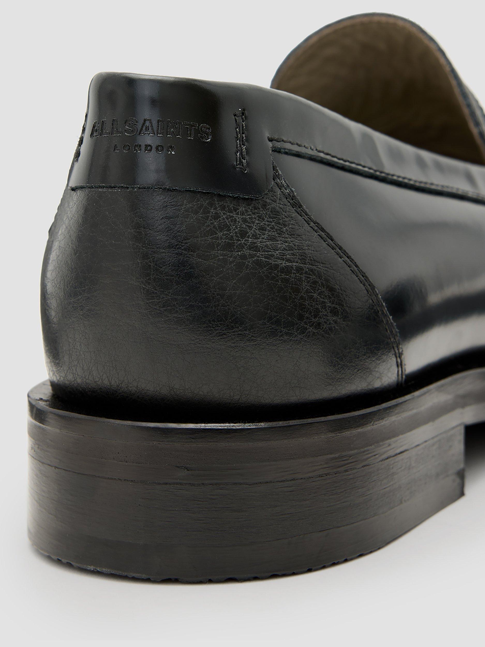 A suave choice for subtle style, these loafers from AllSaints are hand-stitched from premium leather. Slipping on when needed, they feature a heart print, contrast vamp and an apron front.