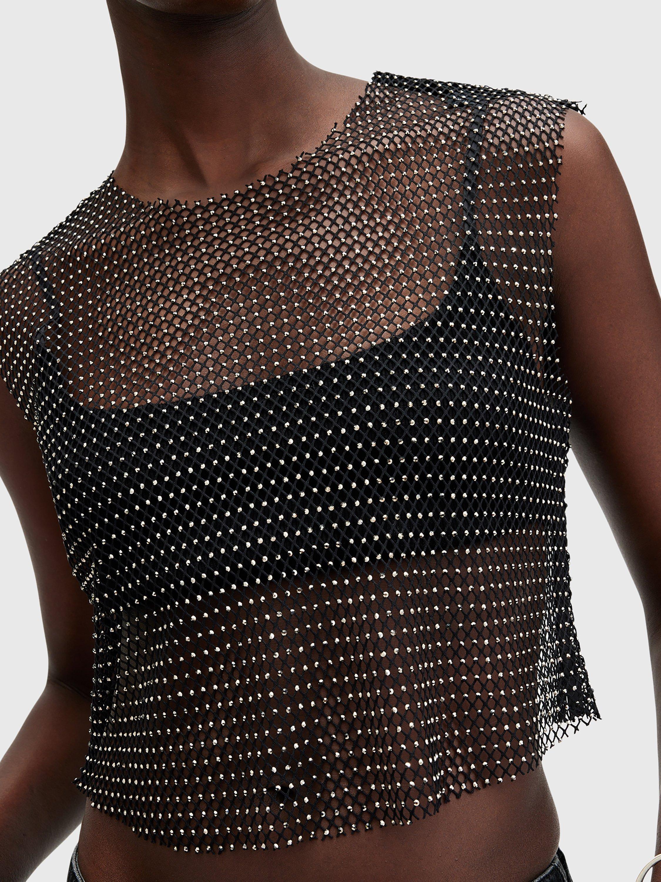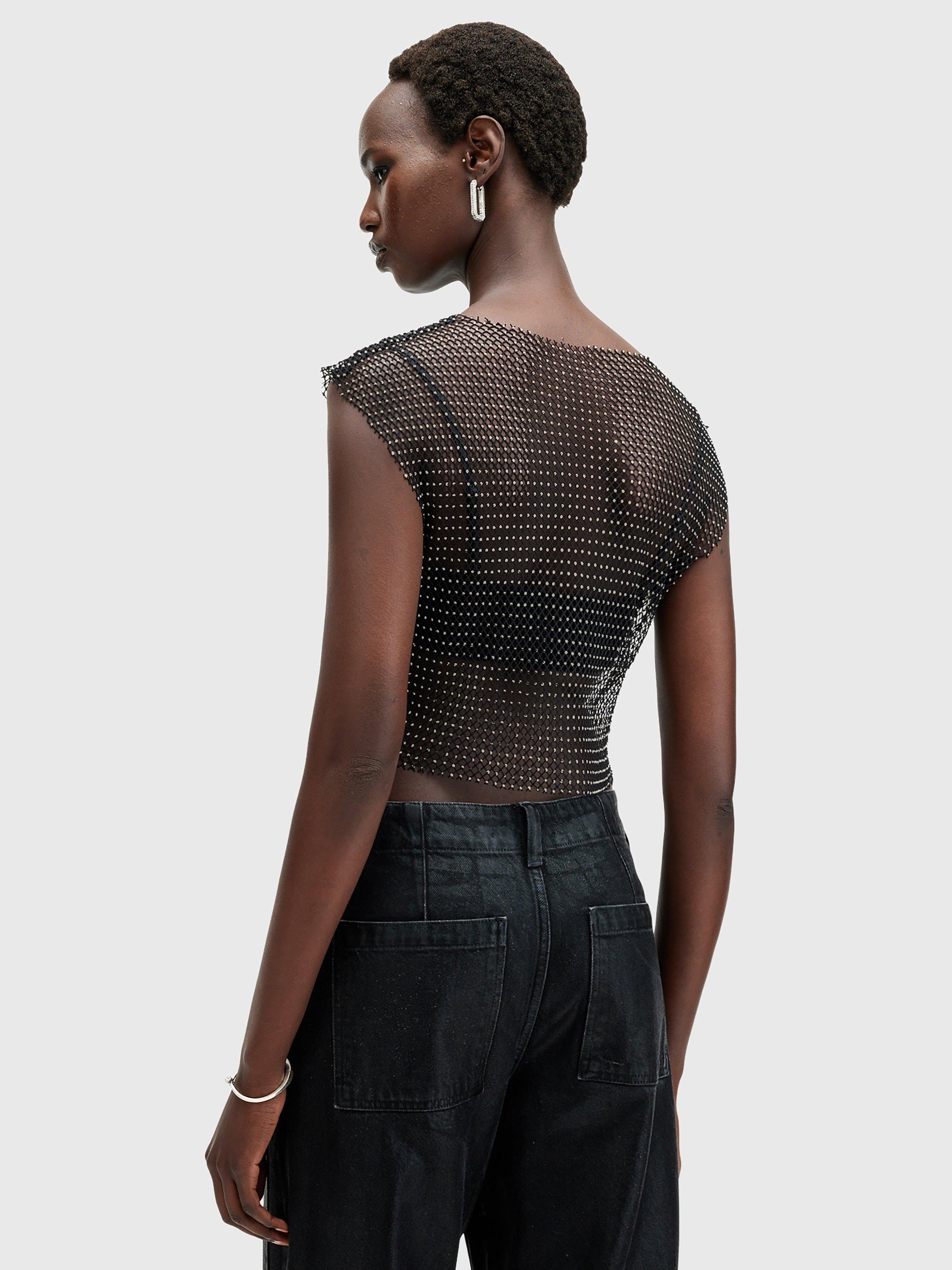 AllSaintsCalytrix Sparkle Top, Black/Silver
