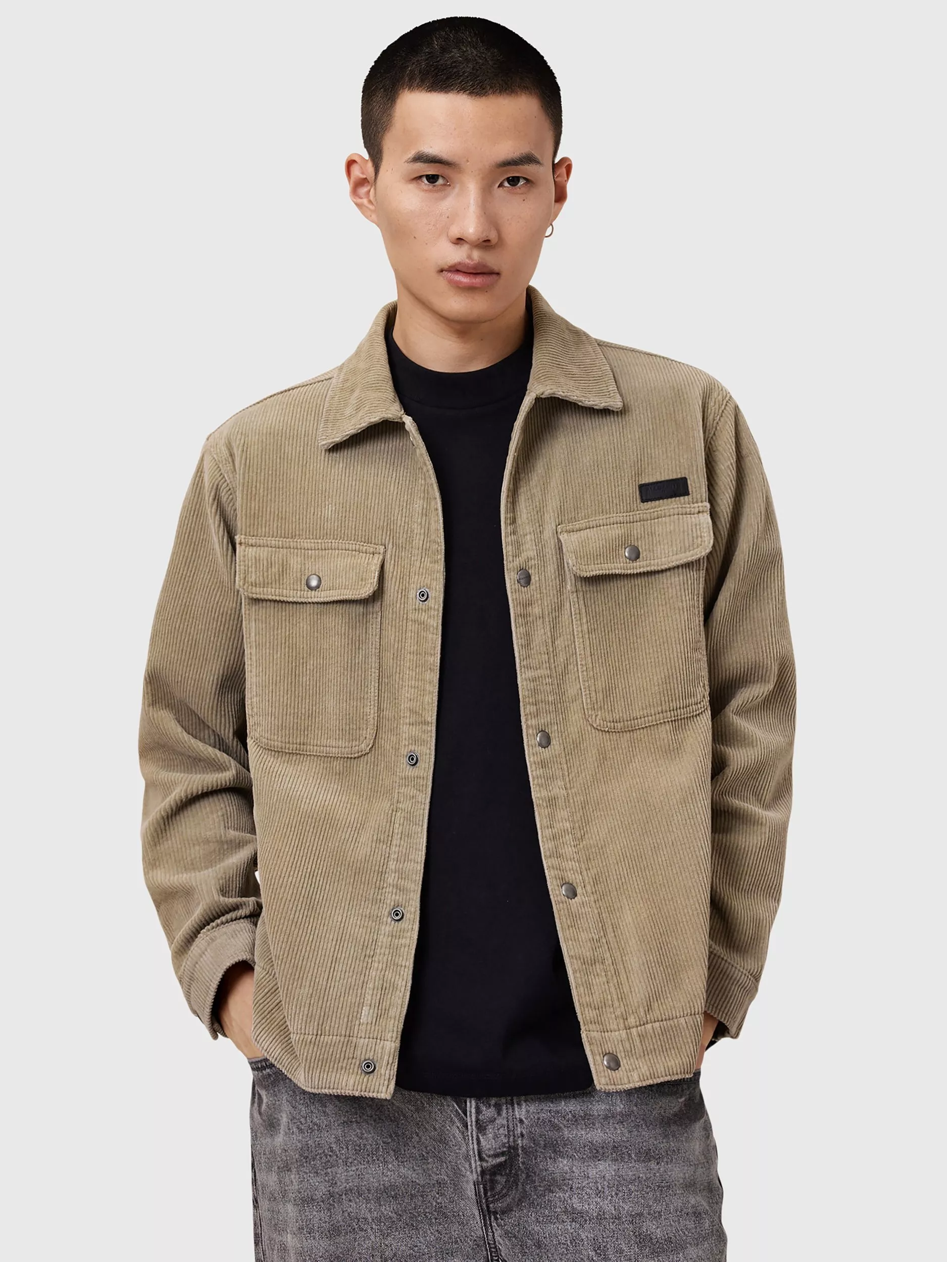 Easy to layer up in, this AllSaints shacket is crafted from organic cotton for comfort that keeps pace with daily plans. With a press stud fastening that offers easy, adaptable wear wherever your day takes you.