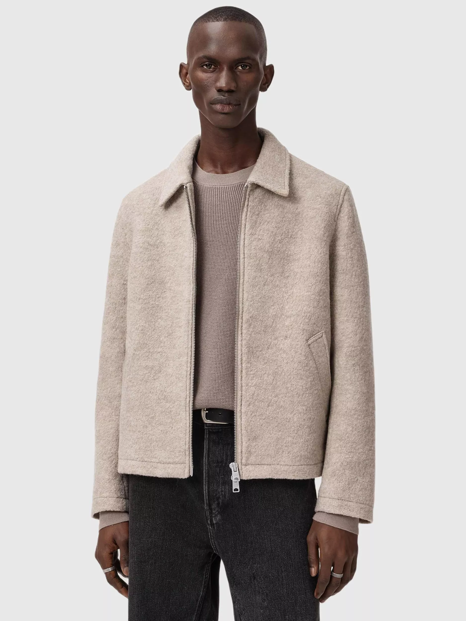 Crafted from warming wool, this jacket from AllSaints fastens with a zip and keeps thing minimalist for a timeless feel.