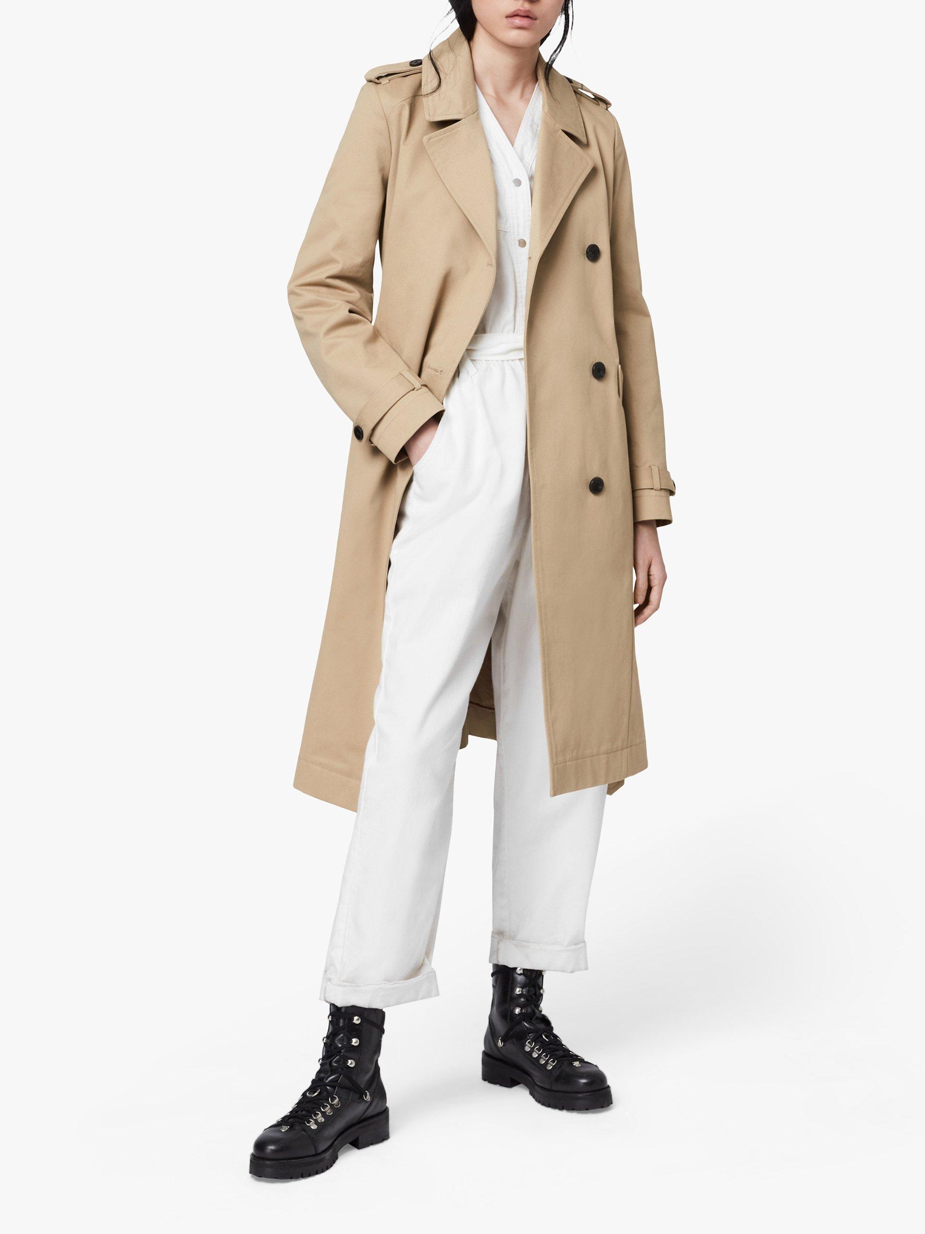 The sartorial staple, this AllSaints Chiara trench coat is a perfect seasonal addition to your wardrobe for the transitional weather. Three button fastenings at the front paired with large lapels and a waist belt create a relaxed fit to enhance any off-duty look. Cuff and shoulder details complete the traditional trench coat appeal.