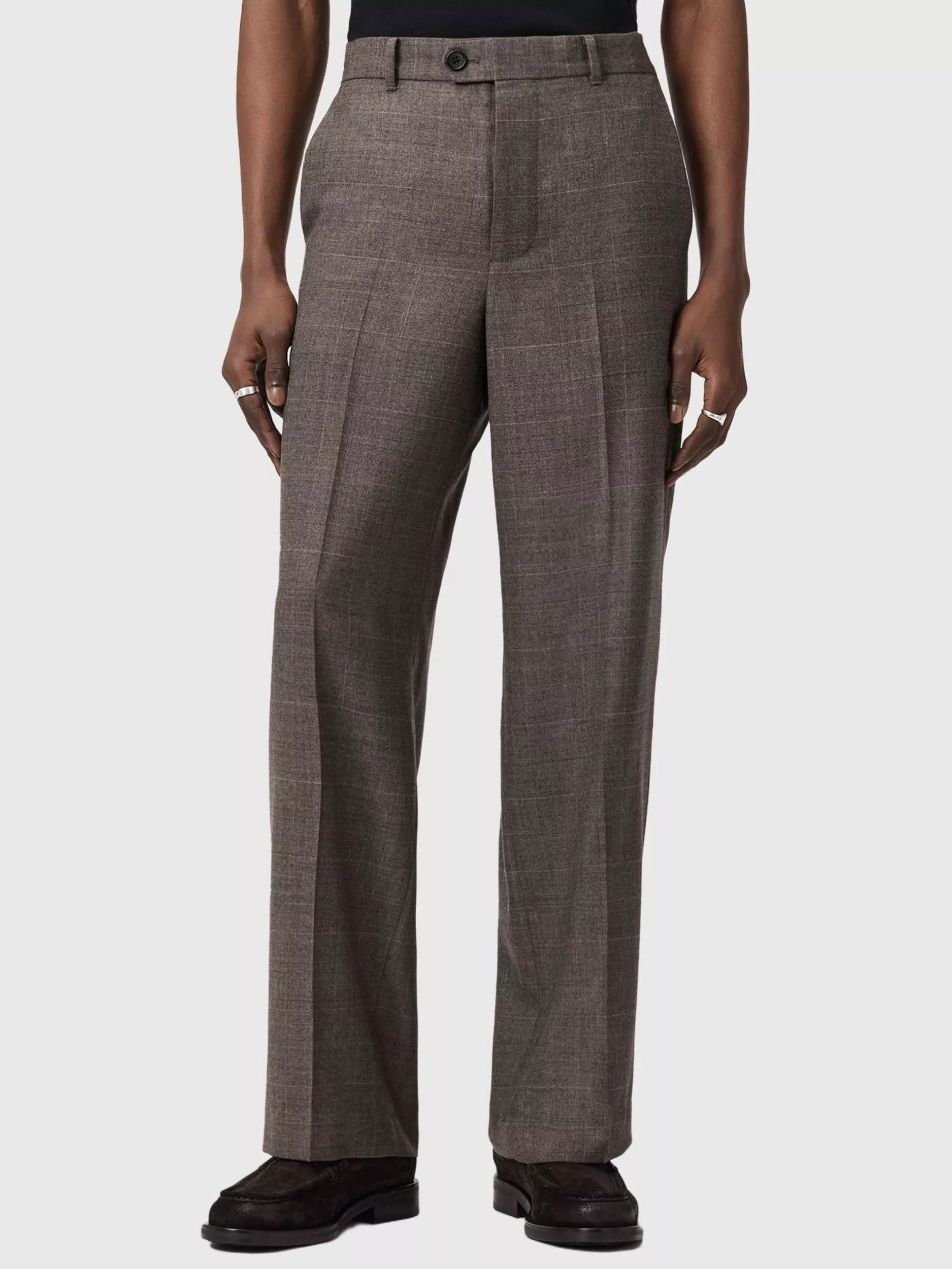 AllSaintsClover Check Wool Blend Trousers, Brown