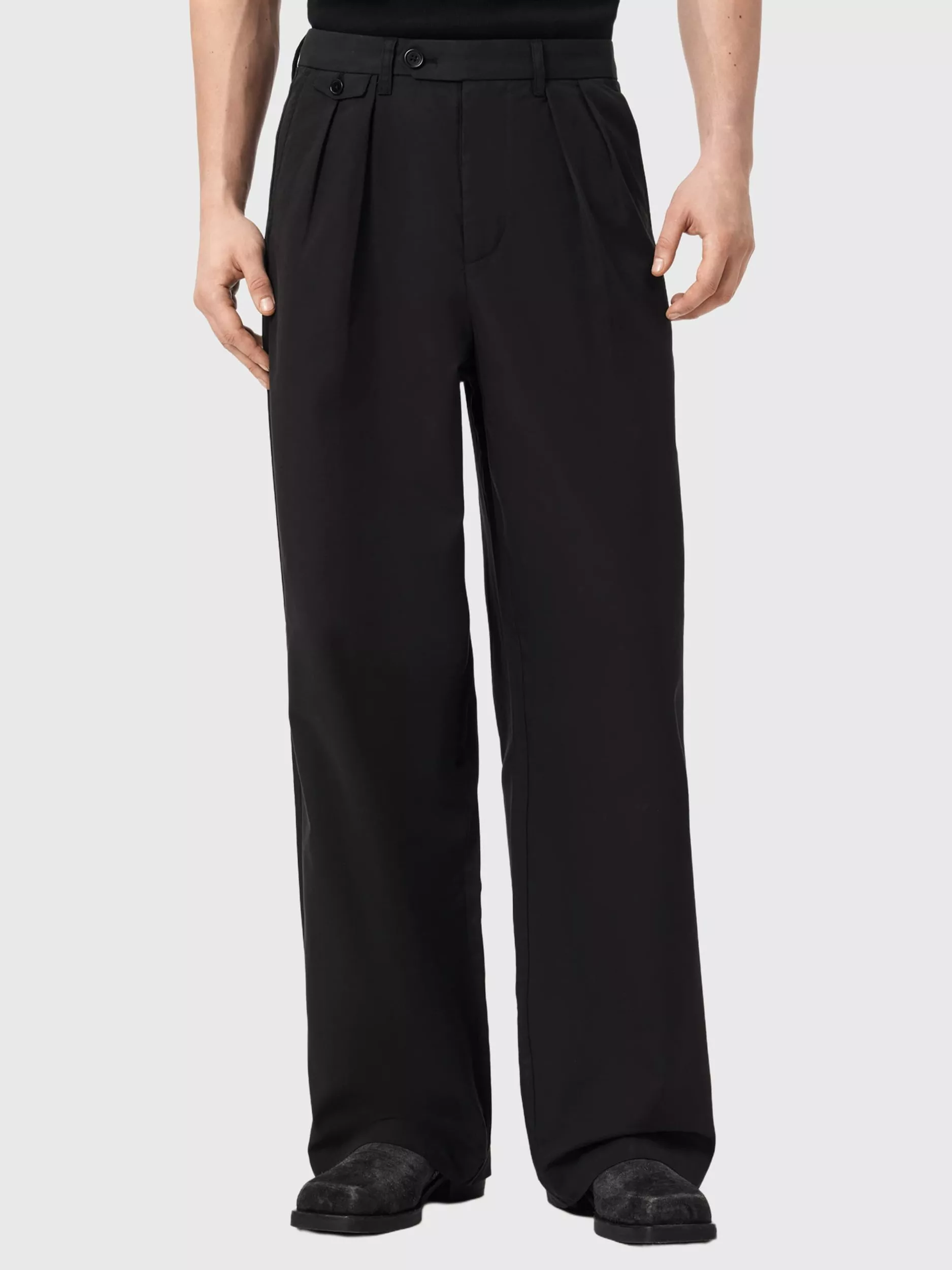 A pair of loose-fit chinos from AllSaints in a cotton blend with a zip and button fastening. Designed for comfort and versatility, they suit your everyday plans with ease.