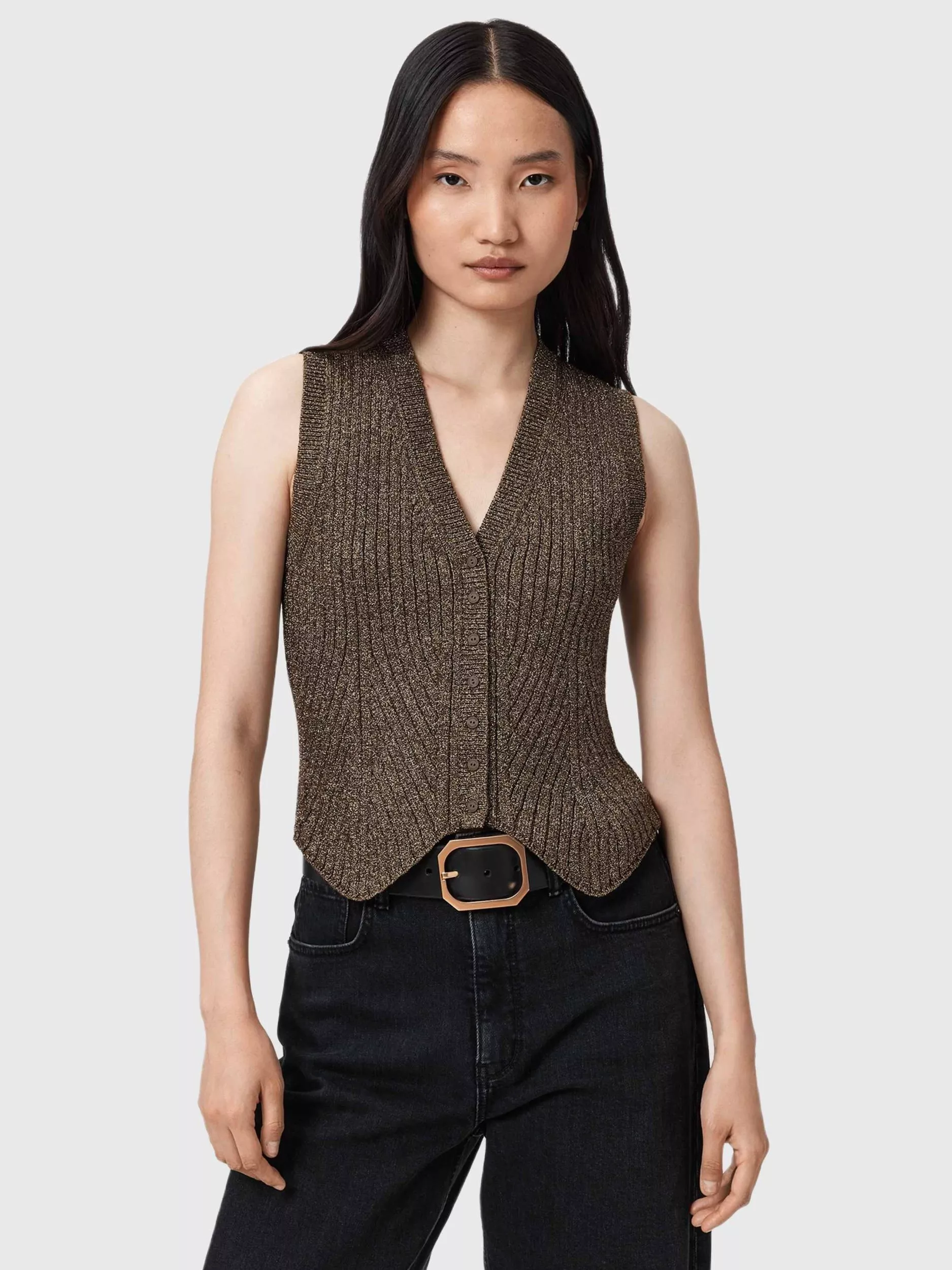 AllSaintsCruz Metallic V-Neck Waistcoat