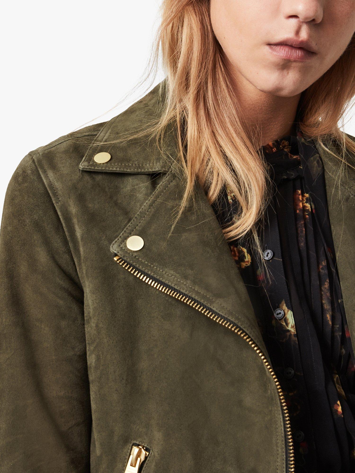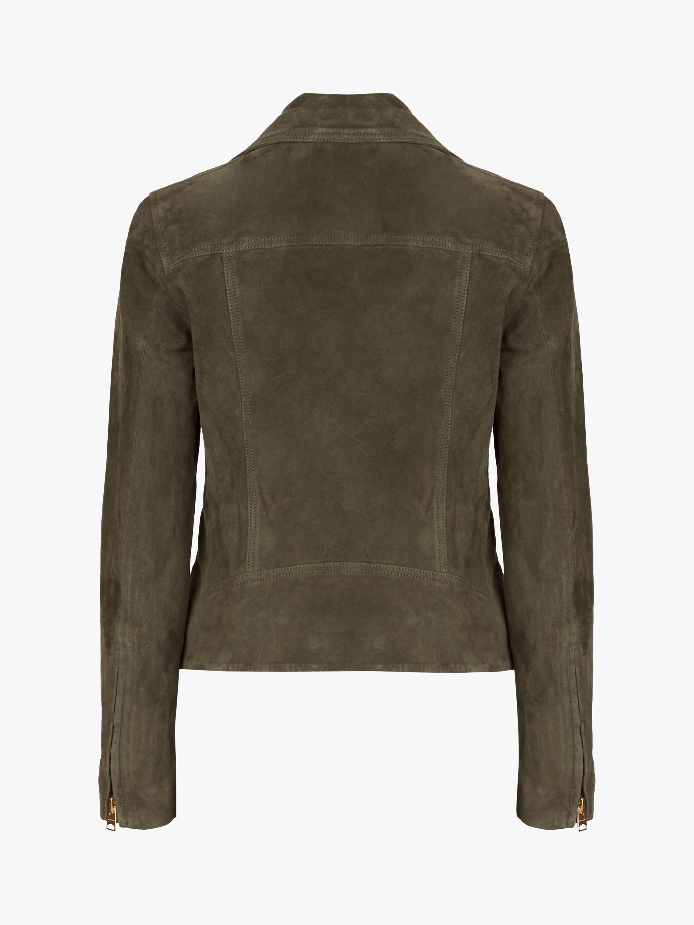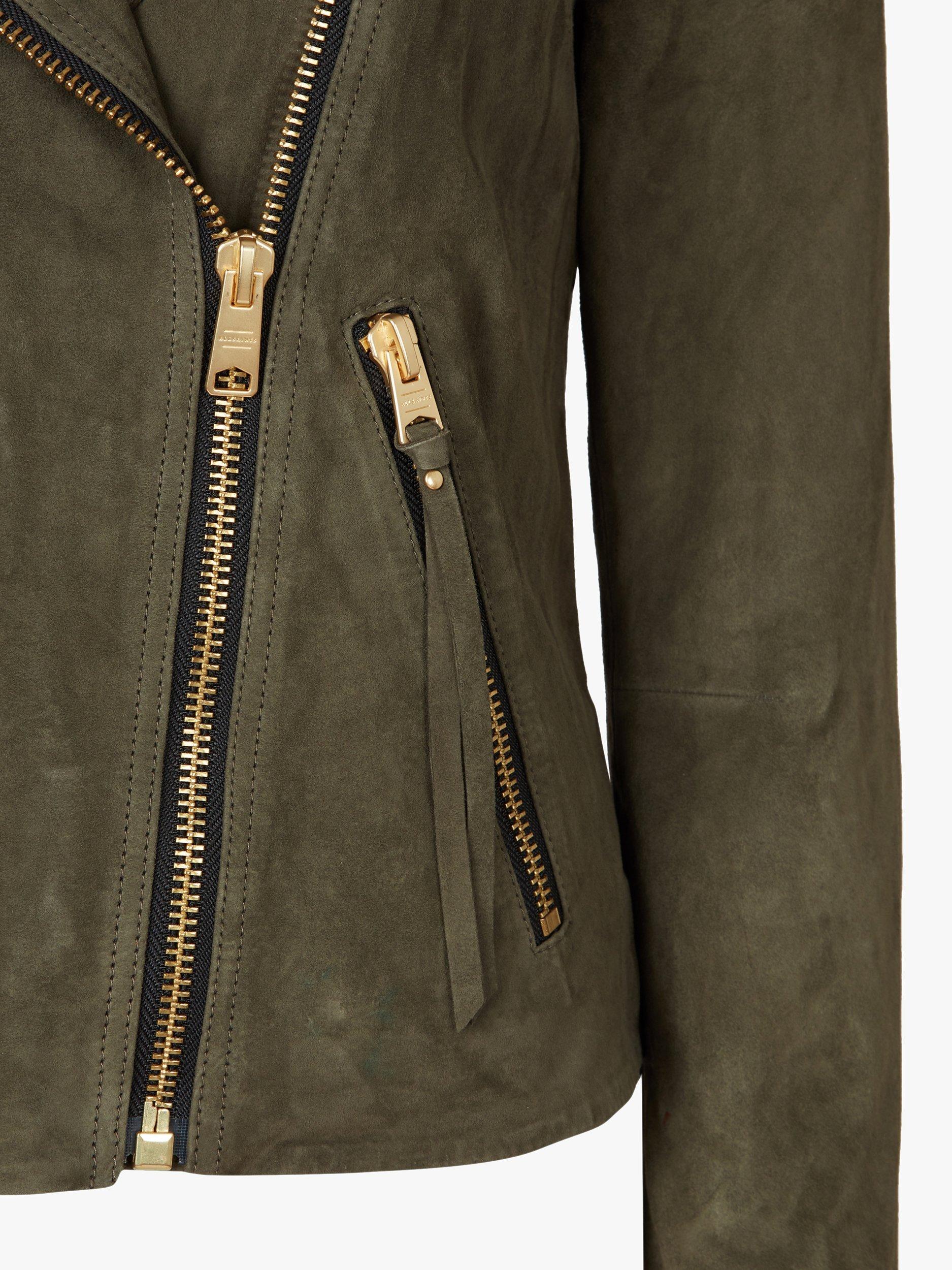 An update on your favourite. It's the Dalby. But different. In a perennially sleek biker design, this biker is crafted from pure suede and boasts full lining for optimum comfort. With a feminine, slim-fitting shape, it features a notched collar, zipped cuffs and tassel detailing on the zipped pockets. Layer over a fit and flare dress and team with ankle boots for an edgy daytime ensemble.