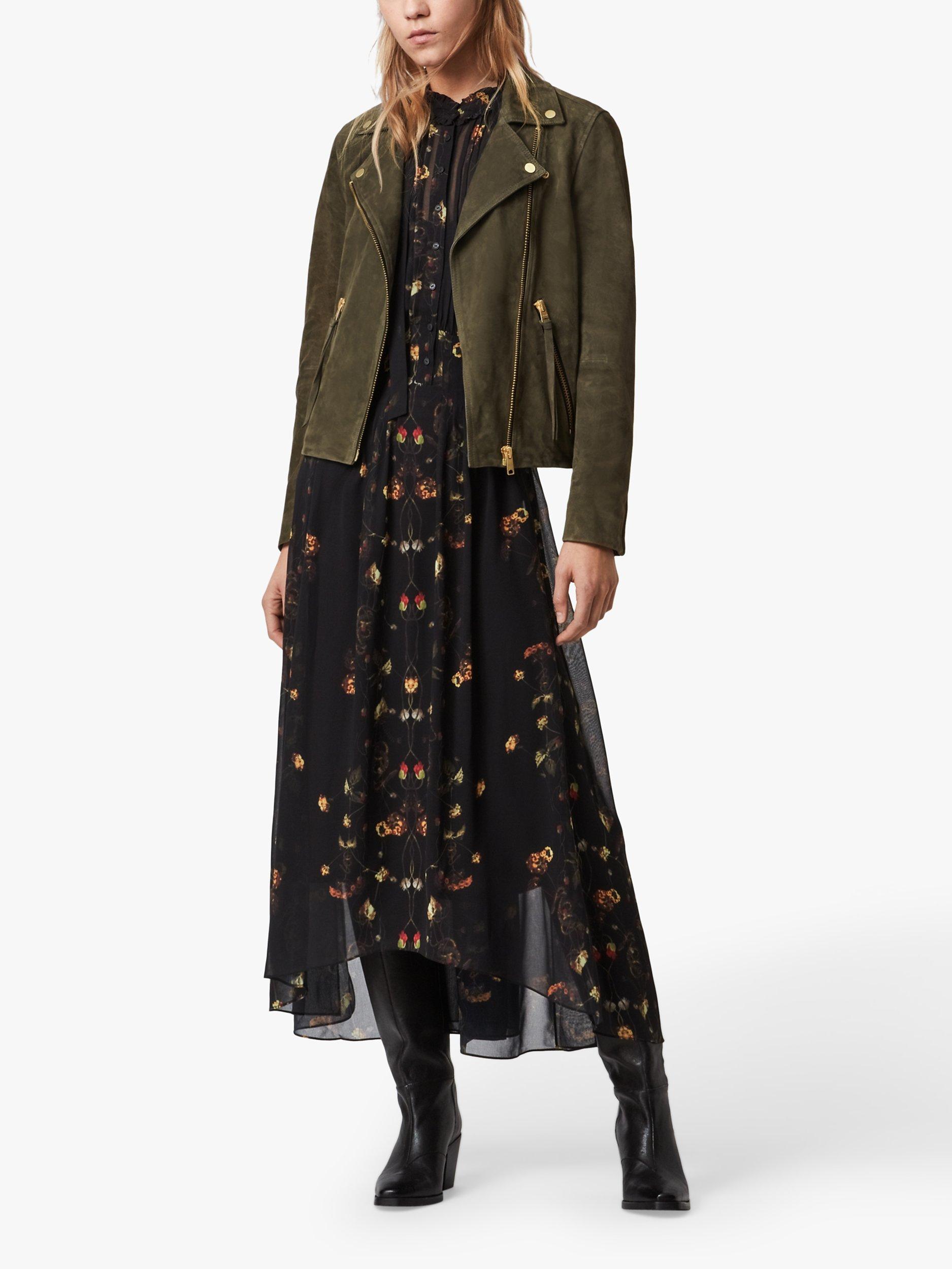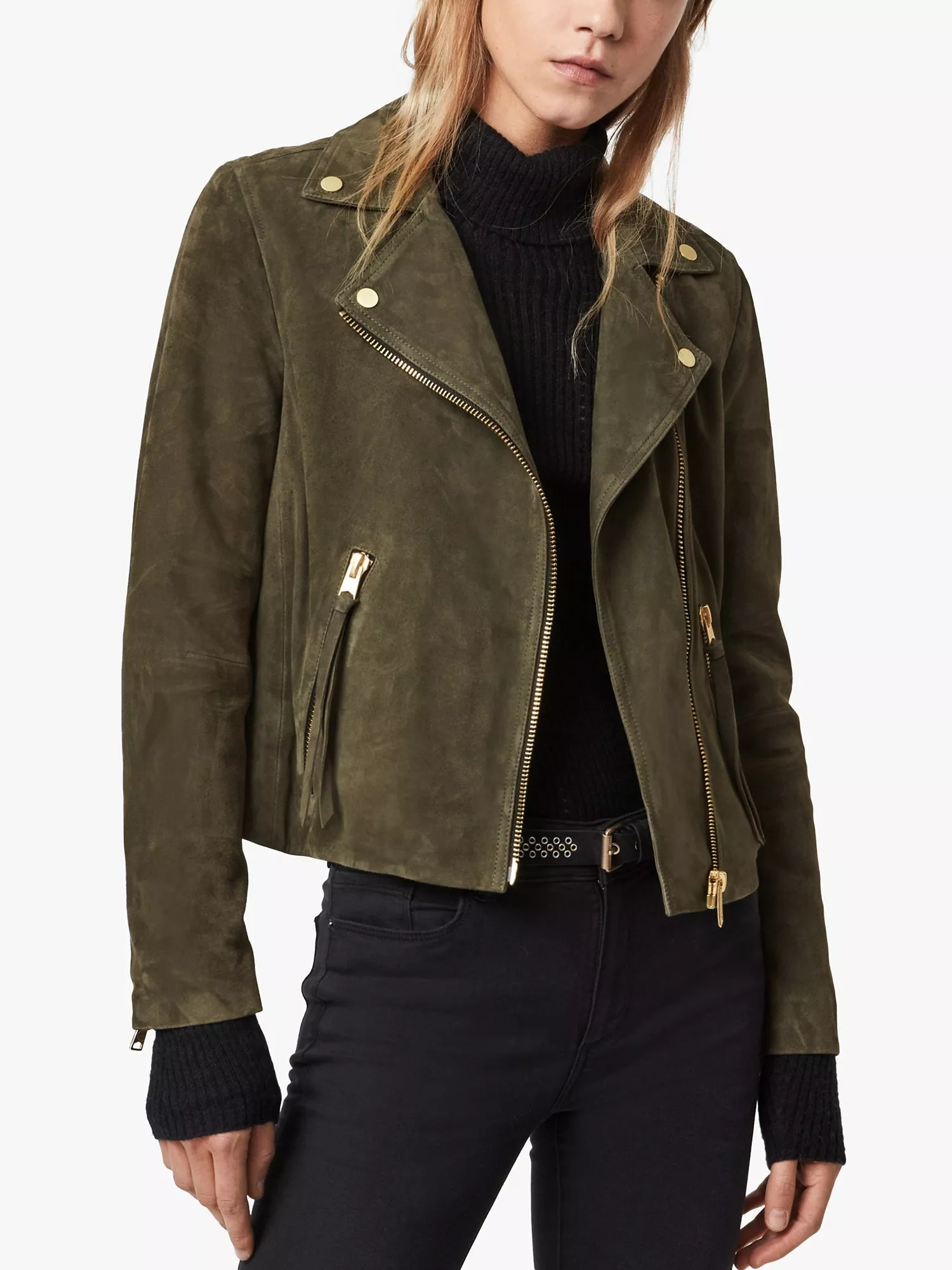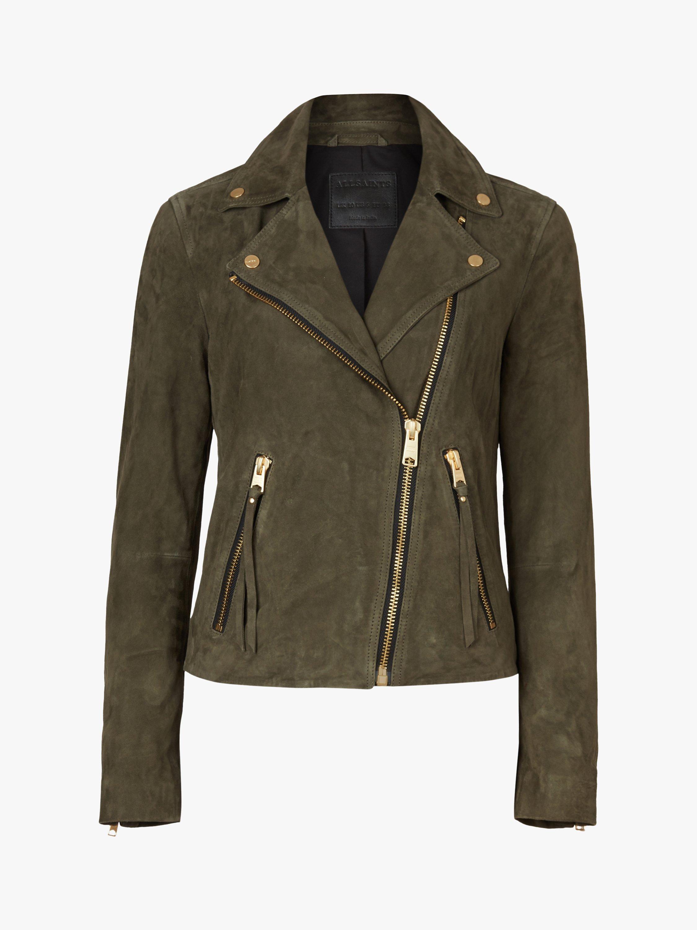 An update on your favourite. It's the Dalby. But different. In a perennially sleek biker design, this biker is crafted from pure suede and boasts full lining for optimum comfort. With a feminine, slim-fitting shape, it features a notched collar, zipped cuffs and tassel detailing on the zipped pockets. Layer over a fit and flare dress and team with ankle boots for an edgy daytime ensemble.