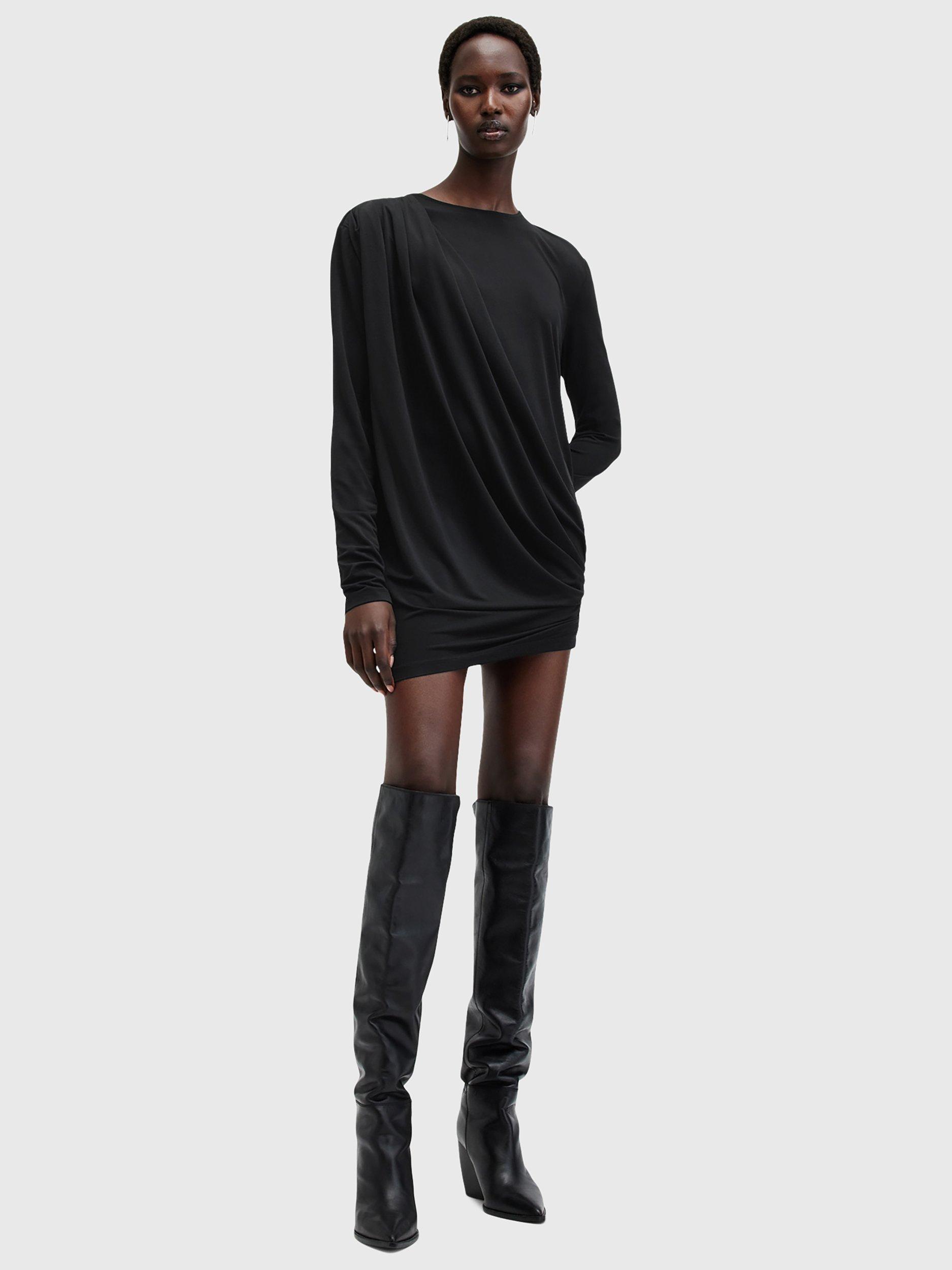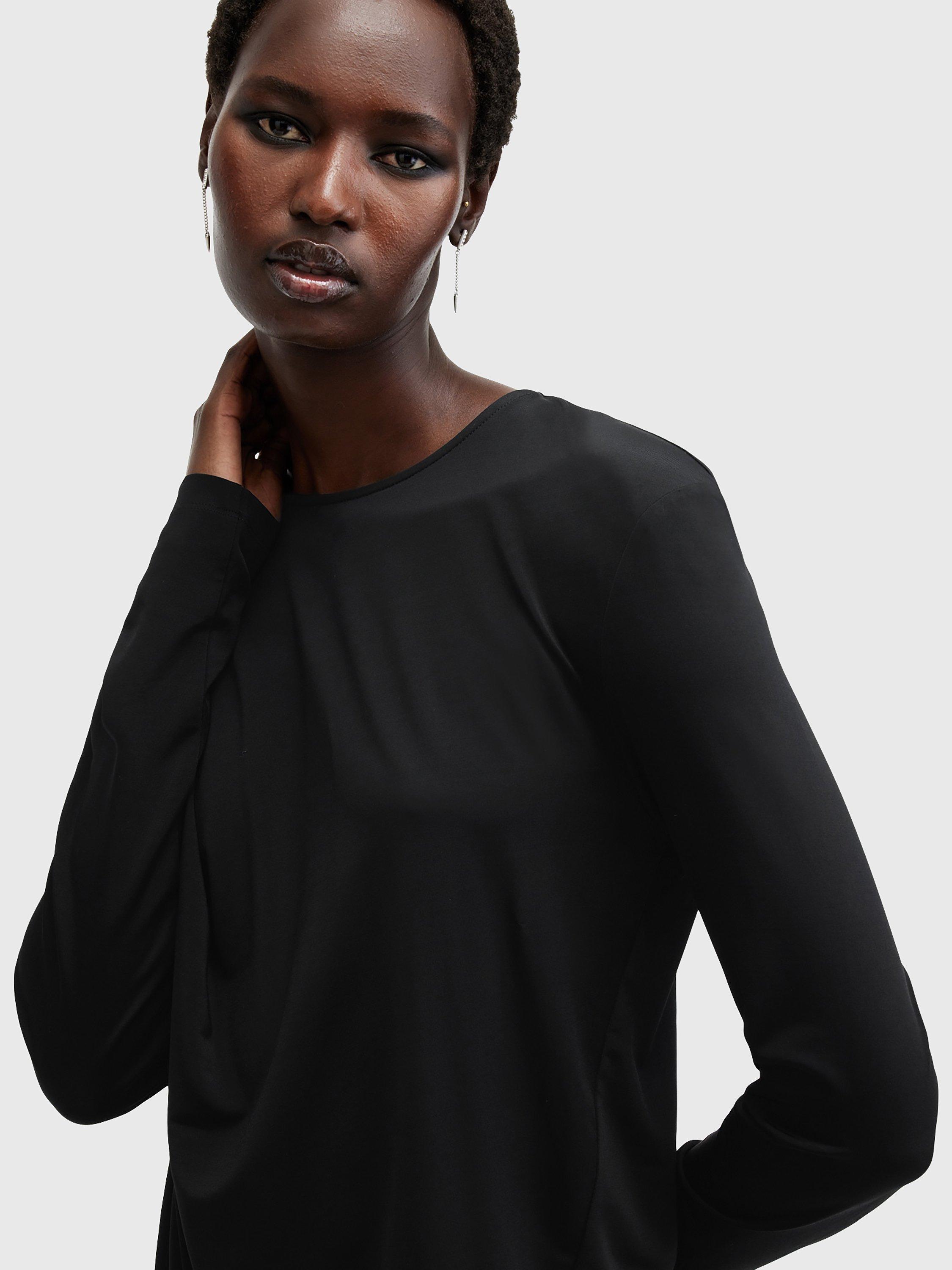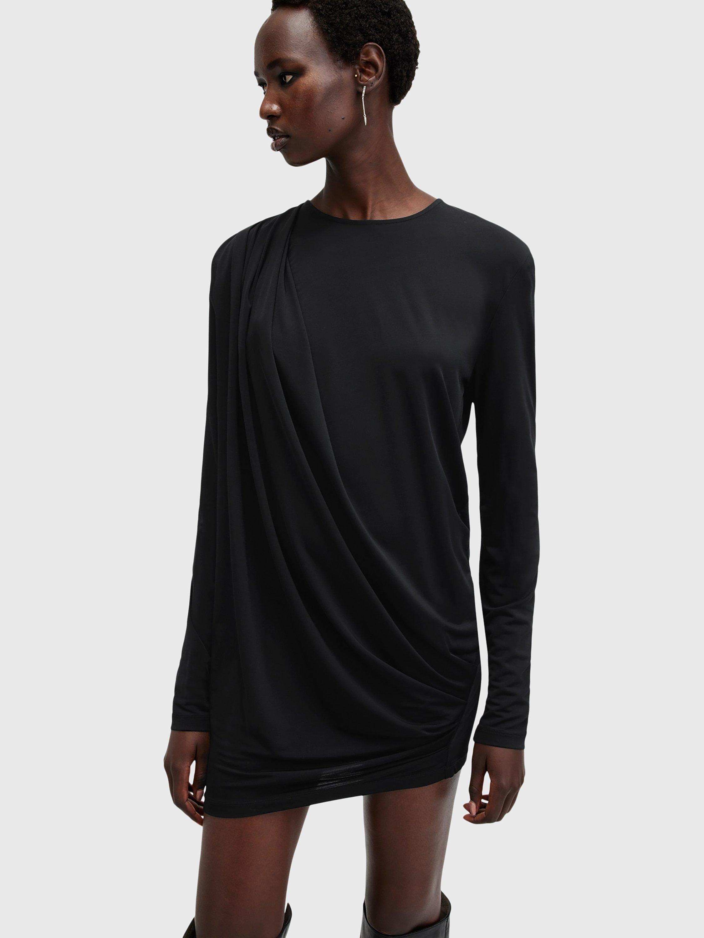 Beautifully draping down, this thigh-grazing dress from AllSaints is made from a liquid-like viscose blend. With a fuss-free round neckline and full-length sleeves, this style comes without pattern or print so you can set your imagination and creativity free when it comes to accessorising.