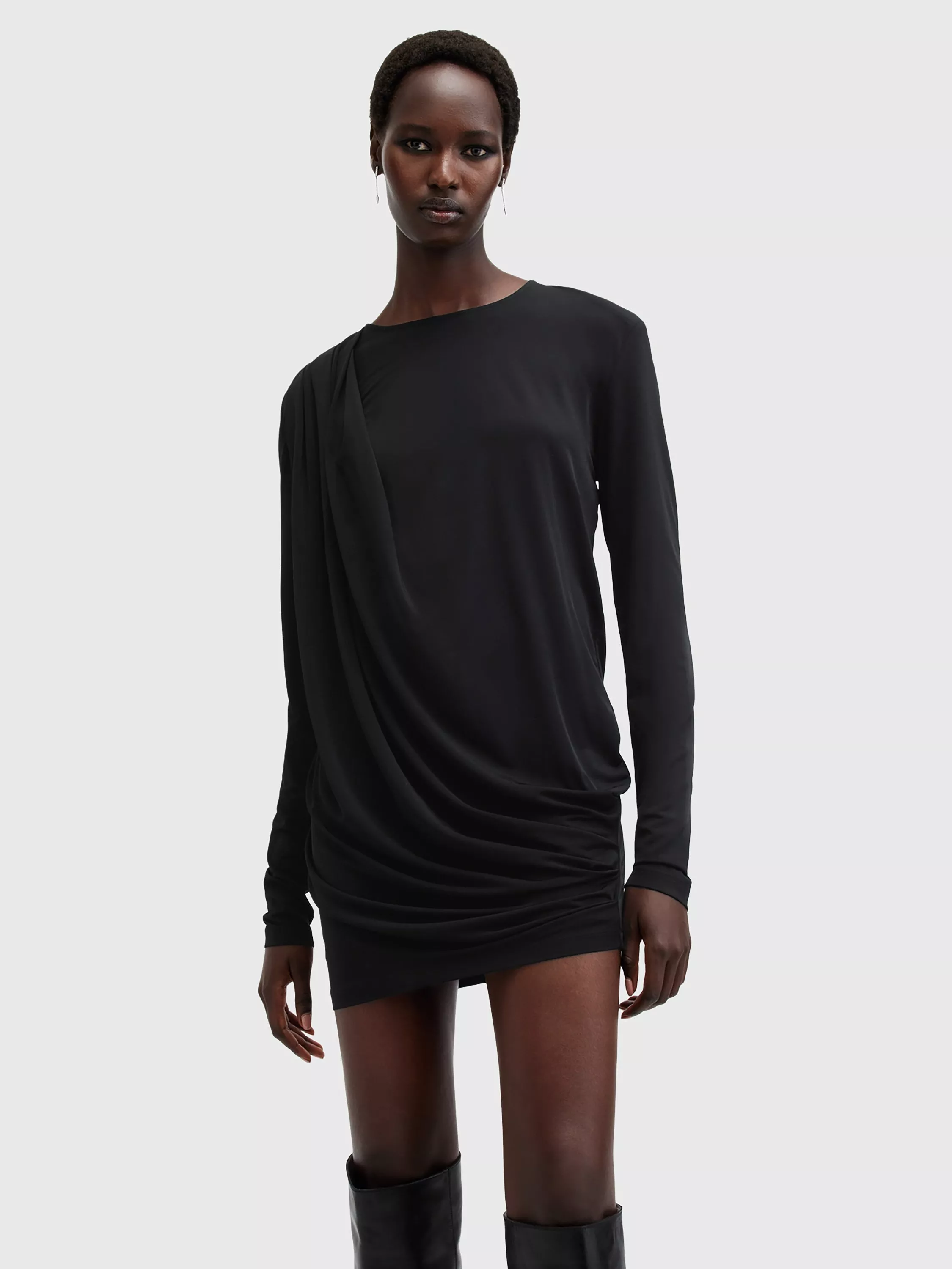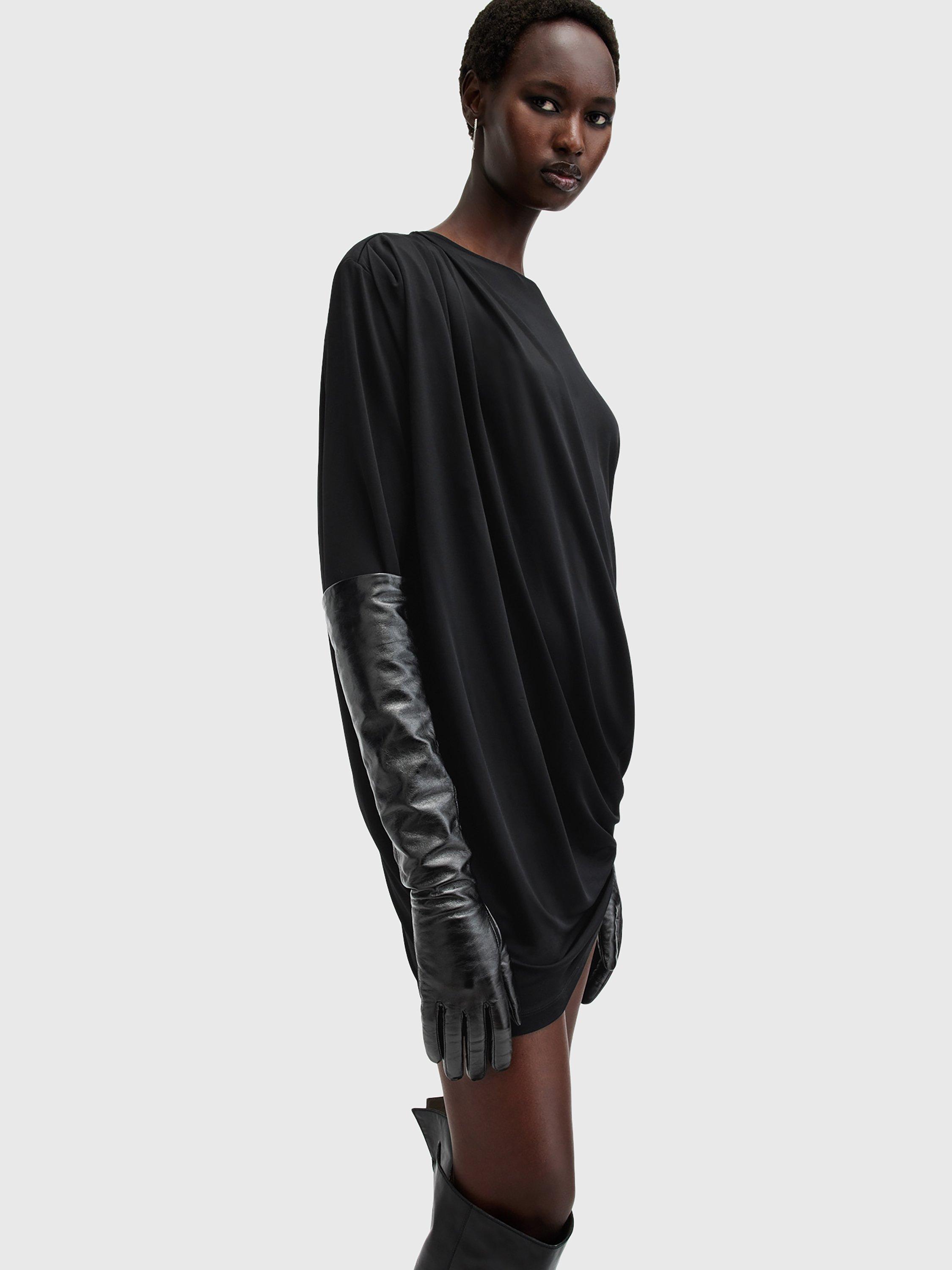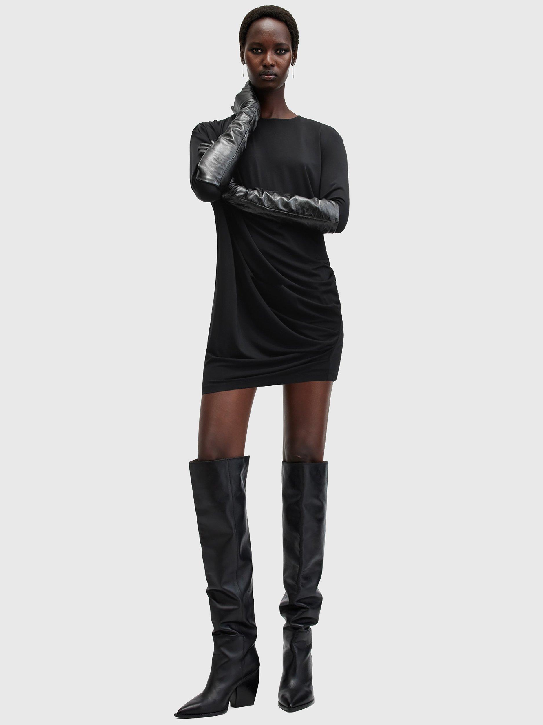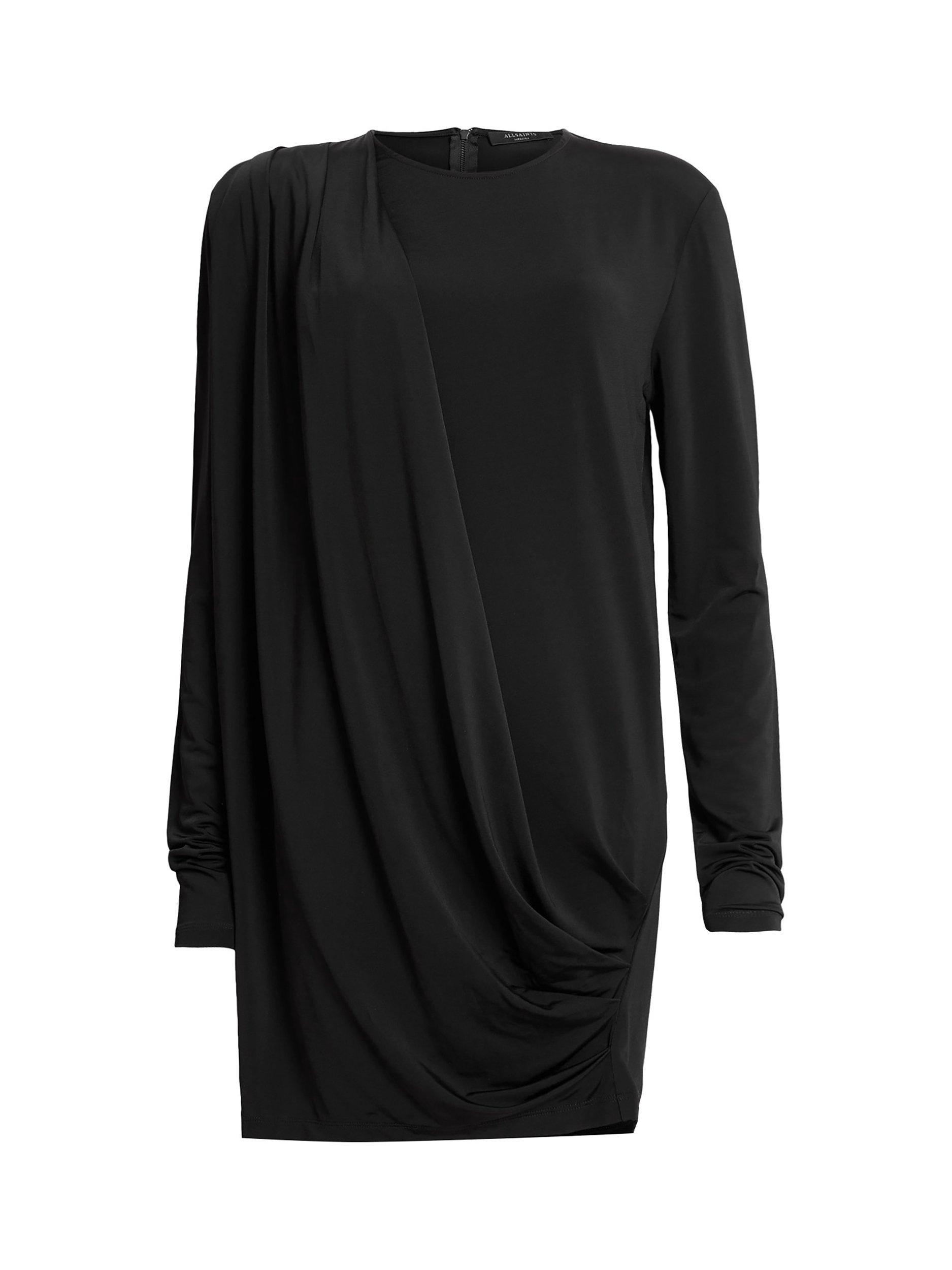 Beautifully draping down, this thigh-grazing dress from AllSaints is made from a liquid-like viscose blend. With a fuss-free round neckline and full-length sleeves, this style comes without pattern or print so you can set your imagination and creativity free when it comes to accessorising.