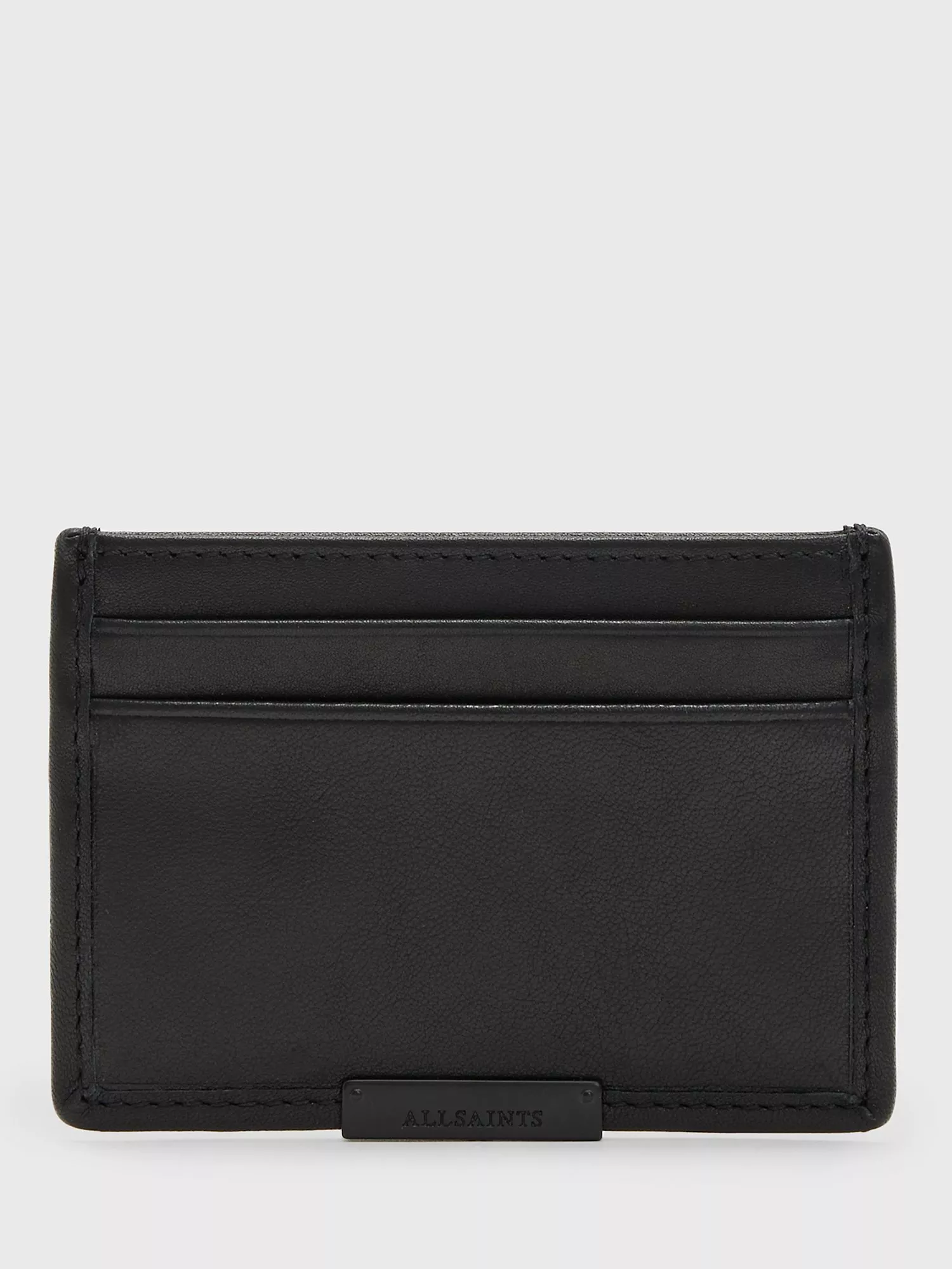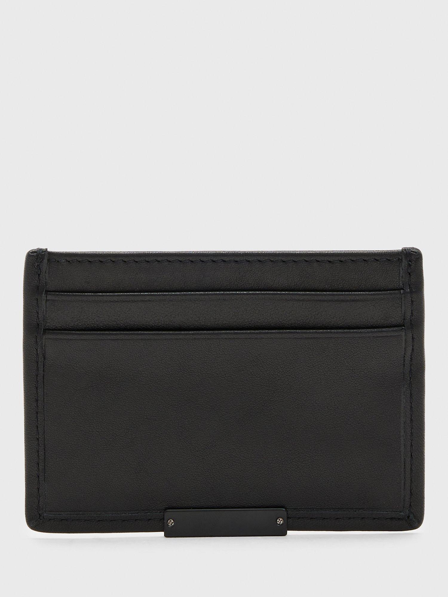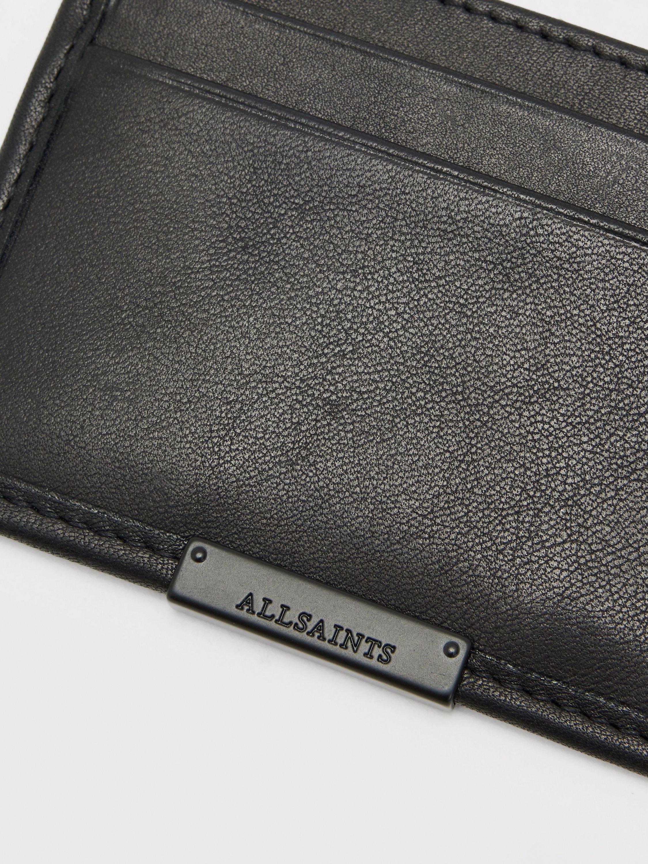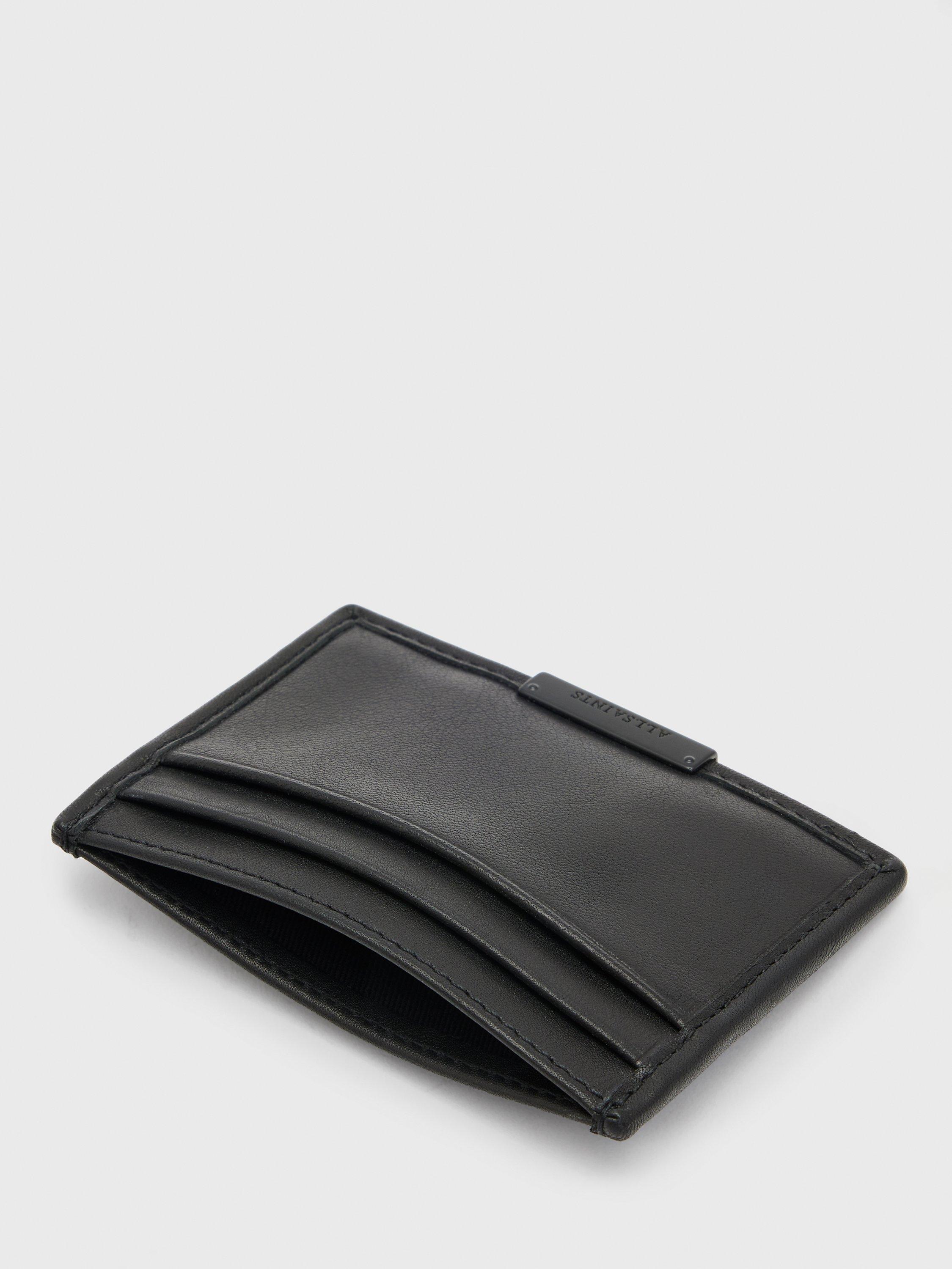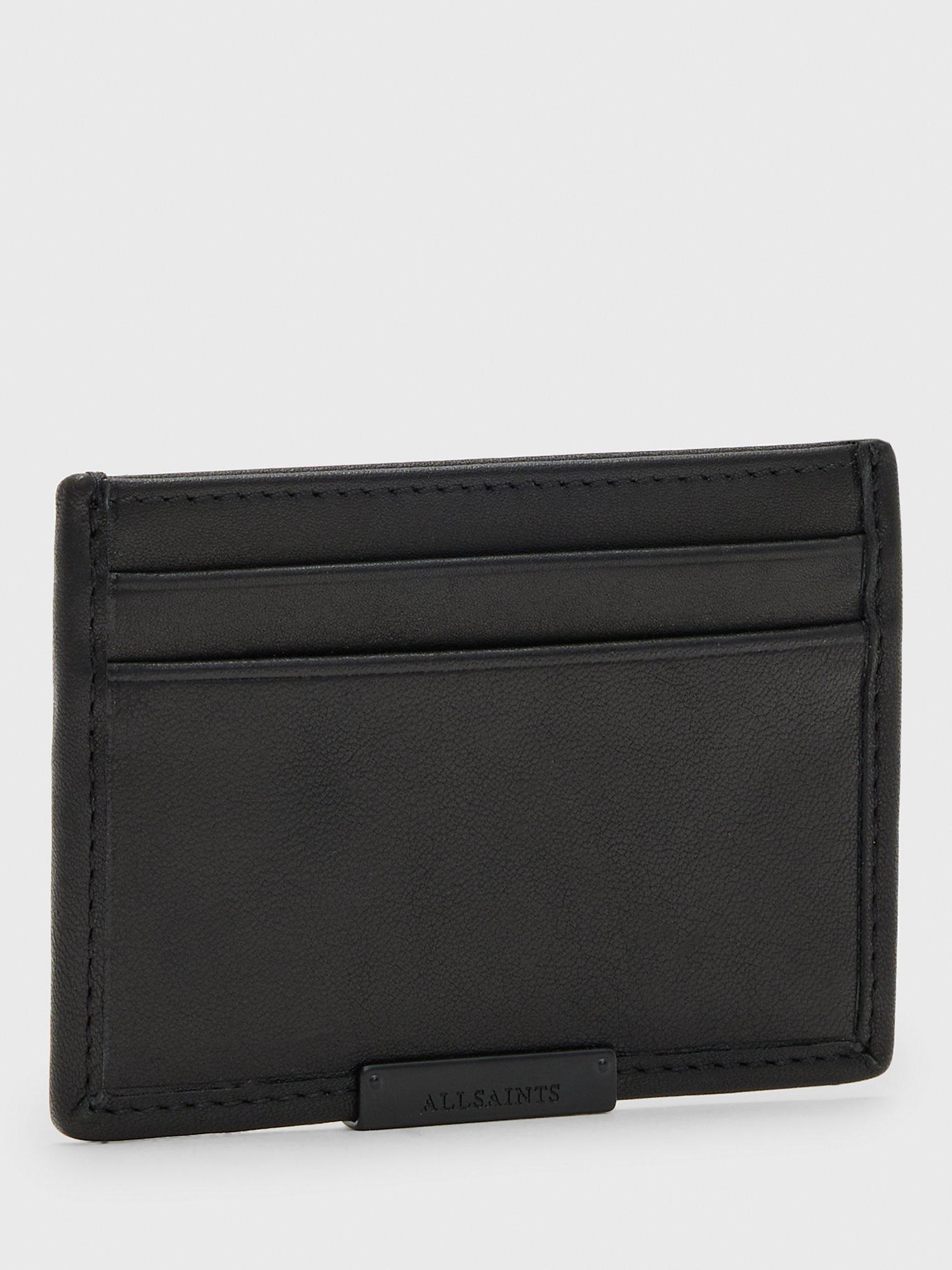 The ideal minimalist cardholder, the Dove from AllSaints, is crafted from soft black leather featuring a branded metal panel. It features five slip pockets, a note slot, card slots front and back, and is finished with a branded plaque.