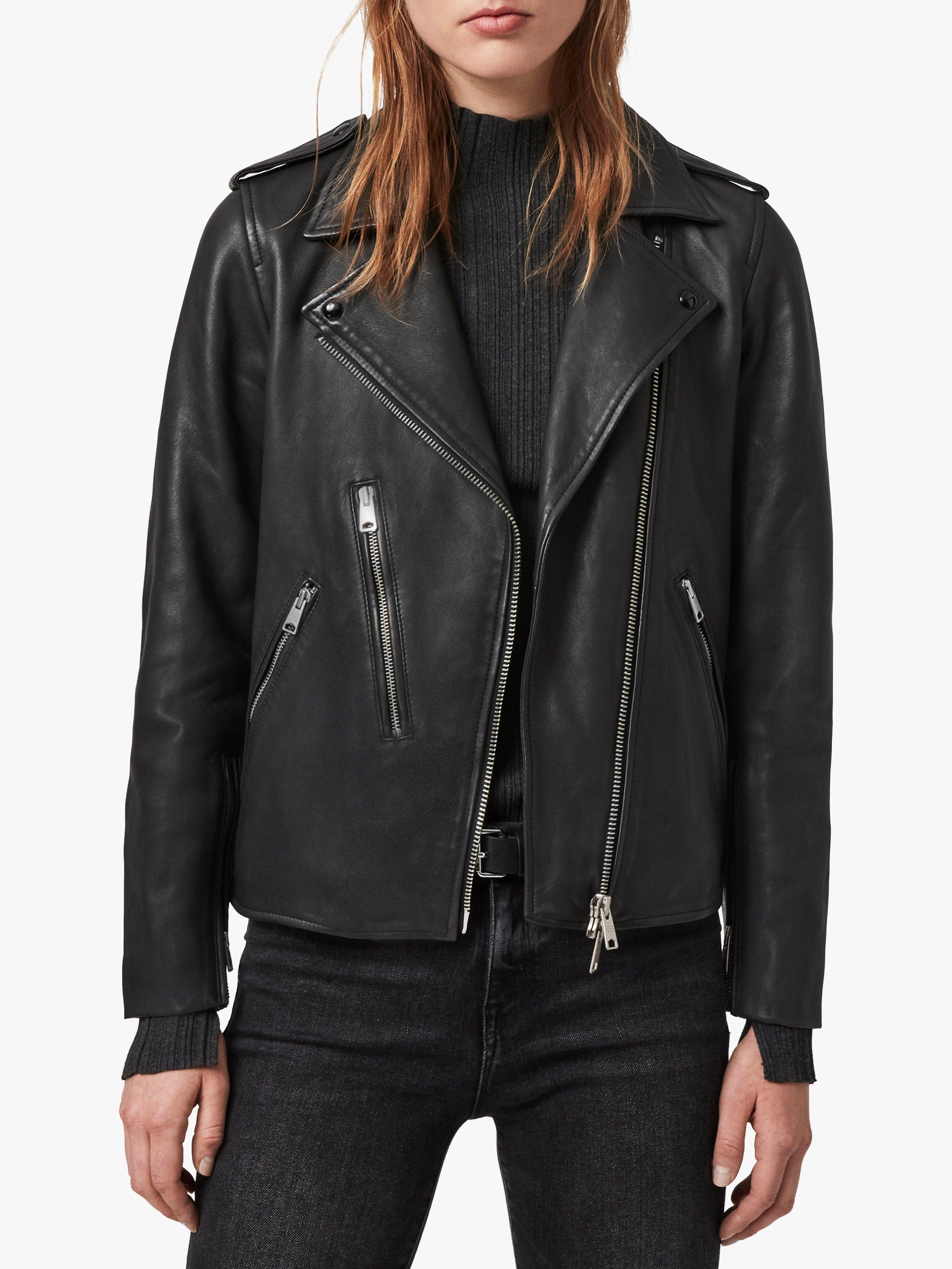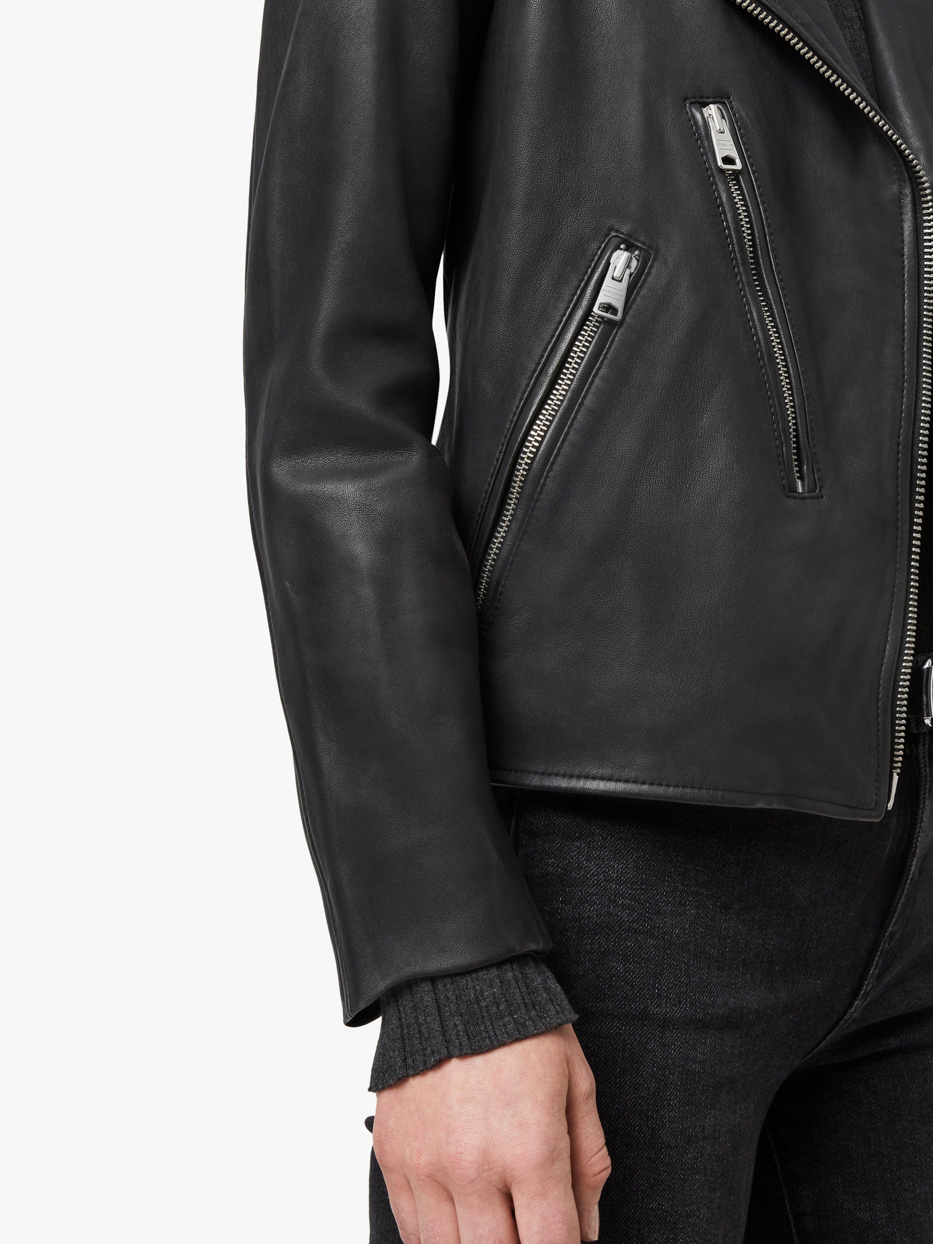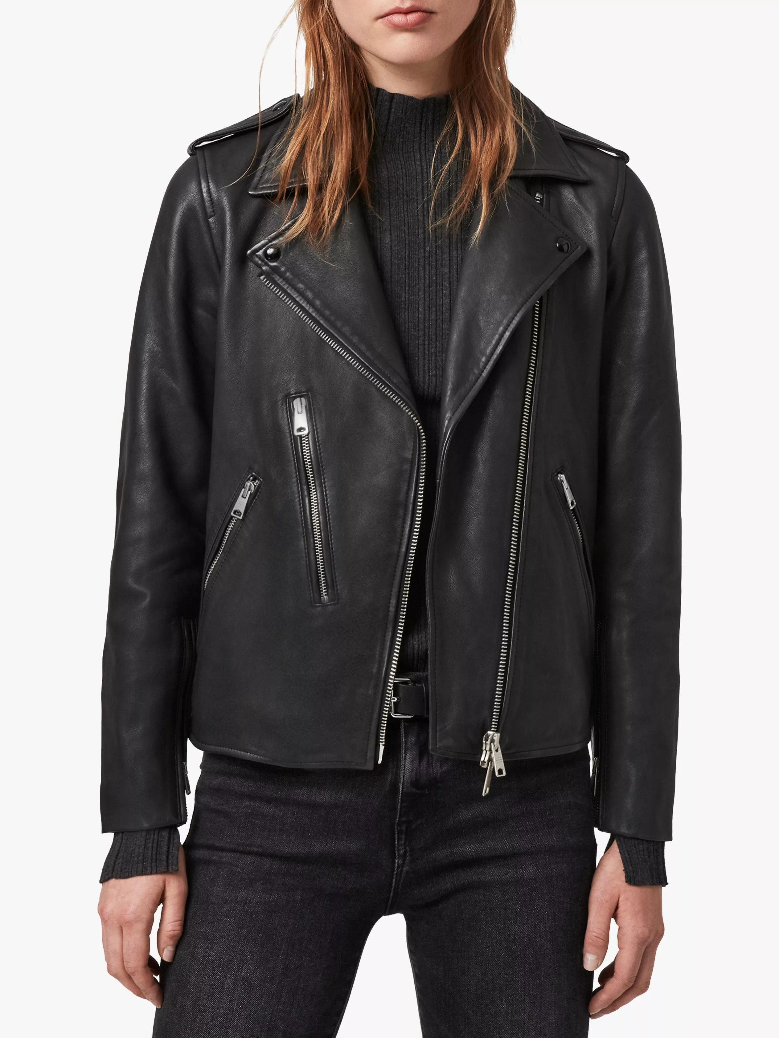 Known for their legendary leather designs, there isn't much AllSaints doesn't know about a good biker. Intrinsic to their heritage, Elva's no-fuss detailing of shoulder epaulettes, zipped cuffs and a regular fit takes inspiration from their best-selling Dalby and Balfern to bring to life their most sleek jacket yet.