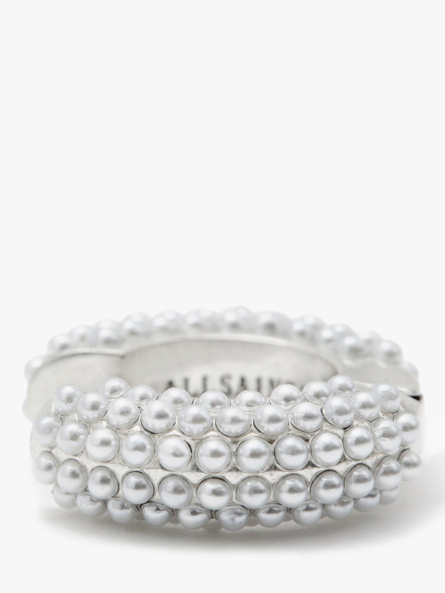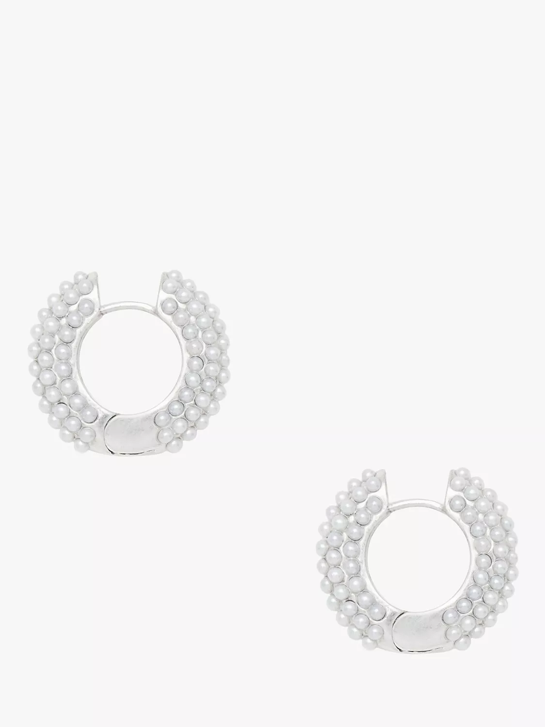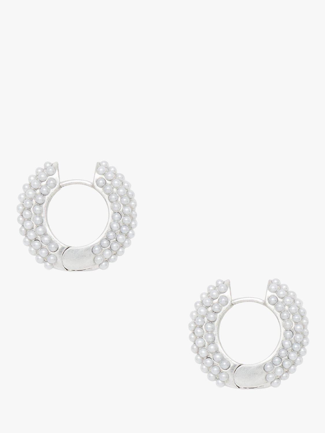 AllSaintsFaux Pearl Chunky Huggie Hoop, Warm Silver