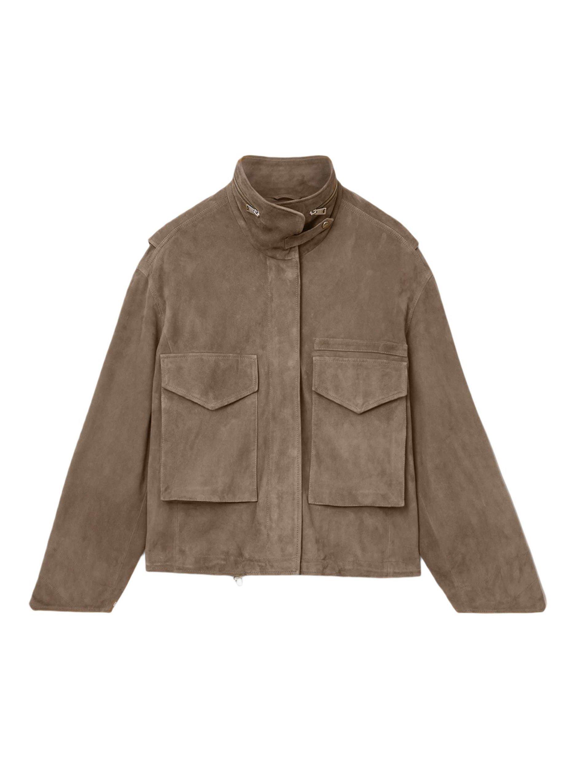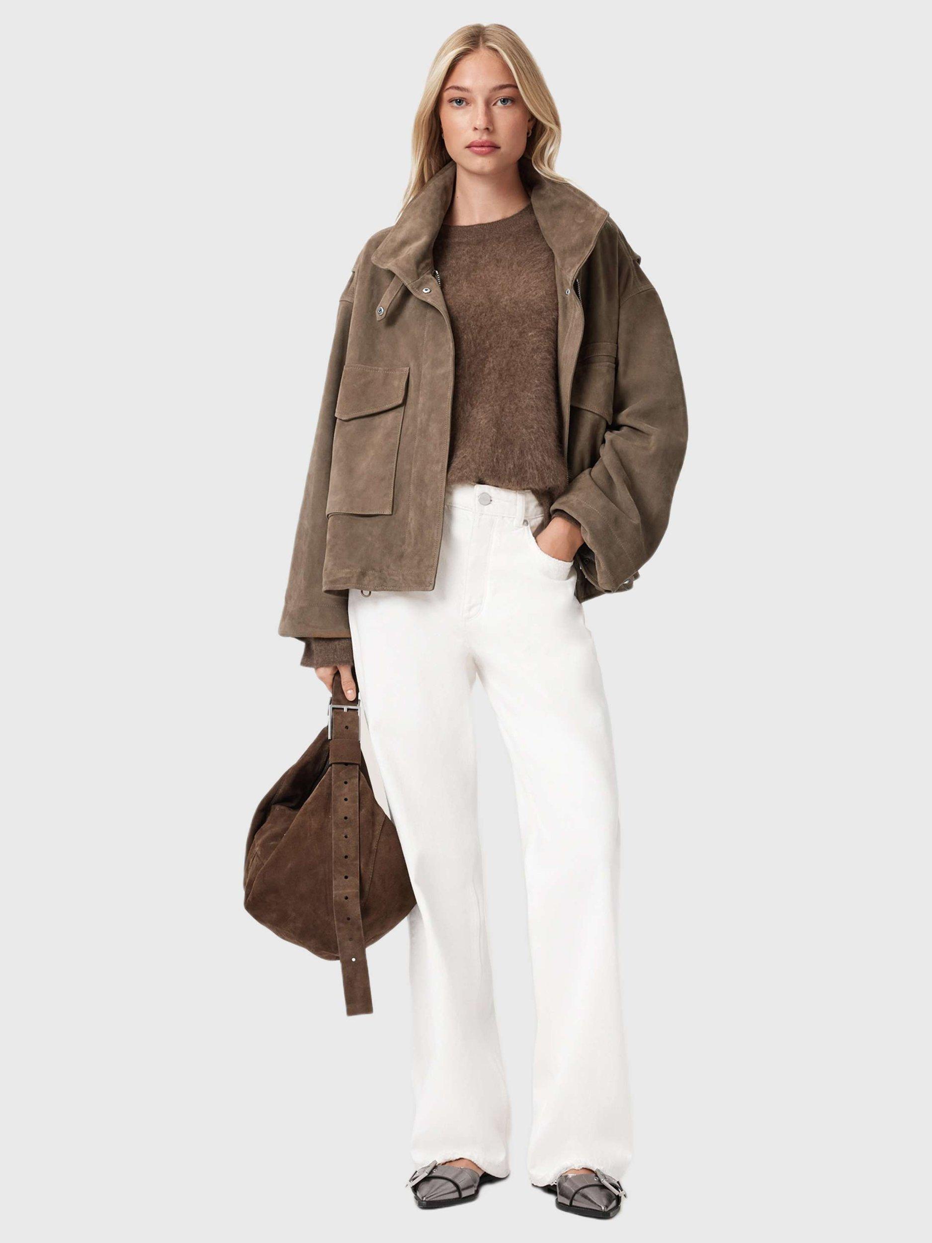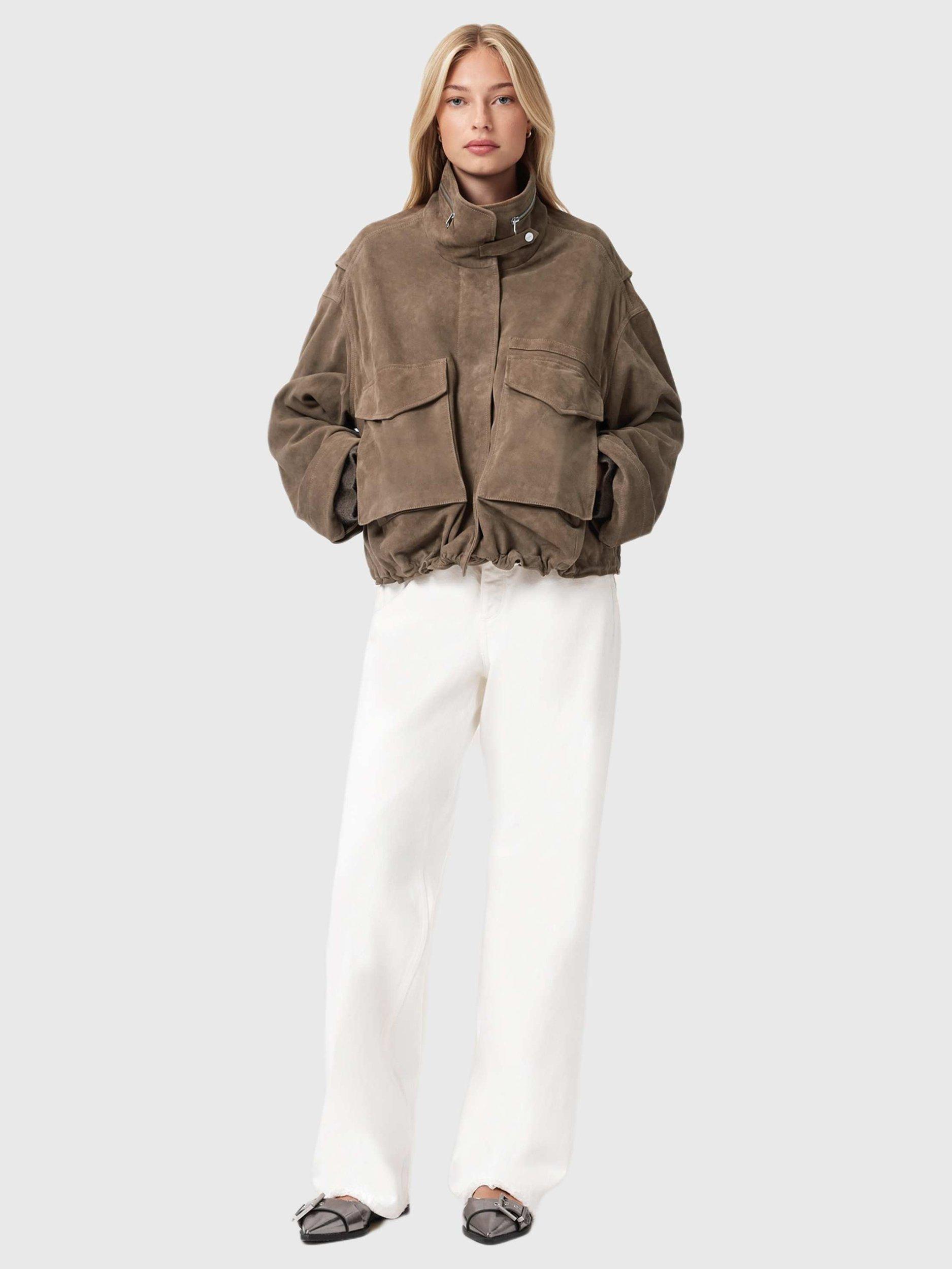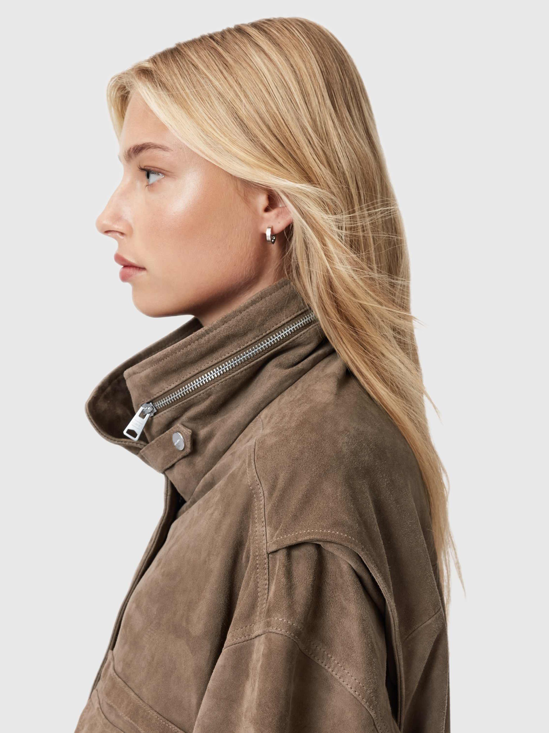 AllSaintsFunnel Neck Suede Jacket, Brown