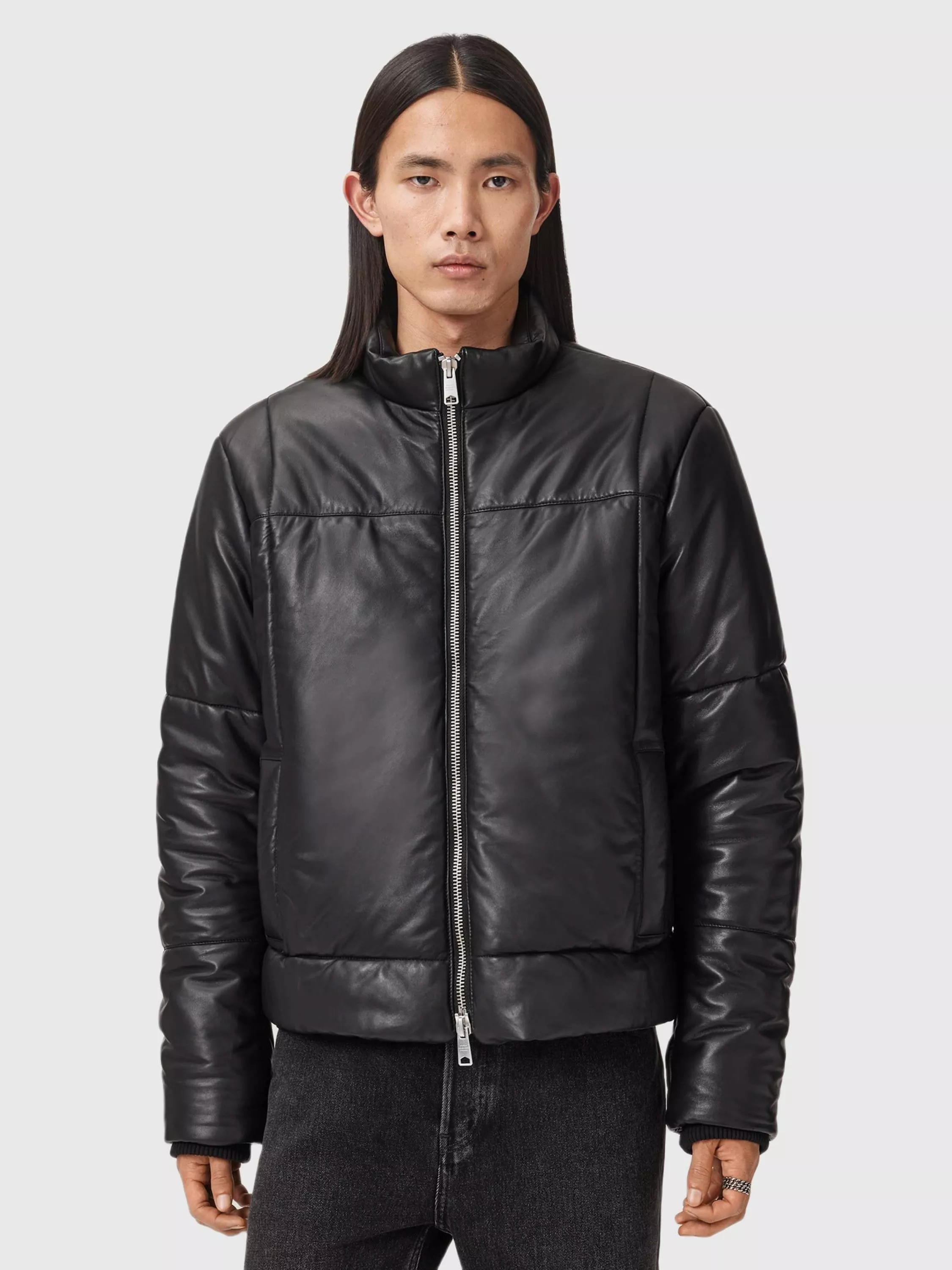 This leather puffer jacket combines sharp design with clever details, keeping you comfortable and confident all day. Enjoy warmth and ease with a regular fit and practical zip fastening. Layer up for any occasion.
