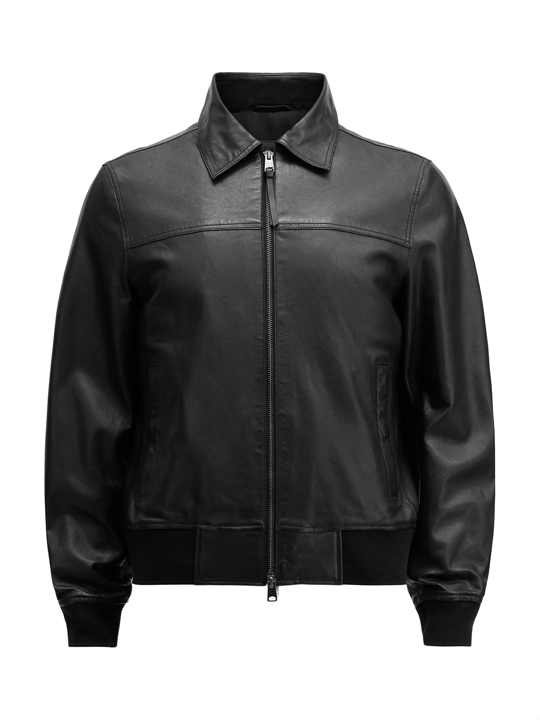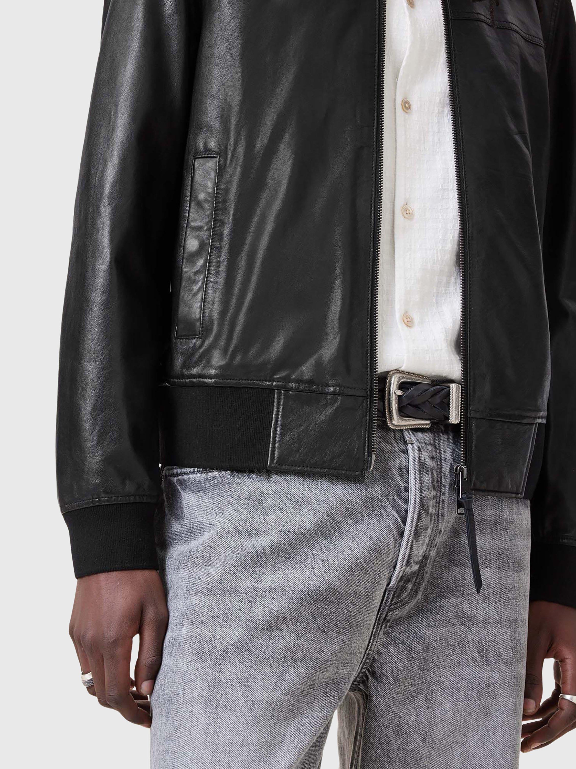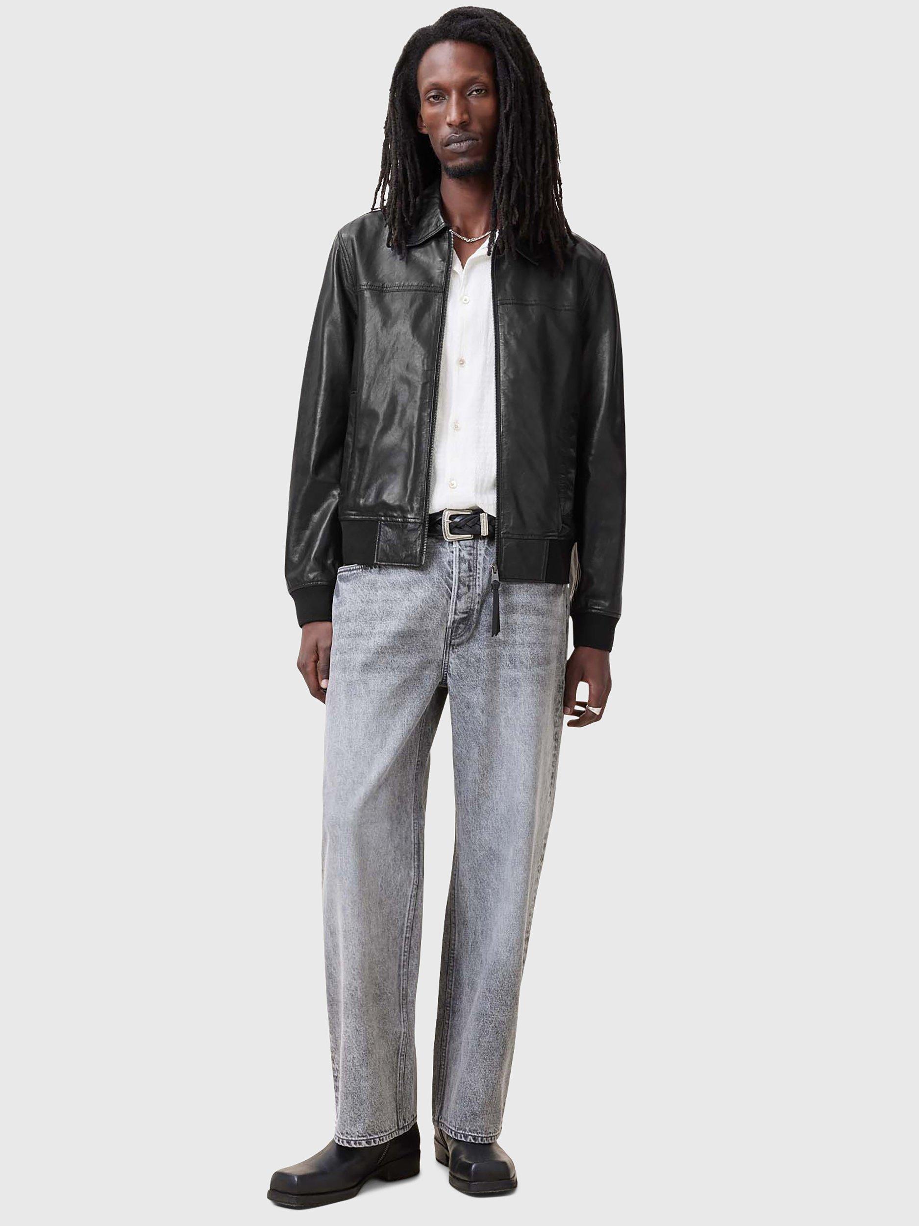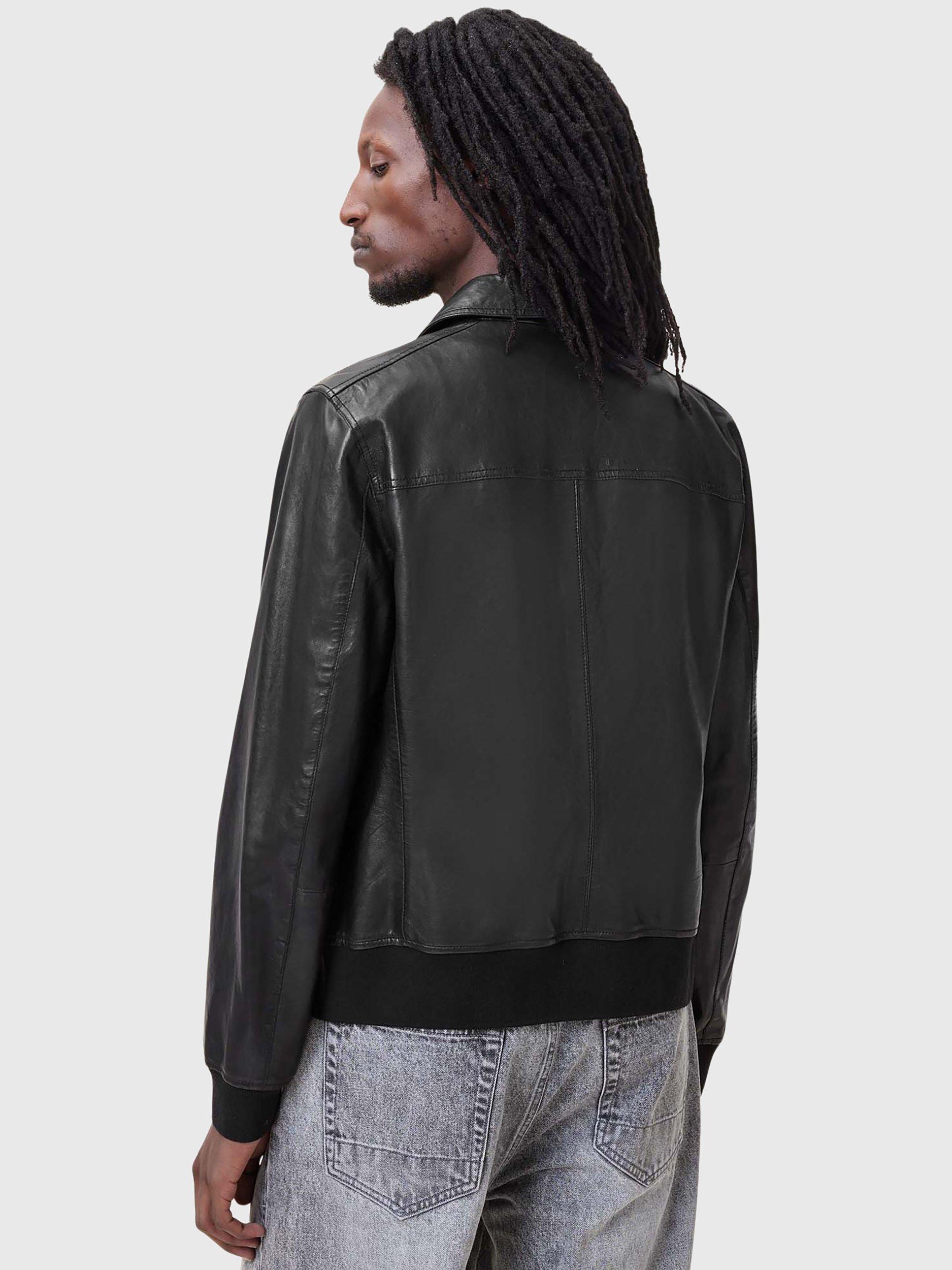 Bring depth to your outerwear collection with urban styles like this leather jacket from AllSaints. Cut to a slim-fitting silhouette from premium lamb leather, it features a collar neck, zip front and a full lining with a stretchy ribbed cuffs and hem.
