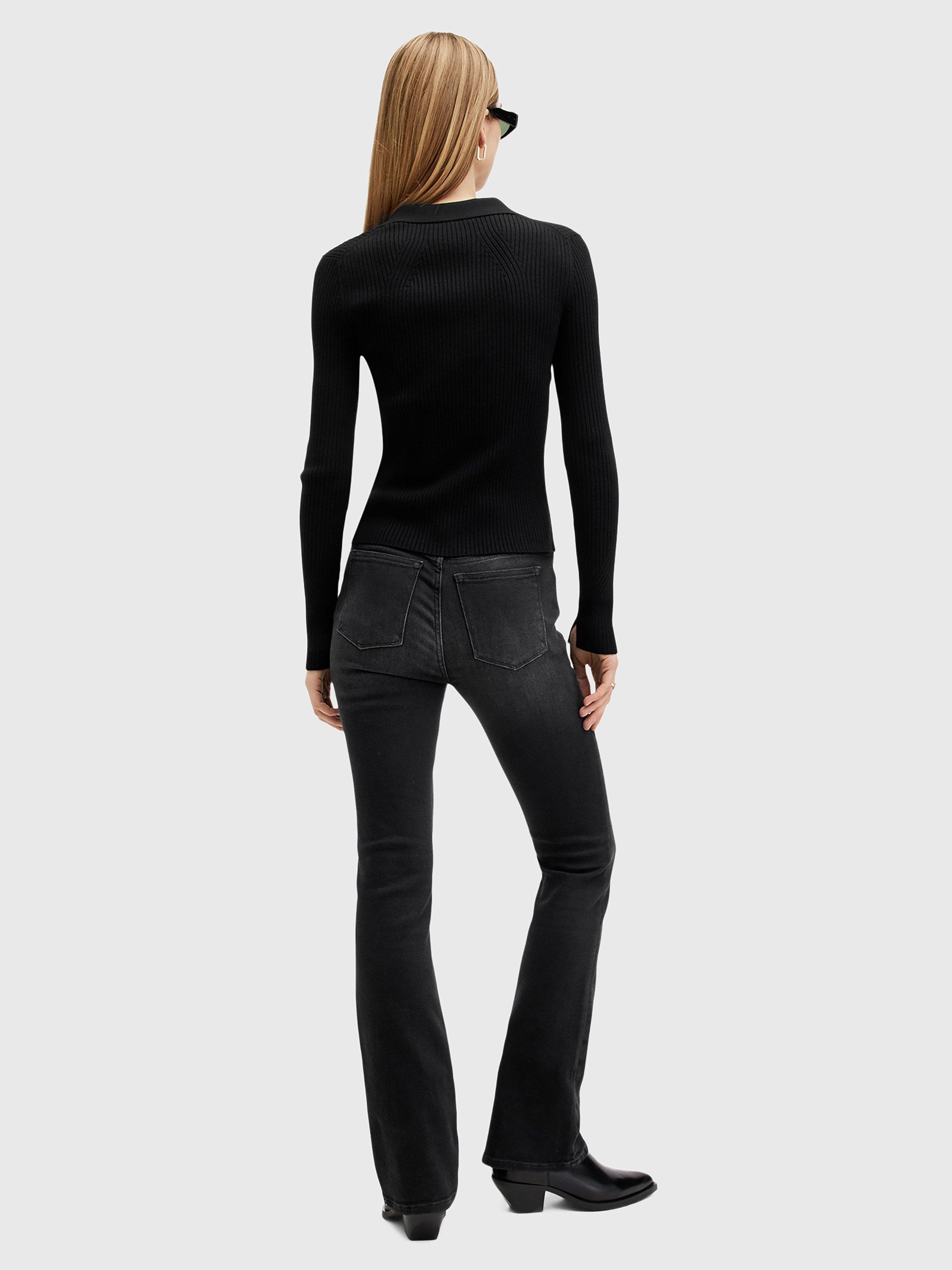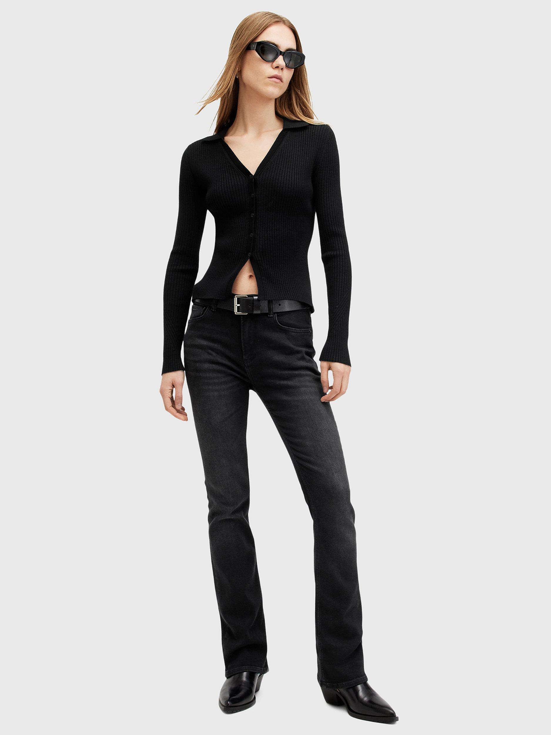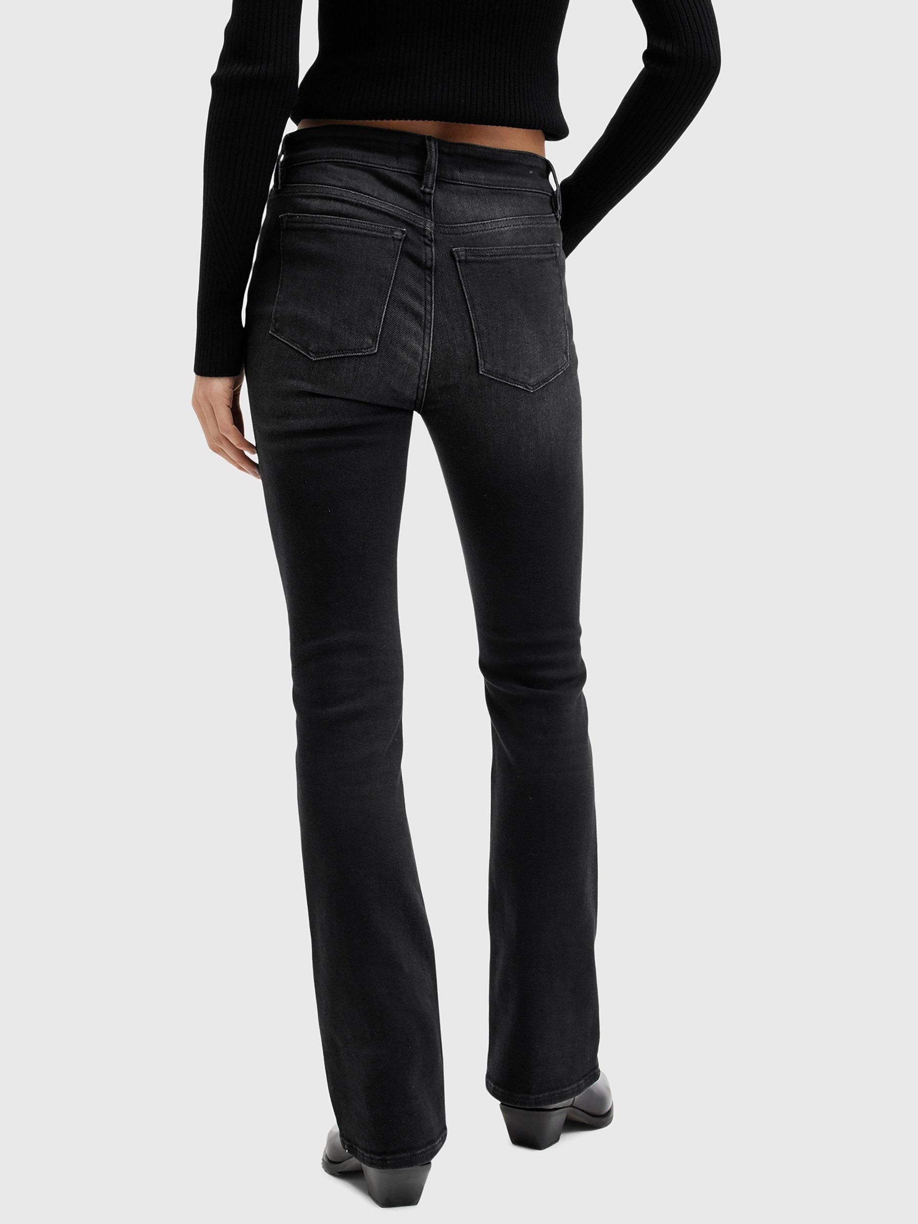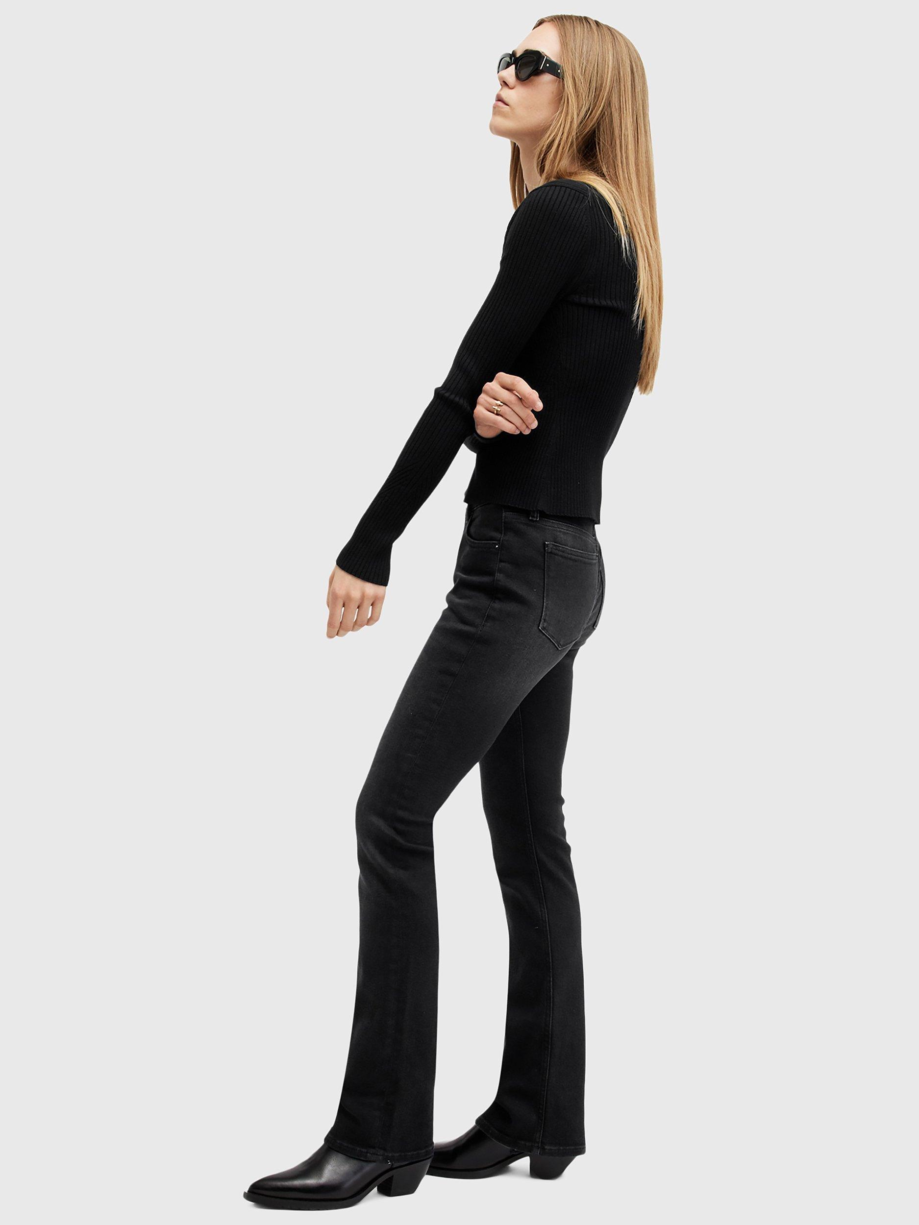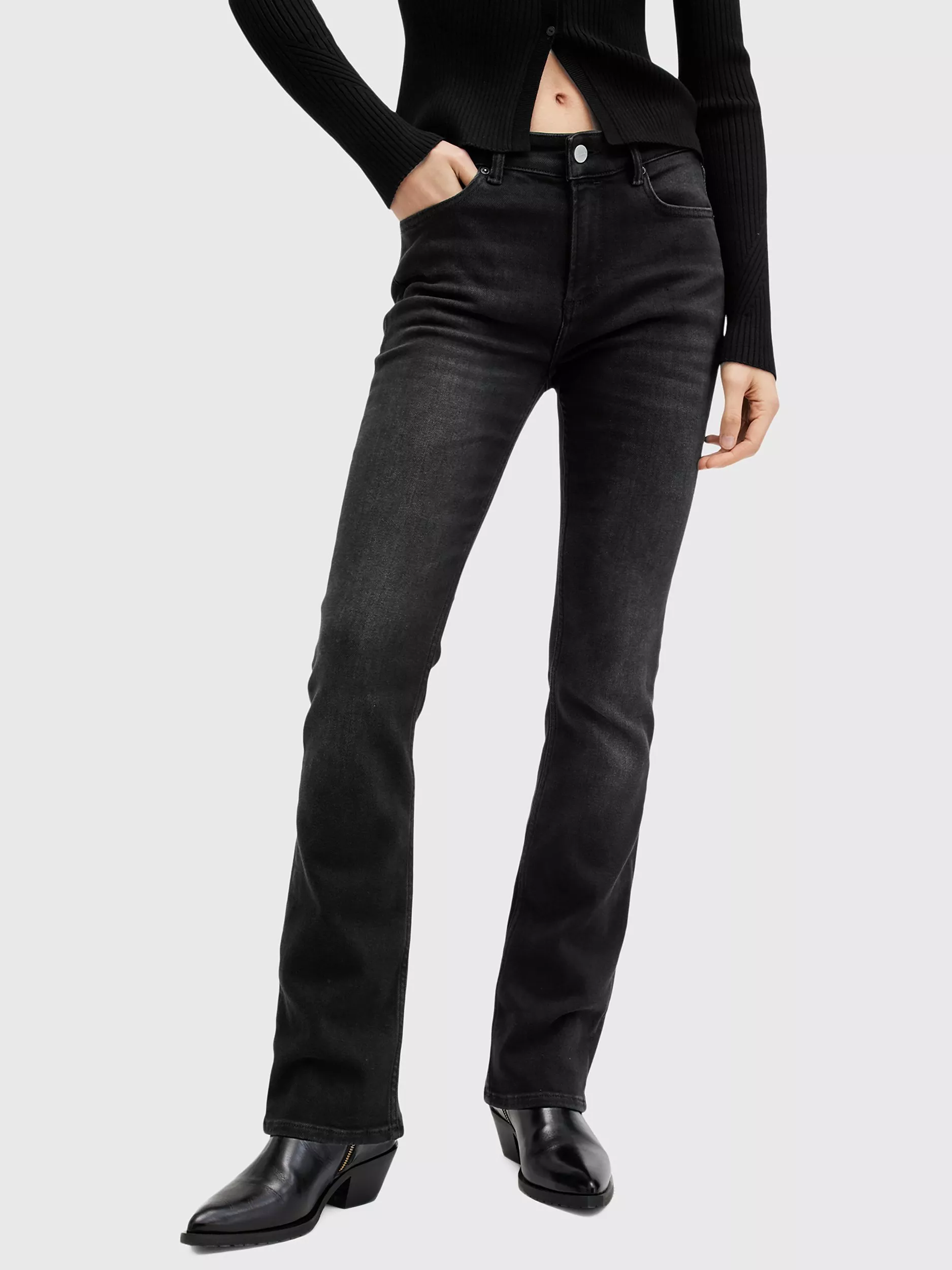 Evocative of 60s and 70s cuts, these slim bootcut mid rise jeans from AllSaints are made from a cotton blend for breathable wear and finish at a regular length.