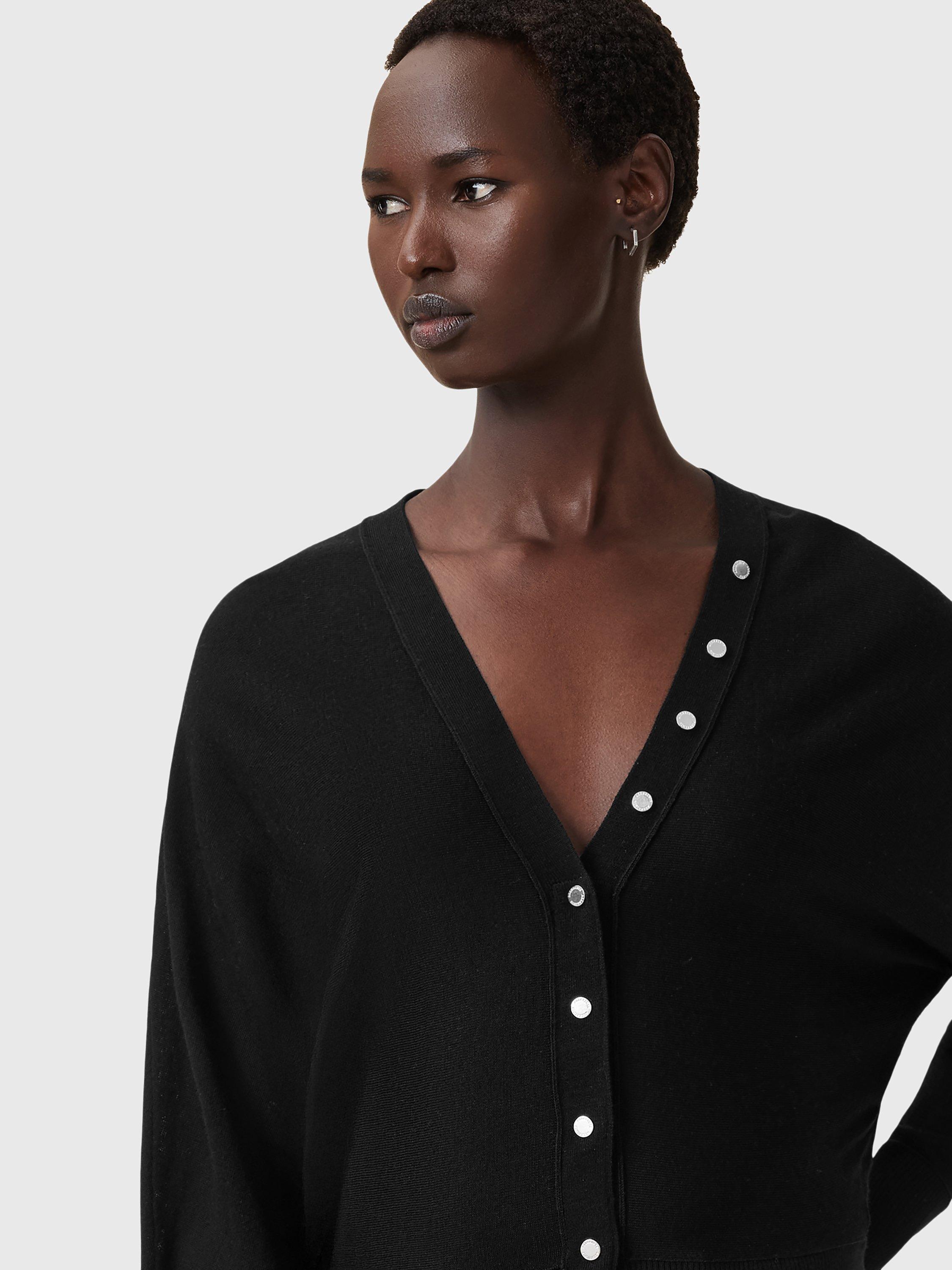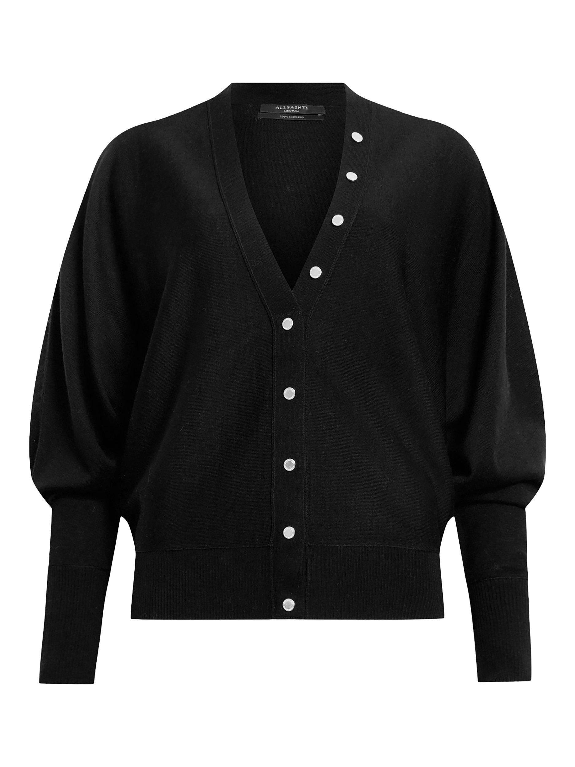 Cut with a v-neck and long sleeves, this button-detail cardigan from AllSaints is a quality piece in pure wool.